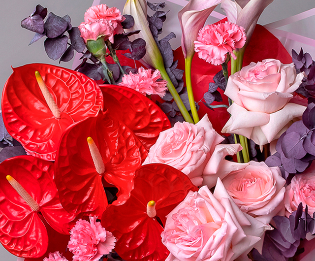 Экзотические цветы (протеи, антуриумы, стрелиции), необычные сочетания оттенков и авторские композиции с нестандартной упаковкой порадуют художественные натуры. Асимметрия, текстурные элементы и смелые цветовые решения приветствуются. Фиолетовые ирисы с оранжевыми герберами или розовые пионы с синими дельфиниумами станут настоящим произведением искусства.