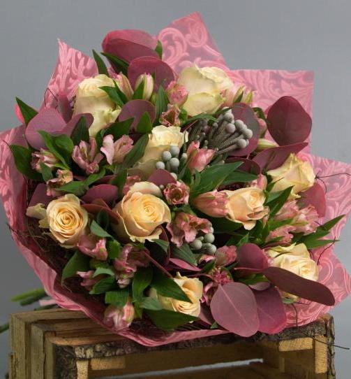 Композиция для женщин может состоять из любых цветов, но желательно учитывать возраст представительниц прекрасного пола: девушкам подойдут бутоны пастельных тонов, а взрослым женщинам – насыщенных ярких оттенков. Для мужчин рекомендуется подбирать презентабельные букеты из однотонных цветов, также необходимо обращать внимание на конкретный повод и вкусовые предпочтения получателя.