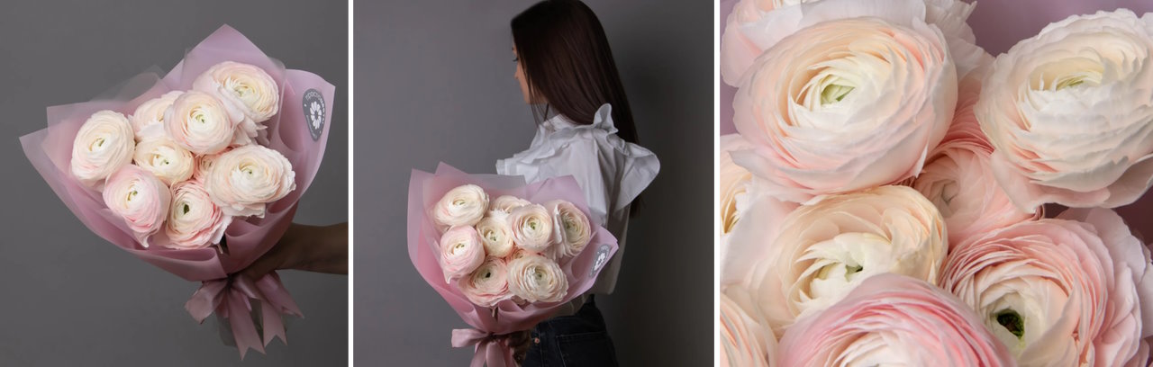 Ранункулюс — нежный цветок со множеством лепестков и пастельных оттенков. Популярен в романтичных букетах и свадебных композициях. Его называют азиатским лютиком. При правильном уходе долго сохраняет свежесть.