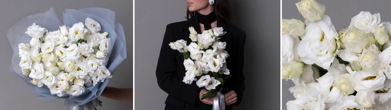 Эустома — изящный цветок, похожий на розу. Стоит в вазе десять-четырнадцать дней. Популярна эустома в свадебных букетах благодаря элегантности. Её называют ирландской розой. Используйте эустому для создания нежных композиций.