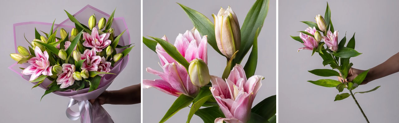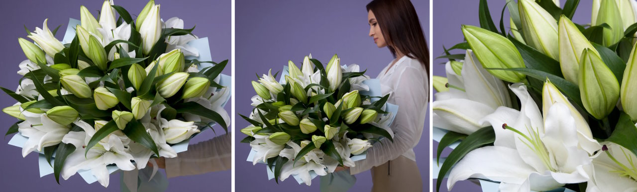 Лилии — цветок, добавляющий утончённость и благородство букету. Их называют королевским цветком благодаря величине и красоте. Известны насыщенным ароматом и крупными соцветиями. Название лилии встречается во многих легендах.