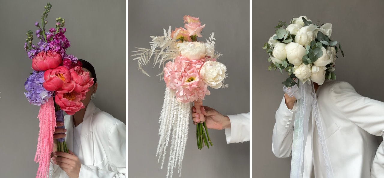 Популярный список включает пионы, эустому, ранункулюс, розы. Эти цветы долго стоят в вазе и переносят путешествие. Названия этих популярных цветов звучат элегантно и романтично.