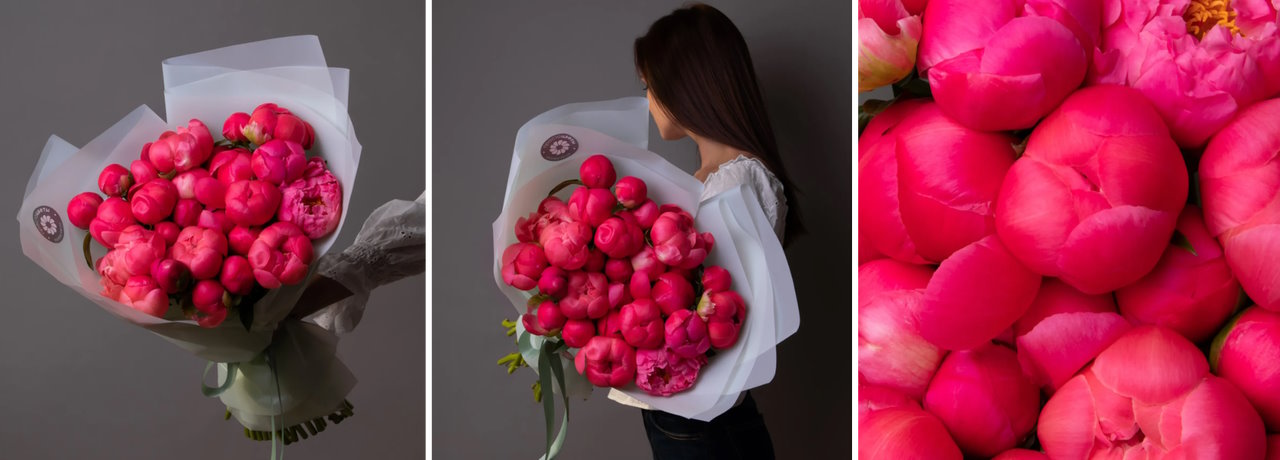 Пионы — пышные цветы для свадебных букетов. Этот цветок добавляет композиции утончённость и романтику. Пионы называют символом богатства и успеха. Они добавляют объёма букету благодаря крупным соцветиям. Название пионов используют в названиях парфюмерии.