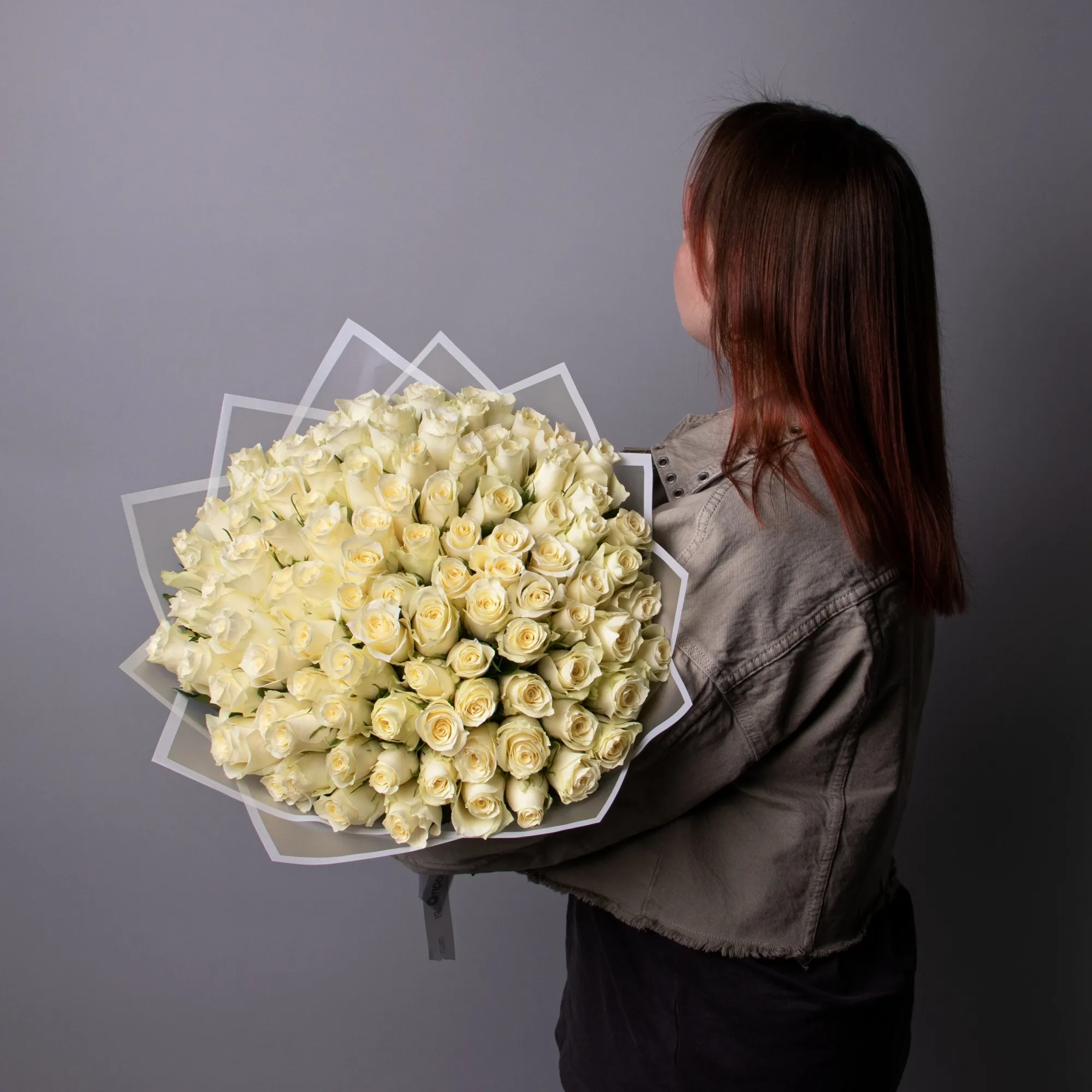 Букет 101 белая роза, Кения, 40 см