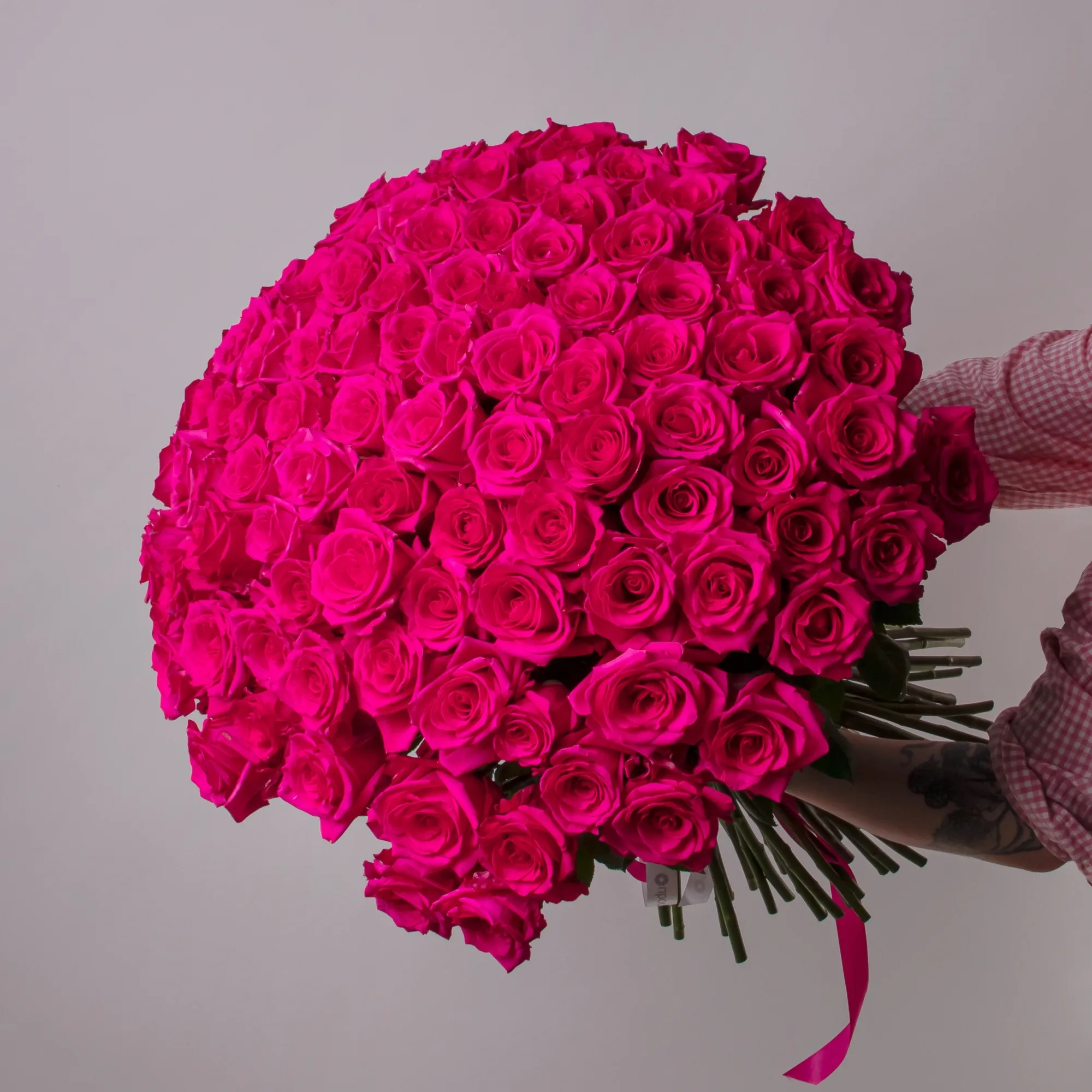 Букет из 101 малиновой розы, привезённой из Эквадора, высотой 40 сантиметров — это настоящее произведение искусства. Эти роскошные цветы поражают своей красотой и яркостью, они станут идеальным подарком для любого случая.