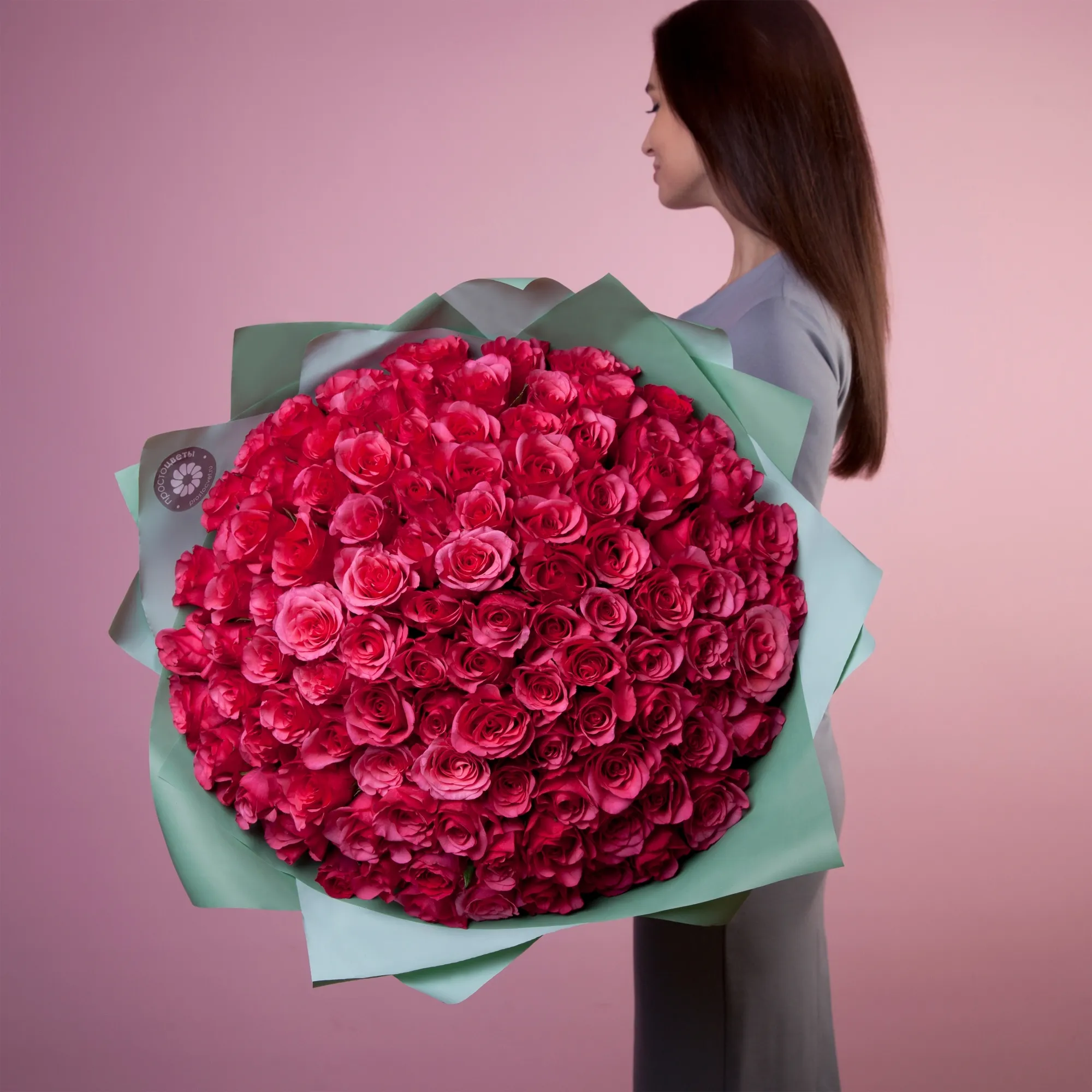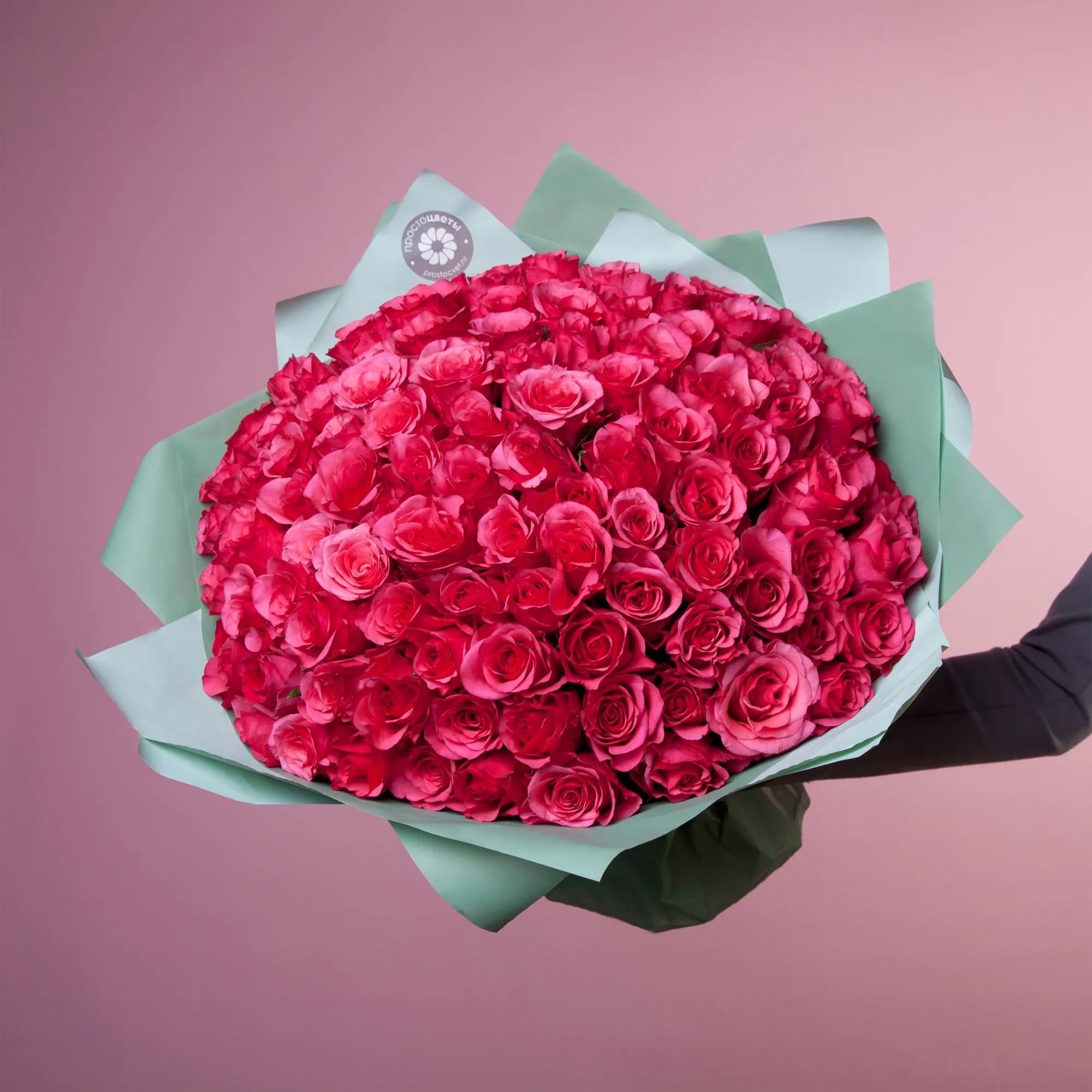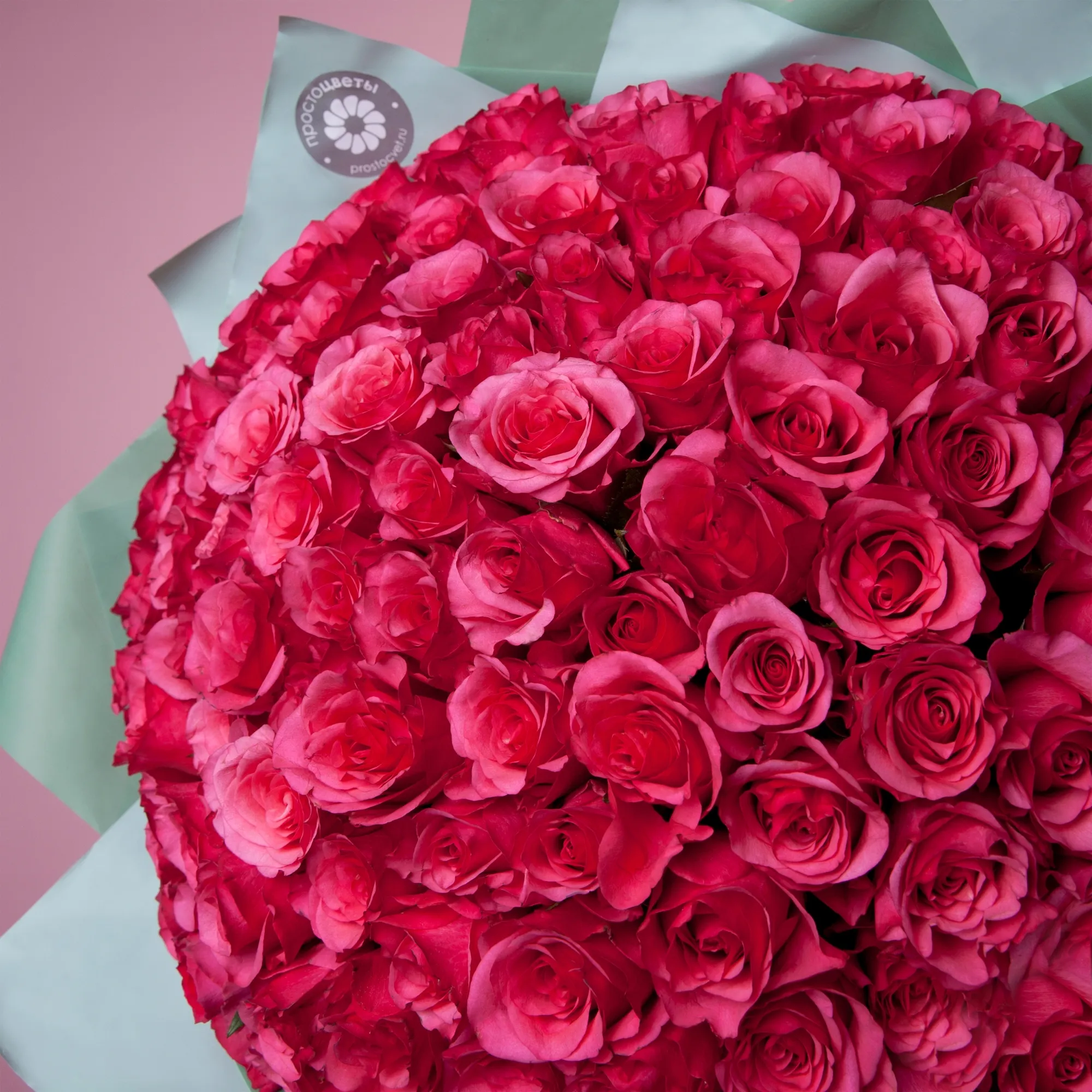 Рецепт нашего флористического букета «101 роза розовая» прост: