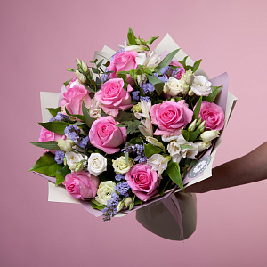 Роза, Альстромерия, Эустома, Листья салал, Листья эвкалипта