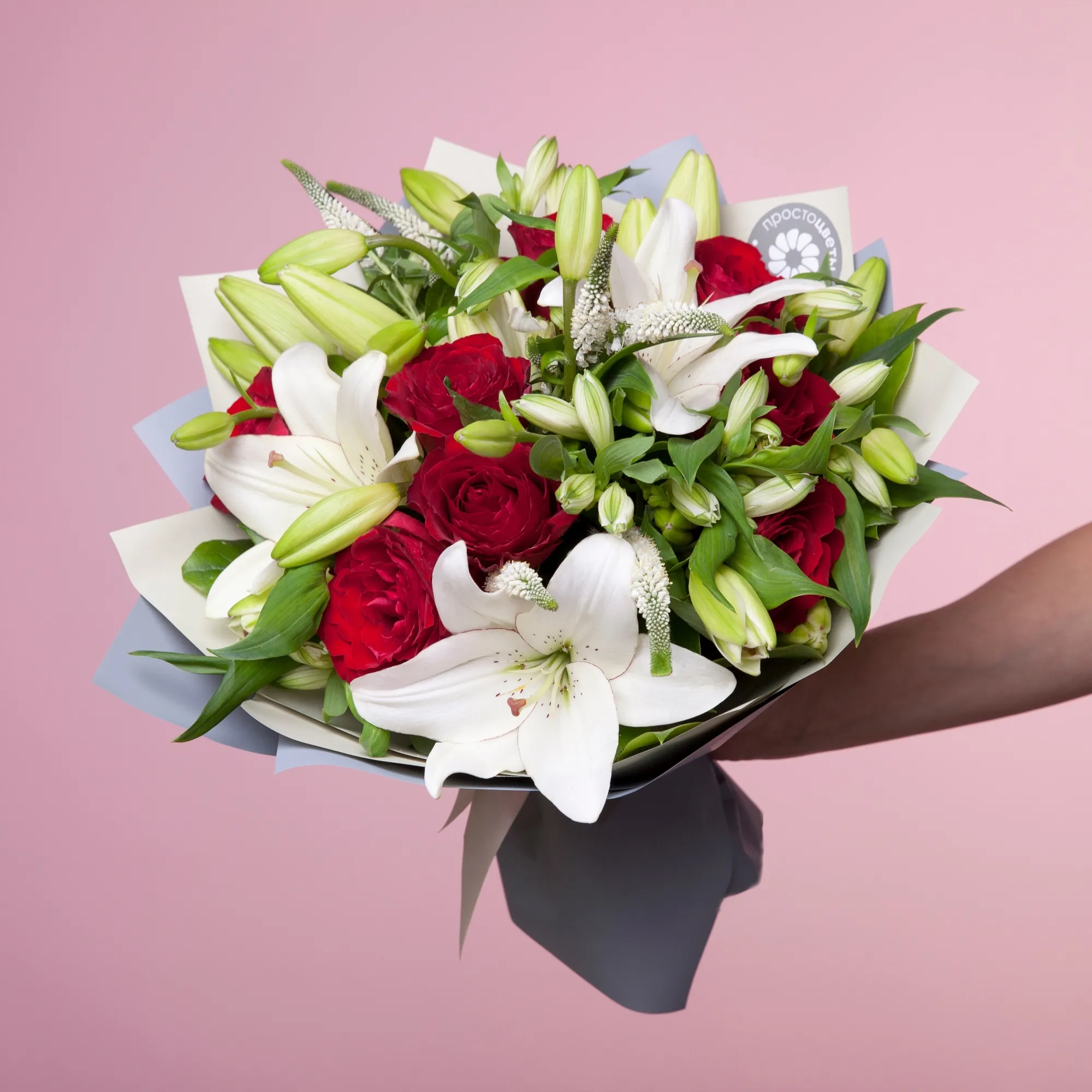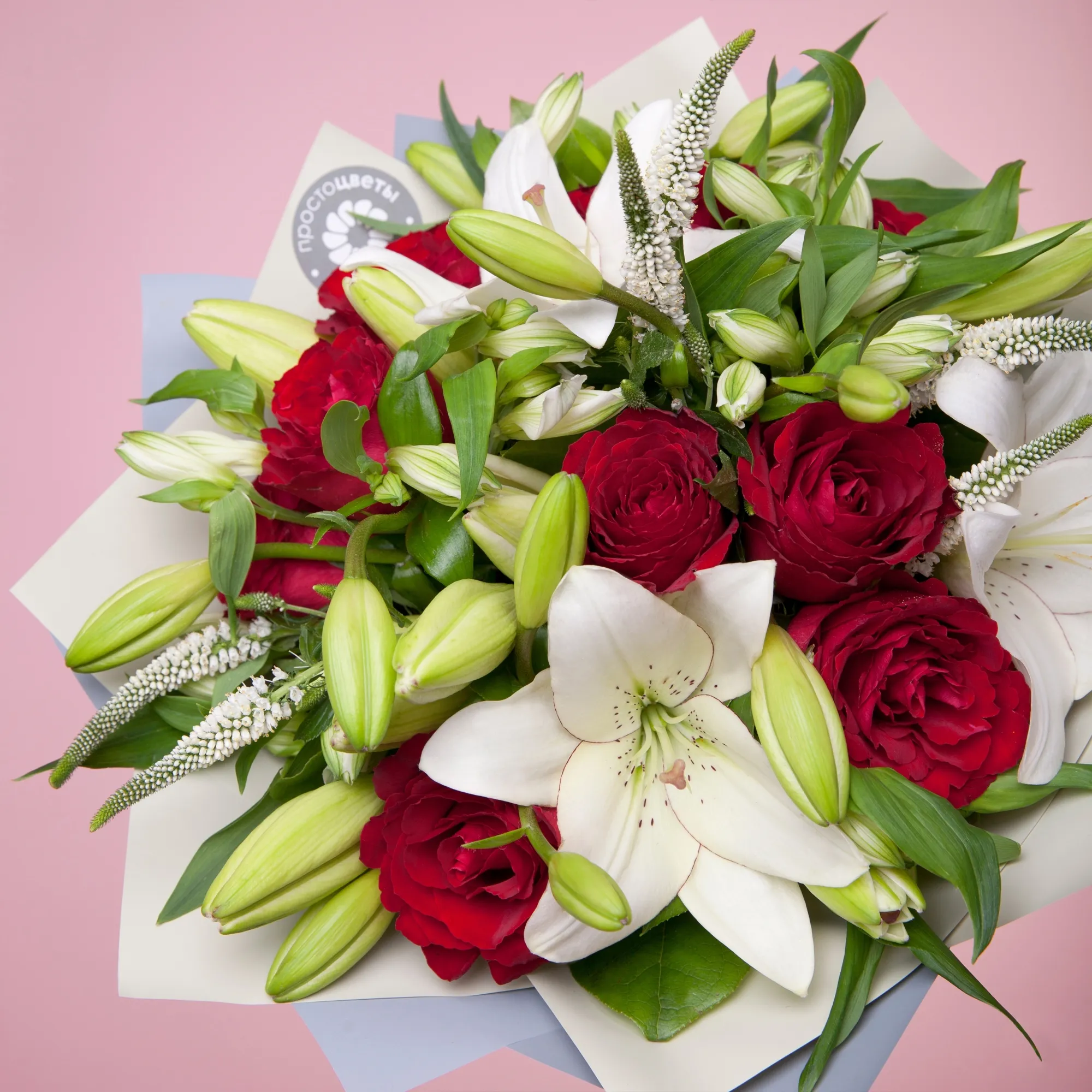 Роза-9, Лилия-4, Альстромерия-5, Листья салал-15, Вероника-6