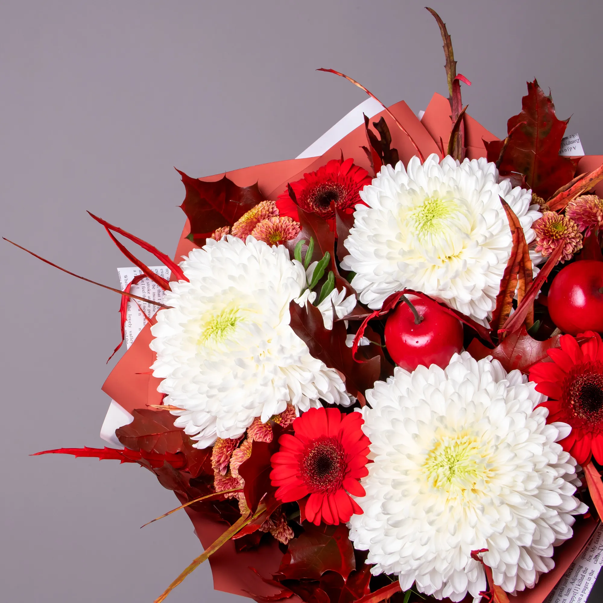 Хризантема, Листья гревилии, Листья дуба, Листья фисташки