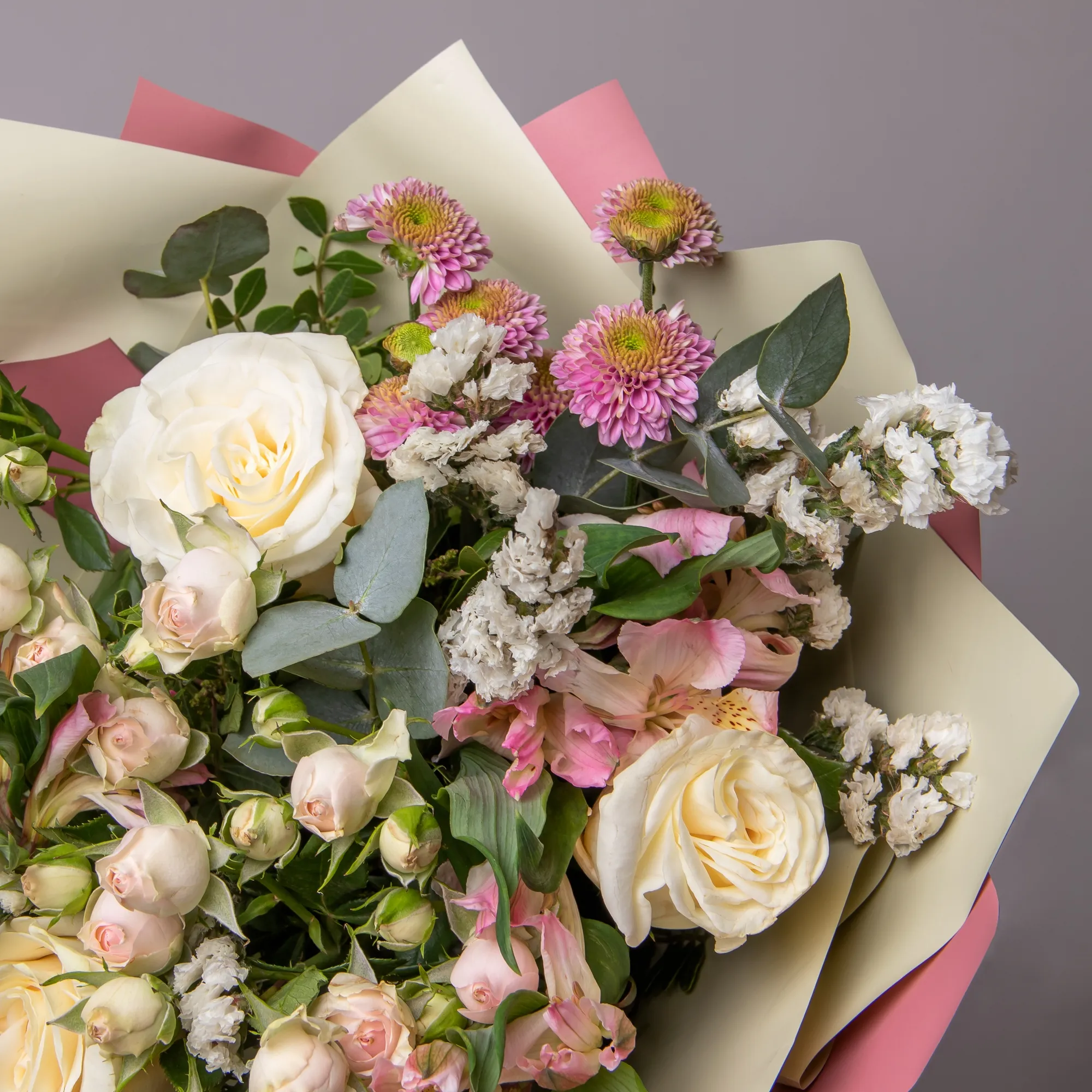 Роза, Альстромерия, Листья фисташки, Листья эвкалипта
