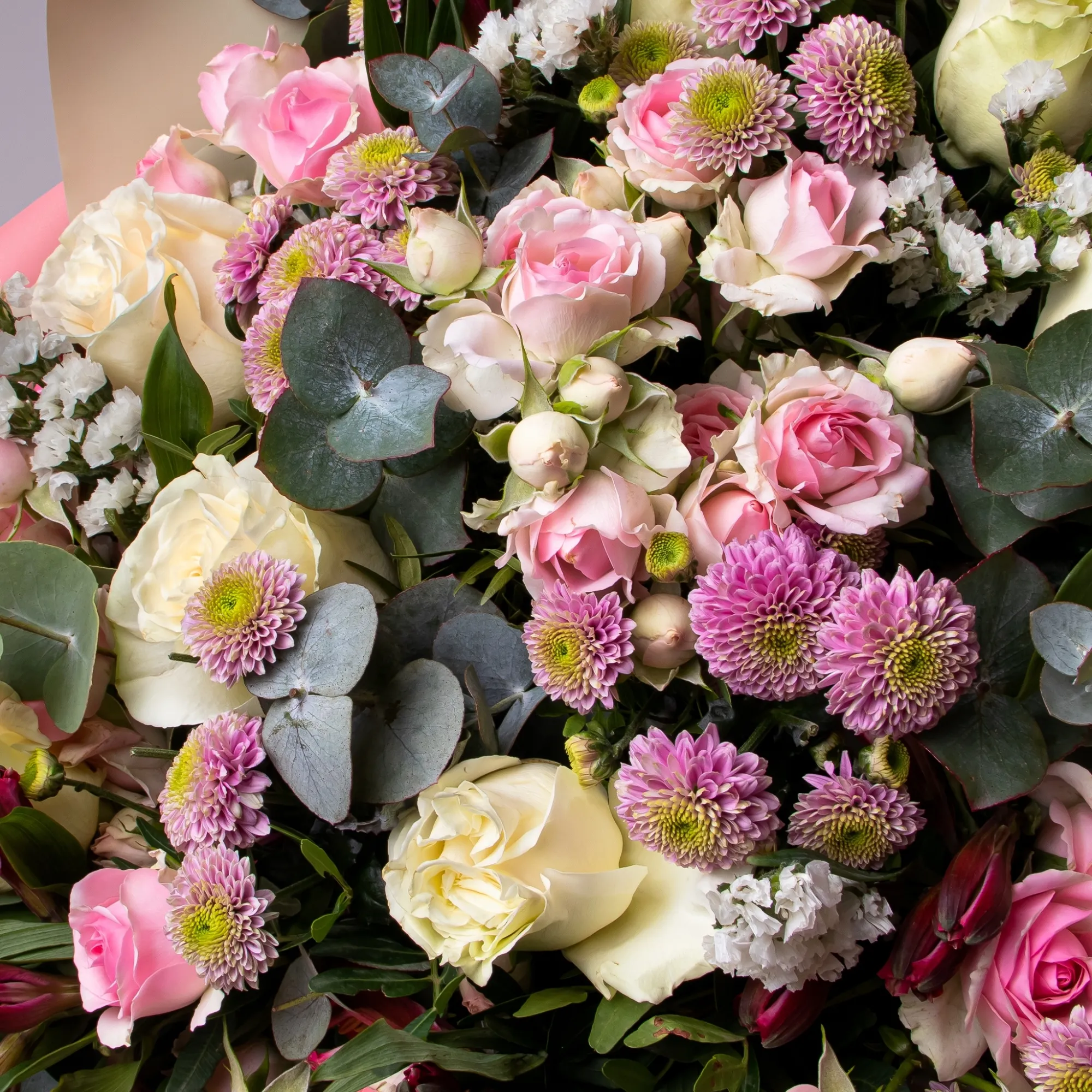 Роза, Альстромерия, Листья фисташки, Листья эвкалипта