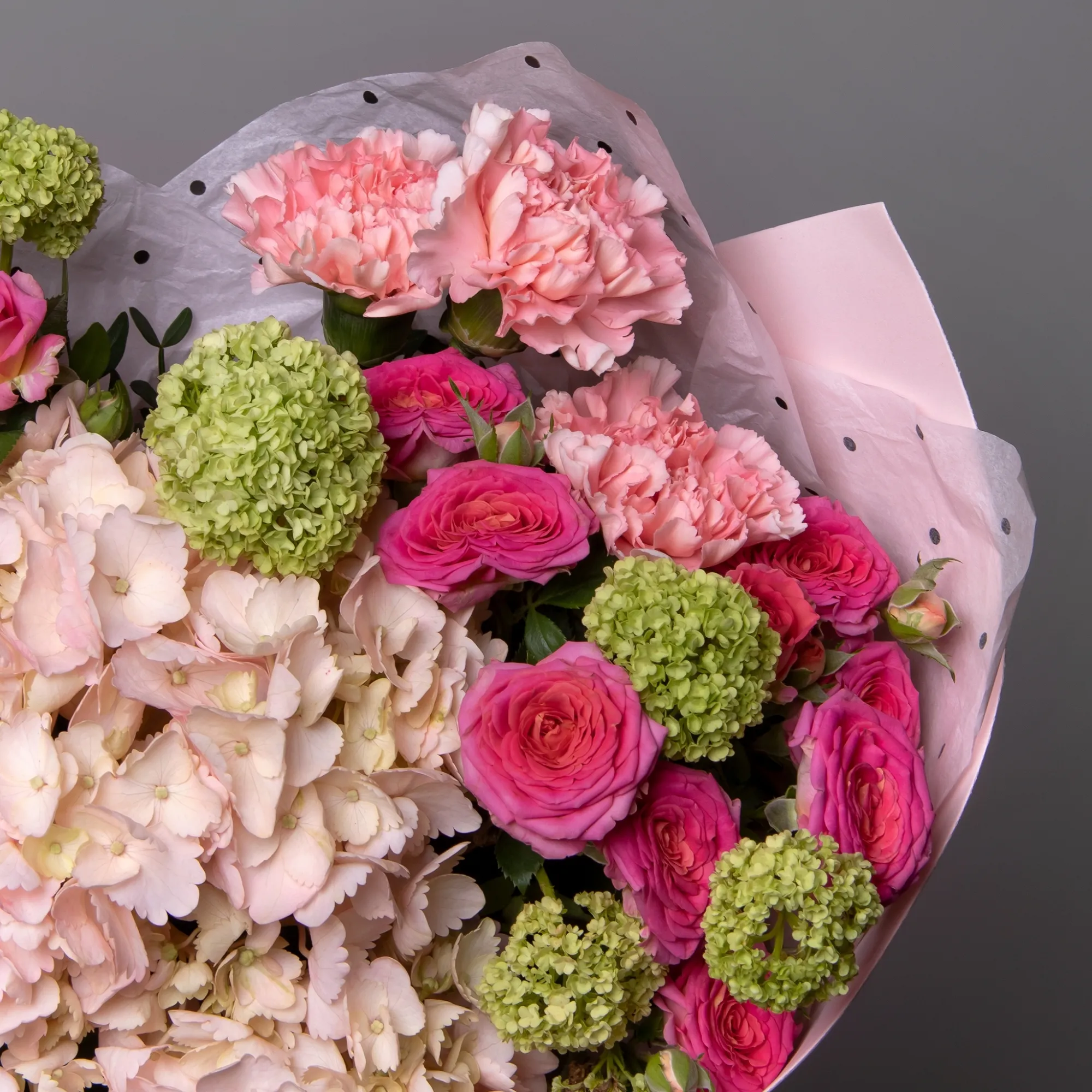 Гвоздика-3, Гортензия-1, Роза кустовая-2, Листья фисташки-5