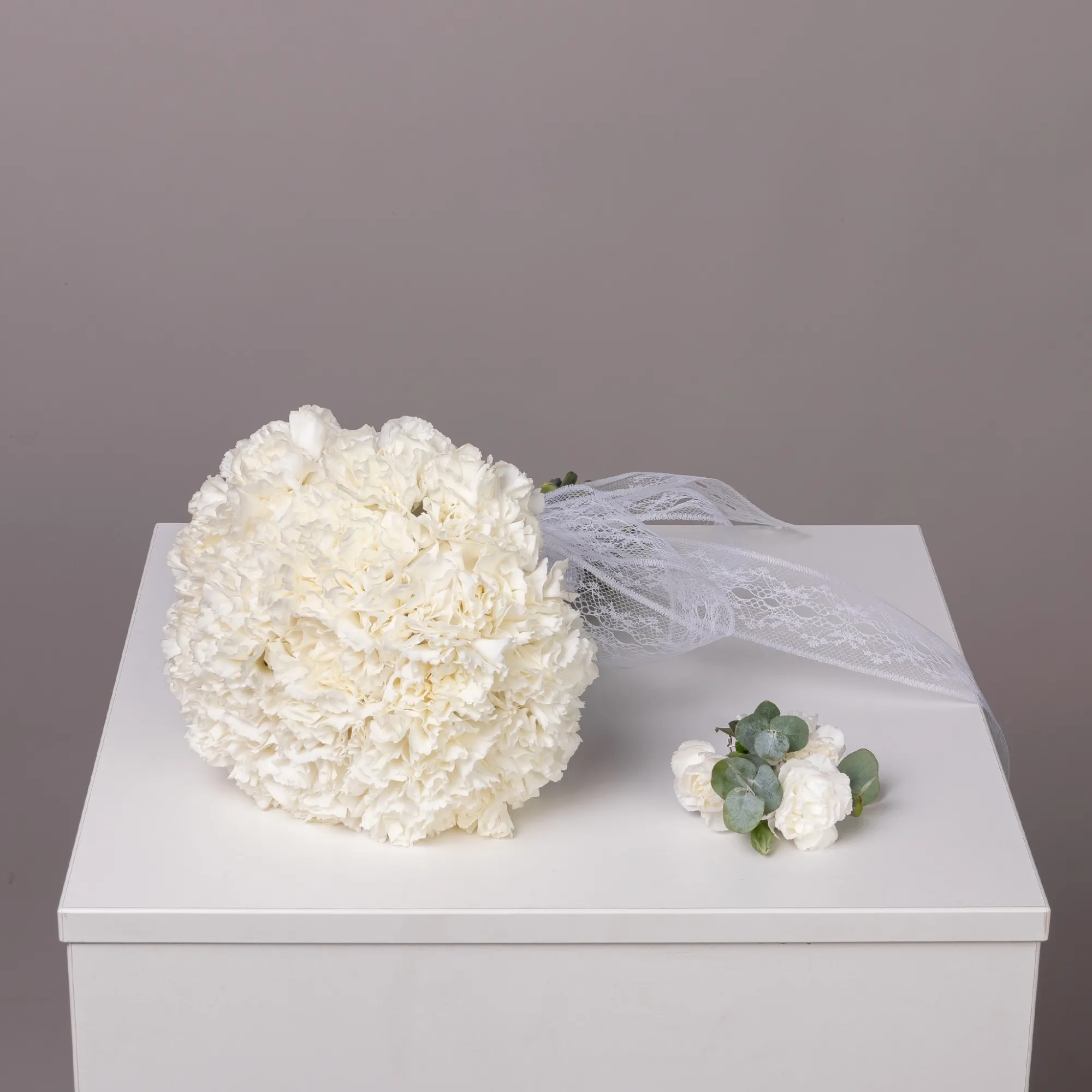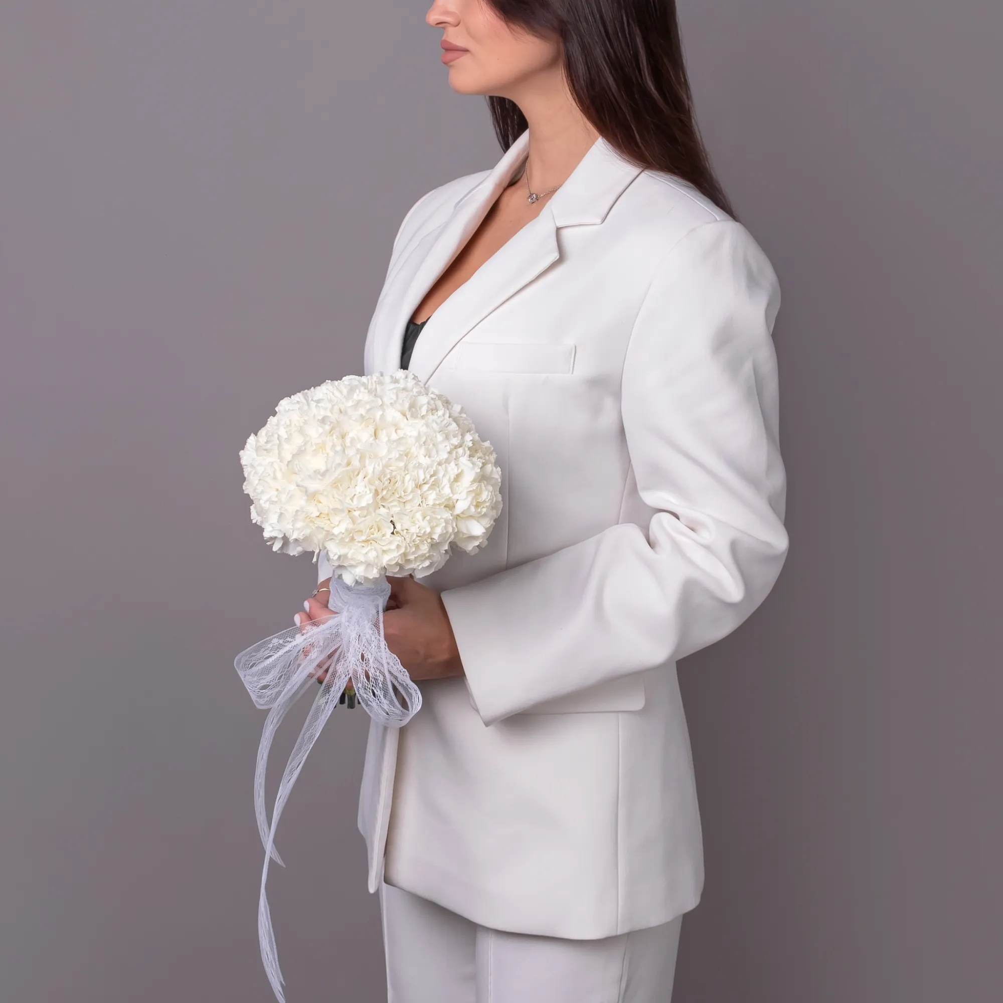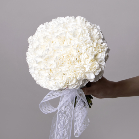 Нежный, утонченный, невесомый свадебный букет, напоминающий облачко. В составе белая гвоздика, которая делает букет пышным и воздушным. Нестареющая классика, которая подойдет под любой классический образ. Закажите букет невесты с доставкой и мы сделаем все, чтобы помочь вам в самый важный для вас день, потому что цветы - это просто.