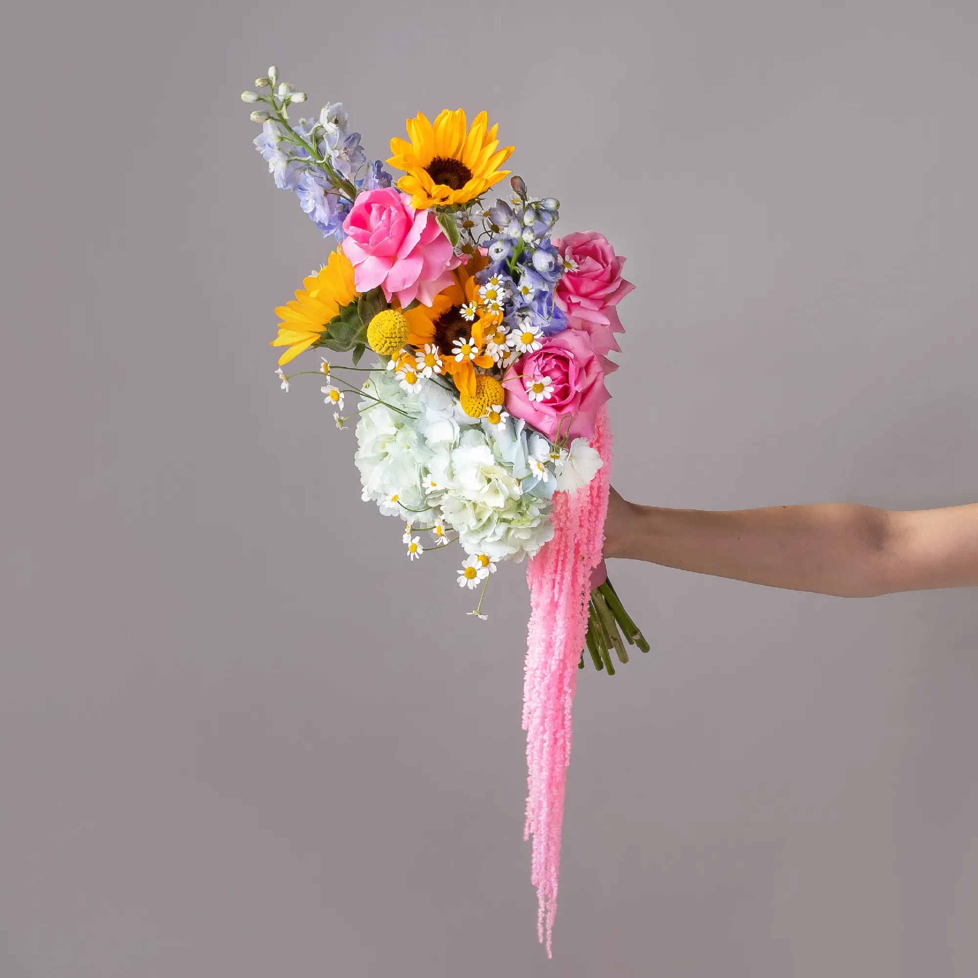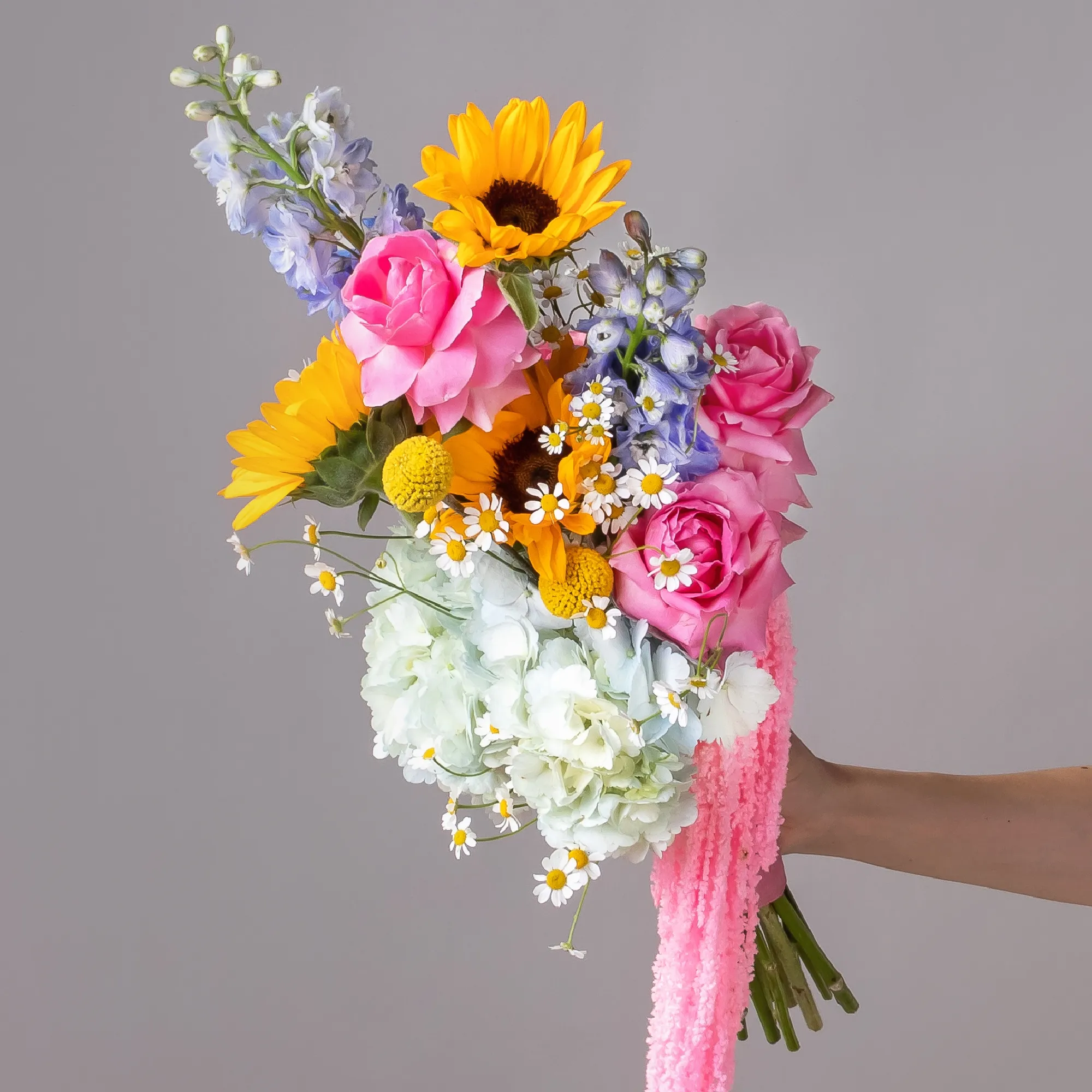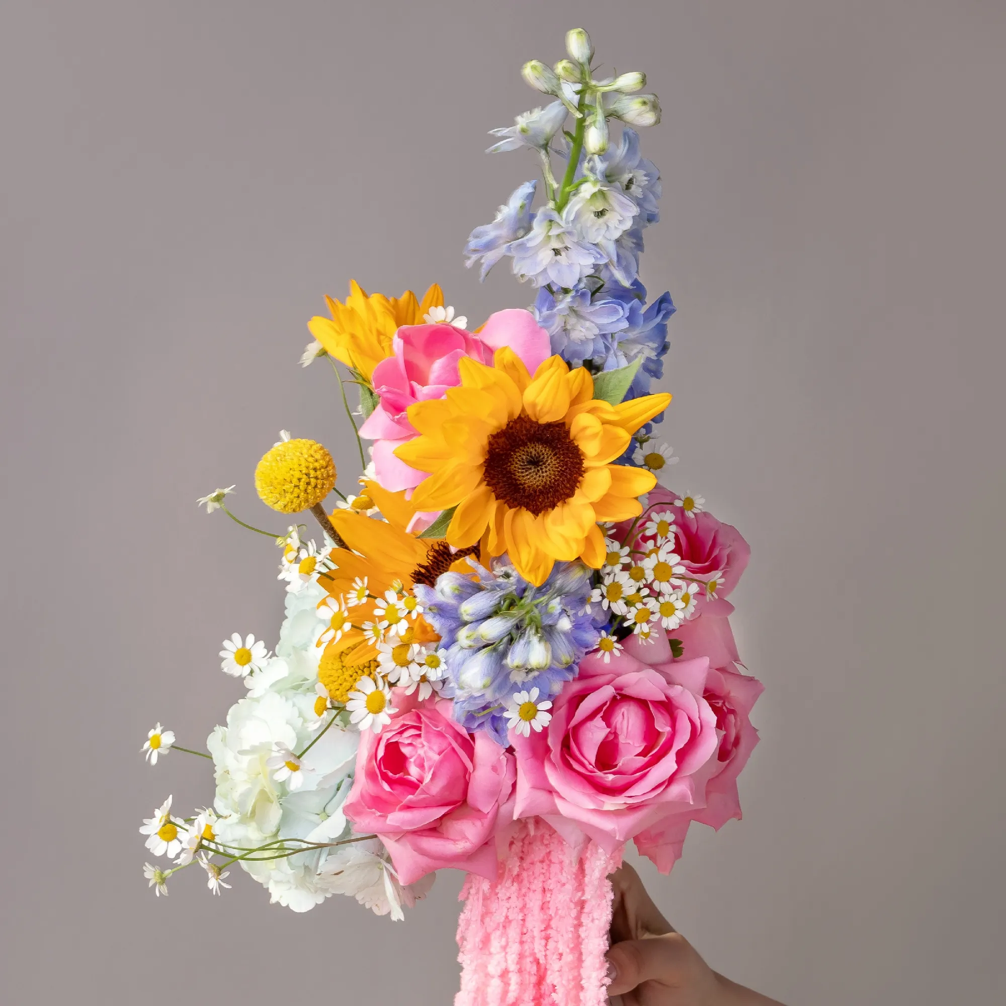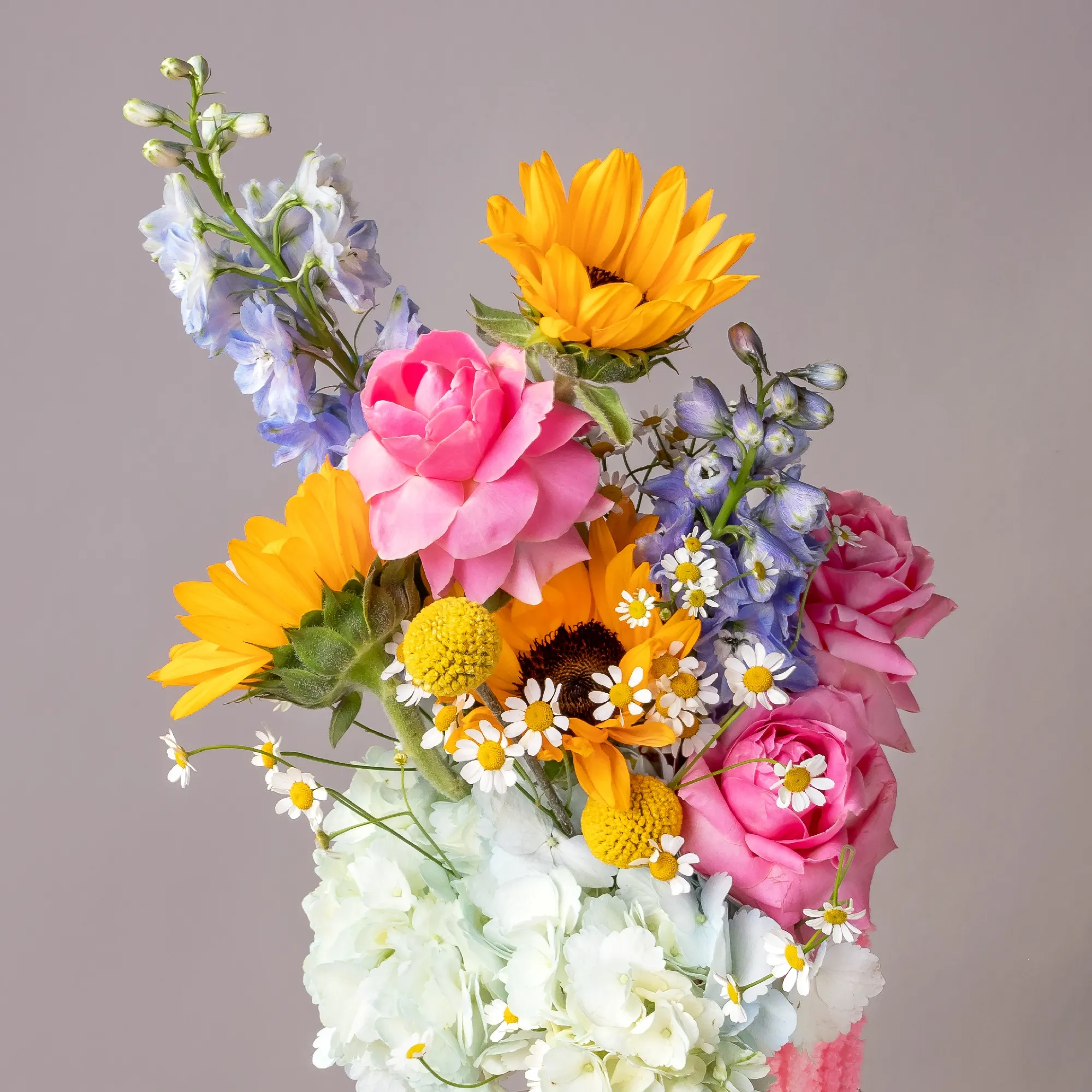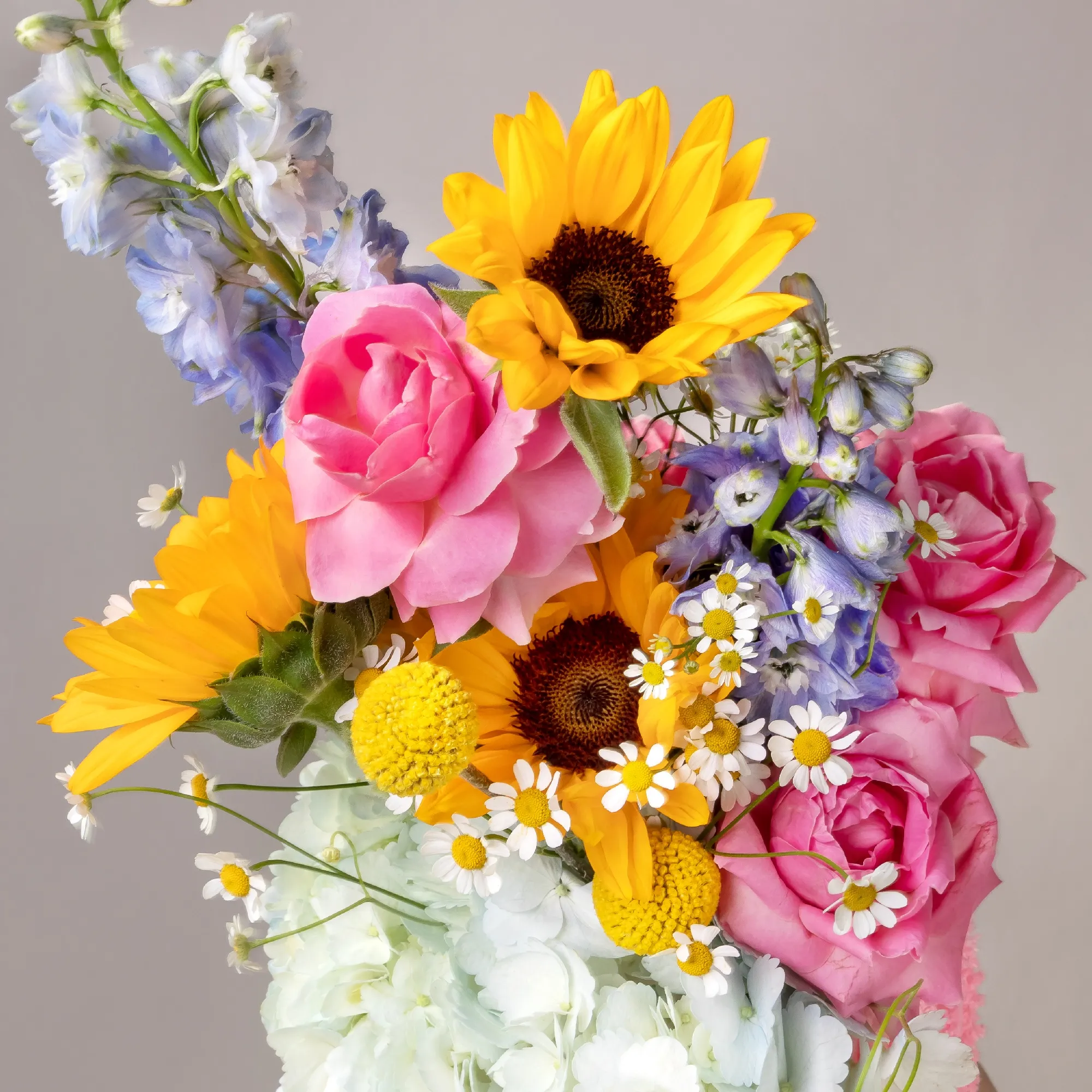 Гортензия, Подсолнух, Роза, Дельфиниум