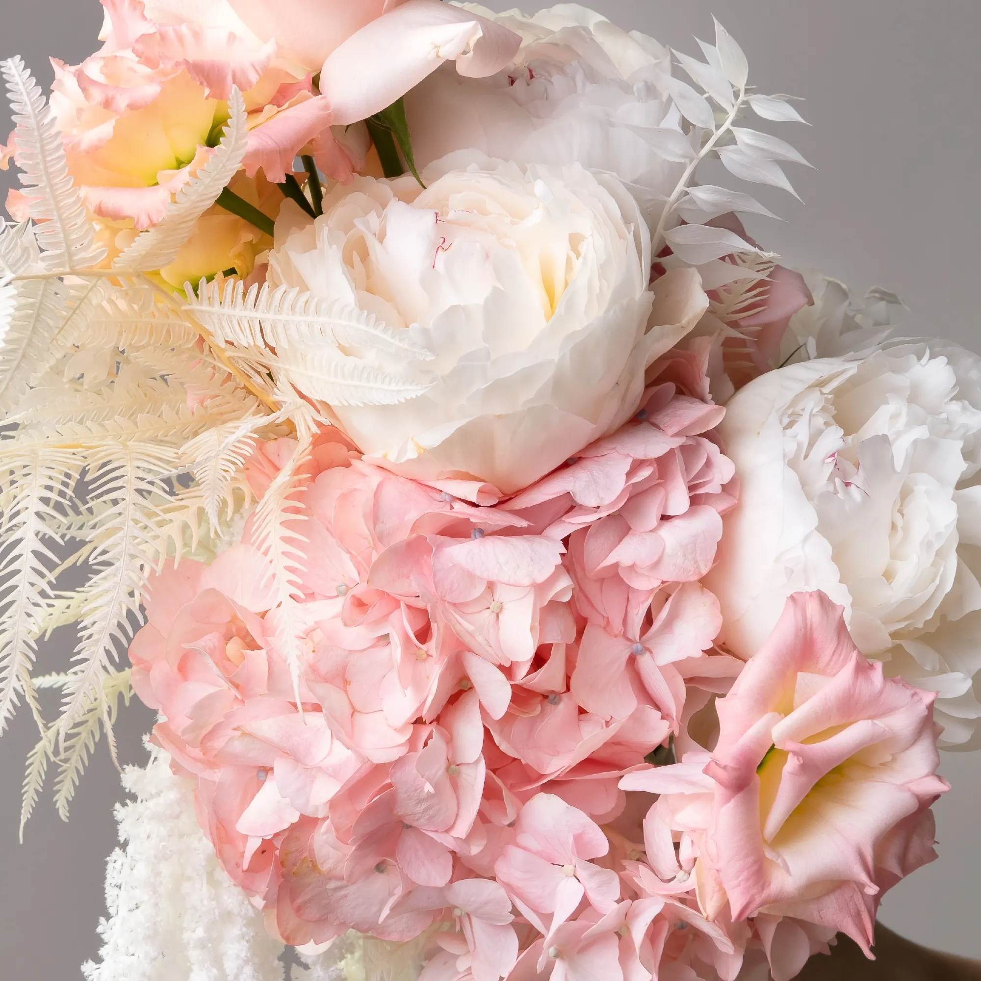 Пион, Гортензия, Роза, Листья рускус