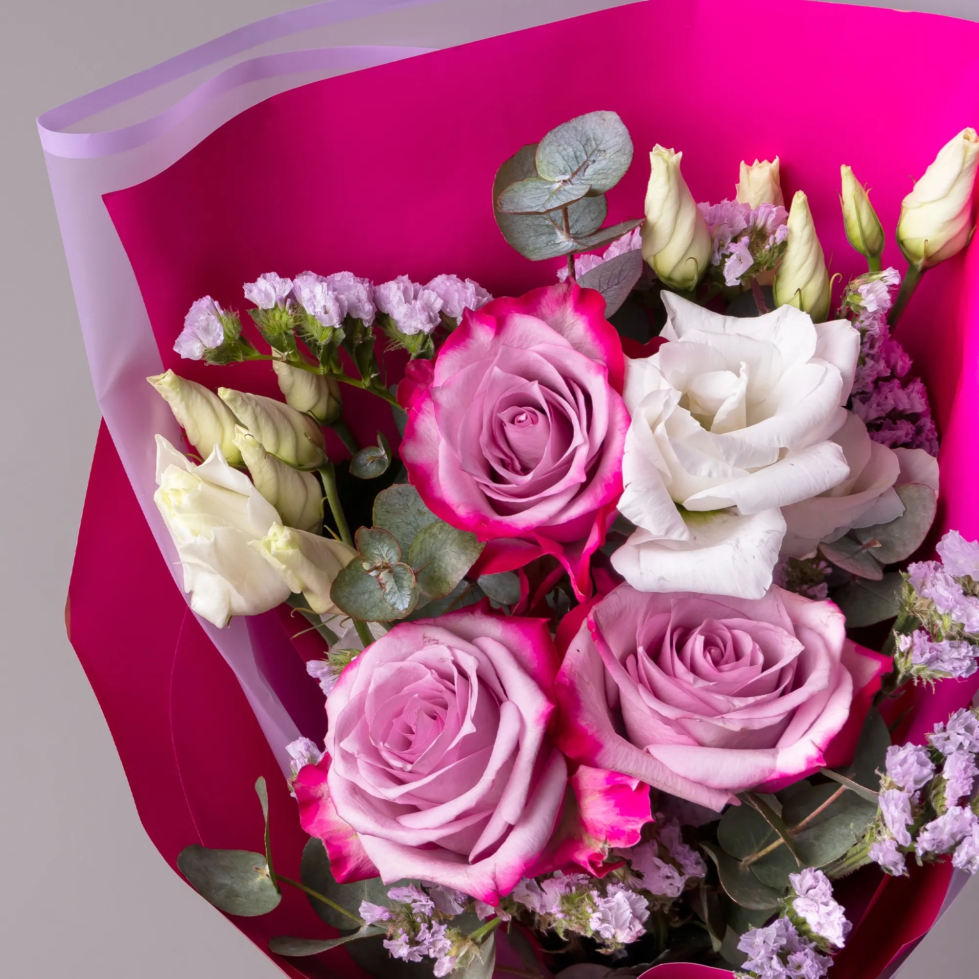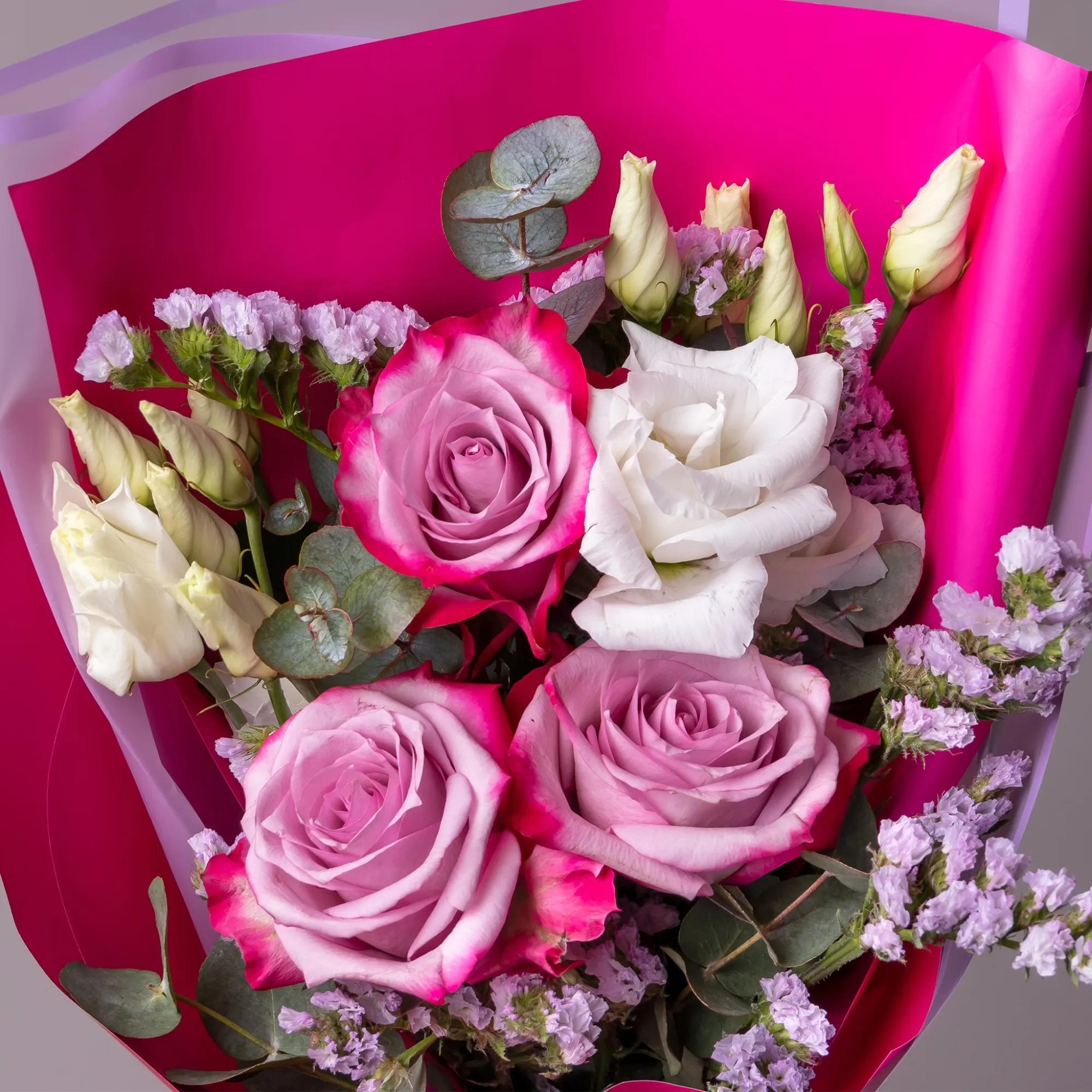 К сожалению, мы не можем гарантировать точную копию букета. Наши цветы могут отличаться от указанных на фотографии, ведь они приезжают к нам из разных уголков мира.