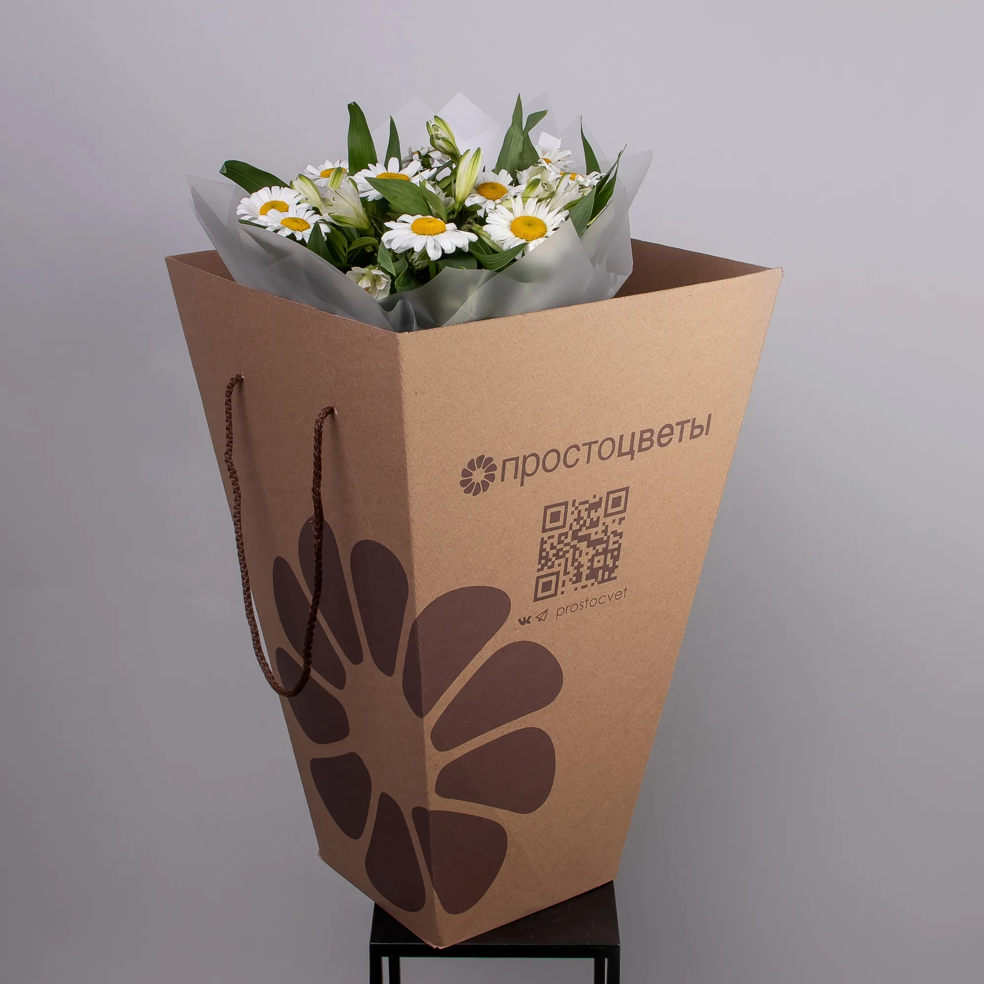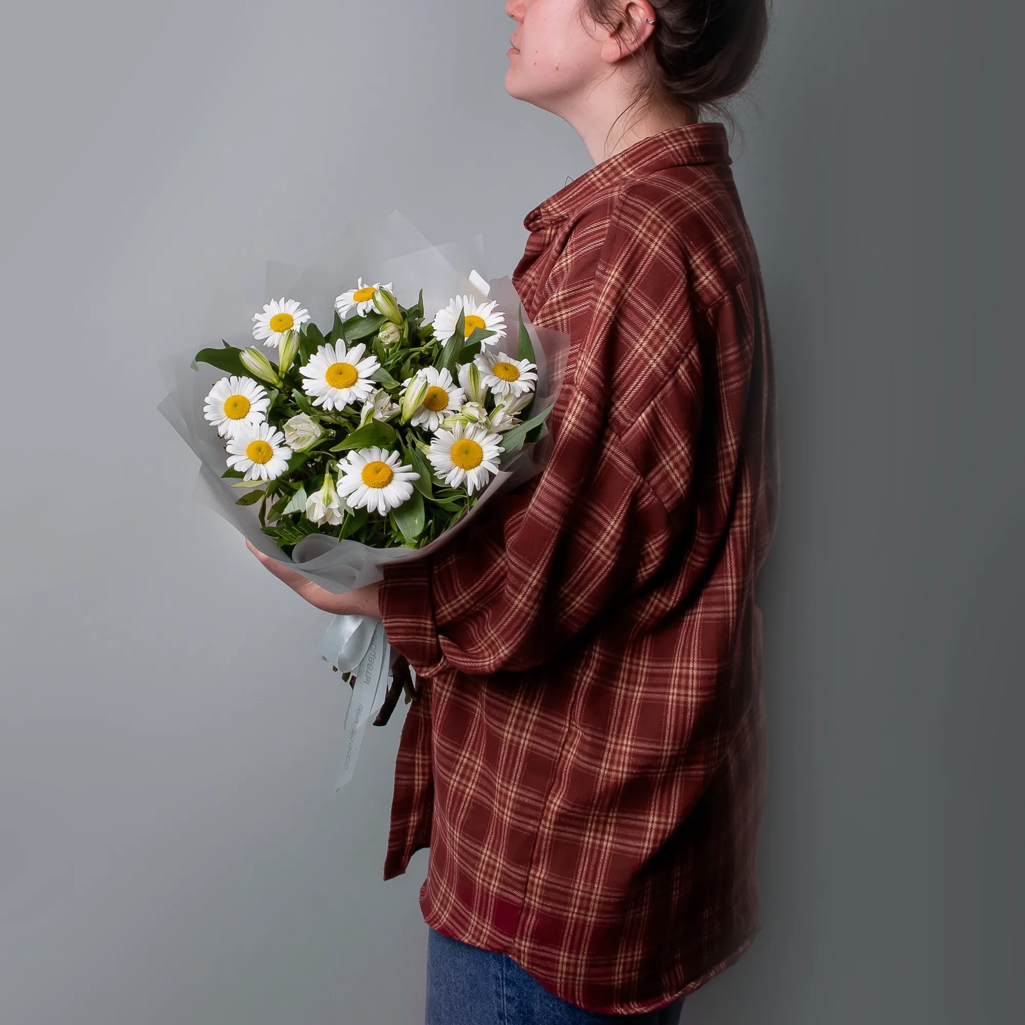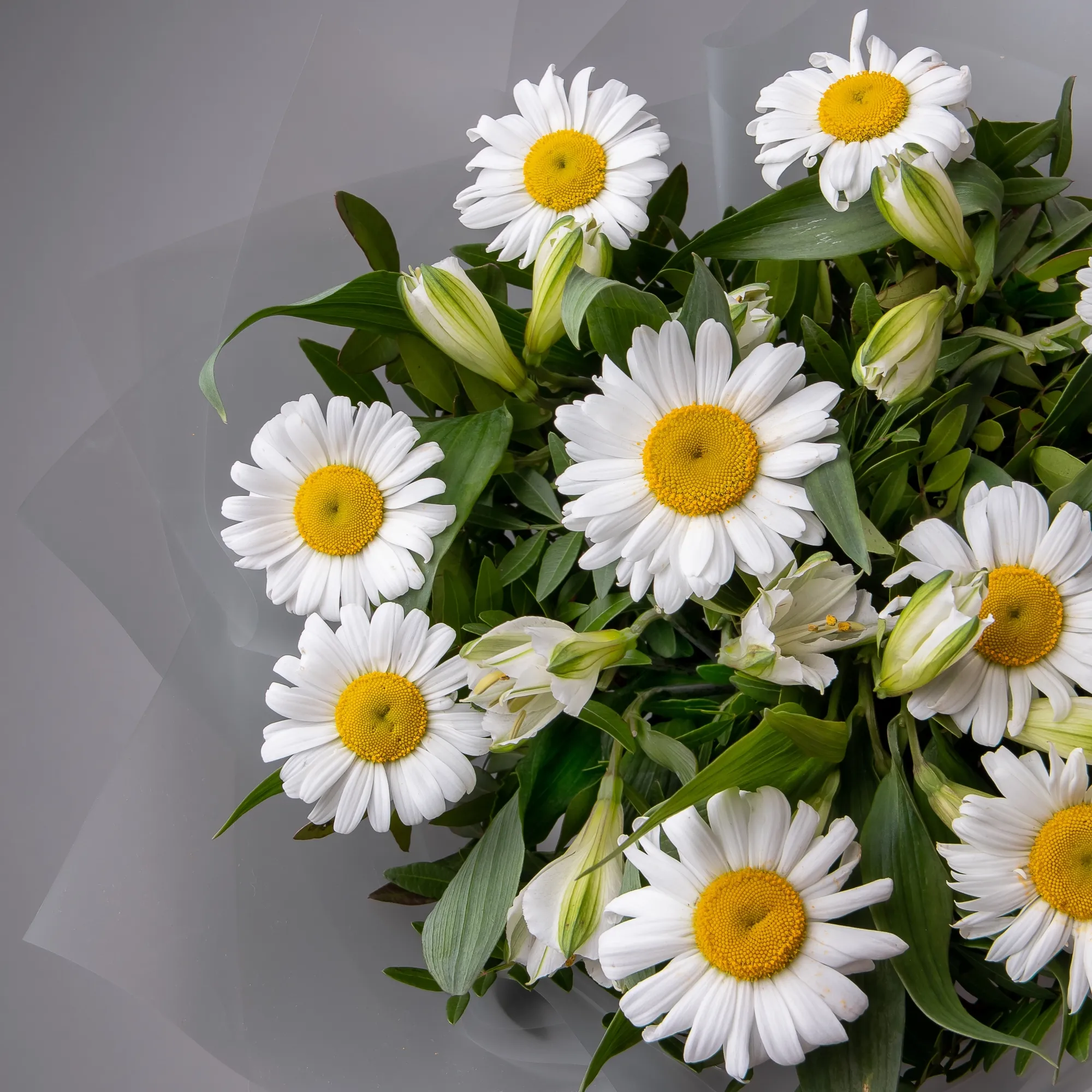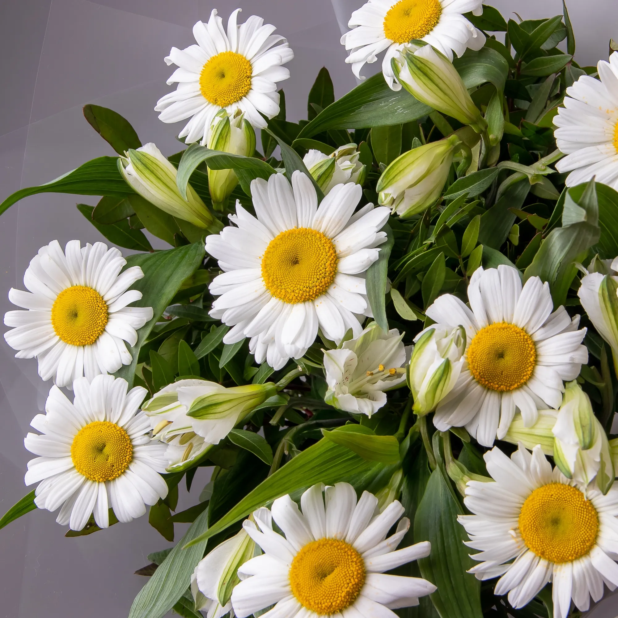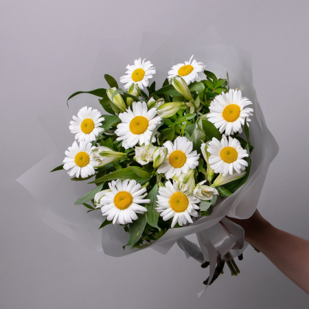 Дуобукет из белой альстромерии и ромашки