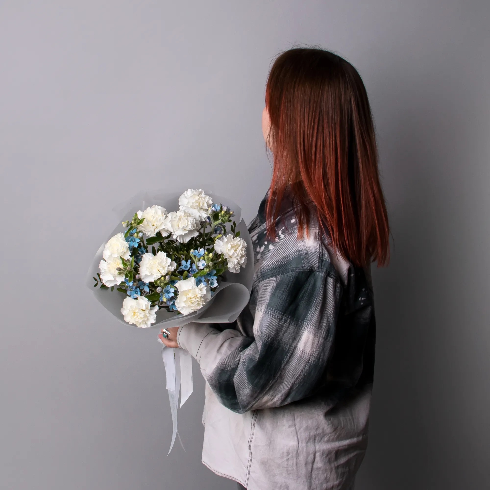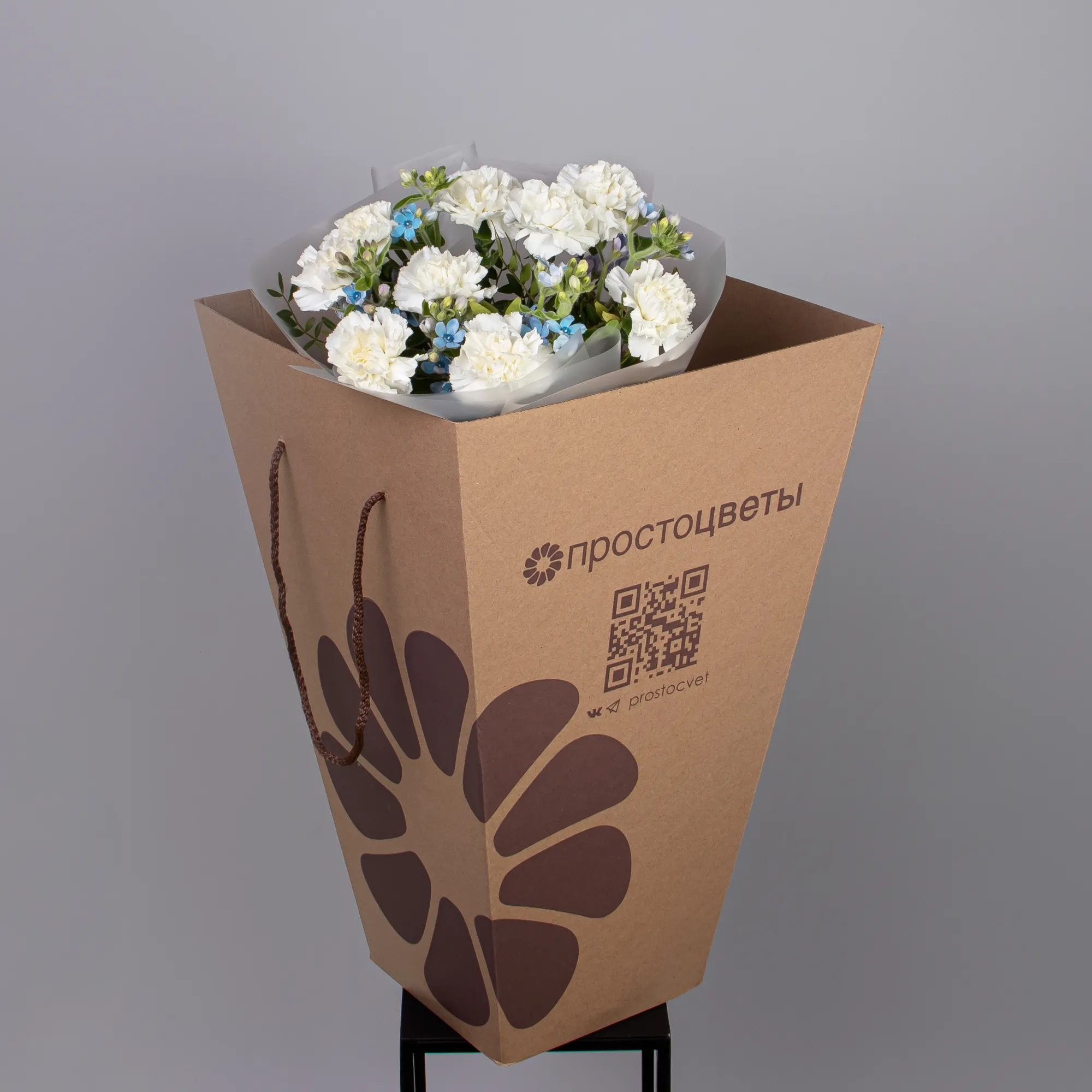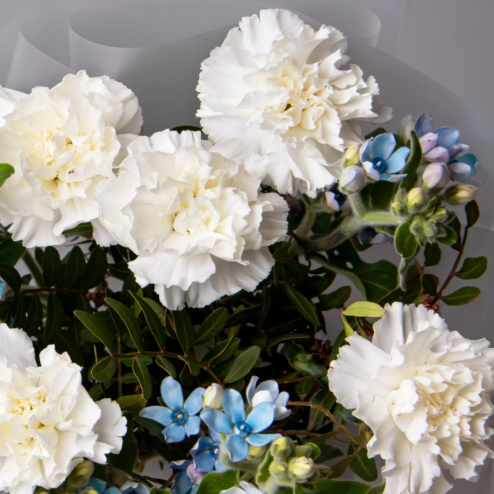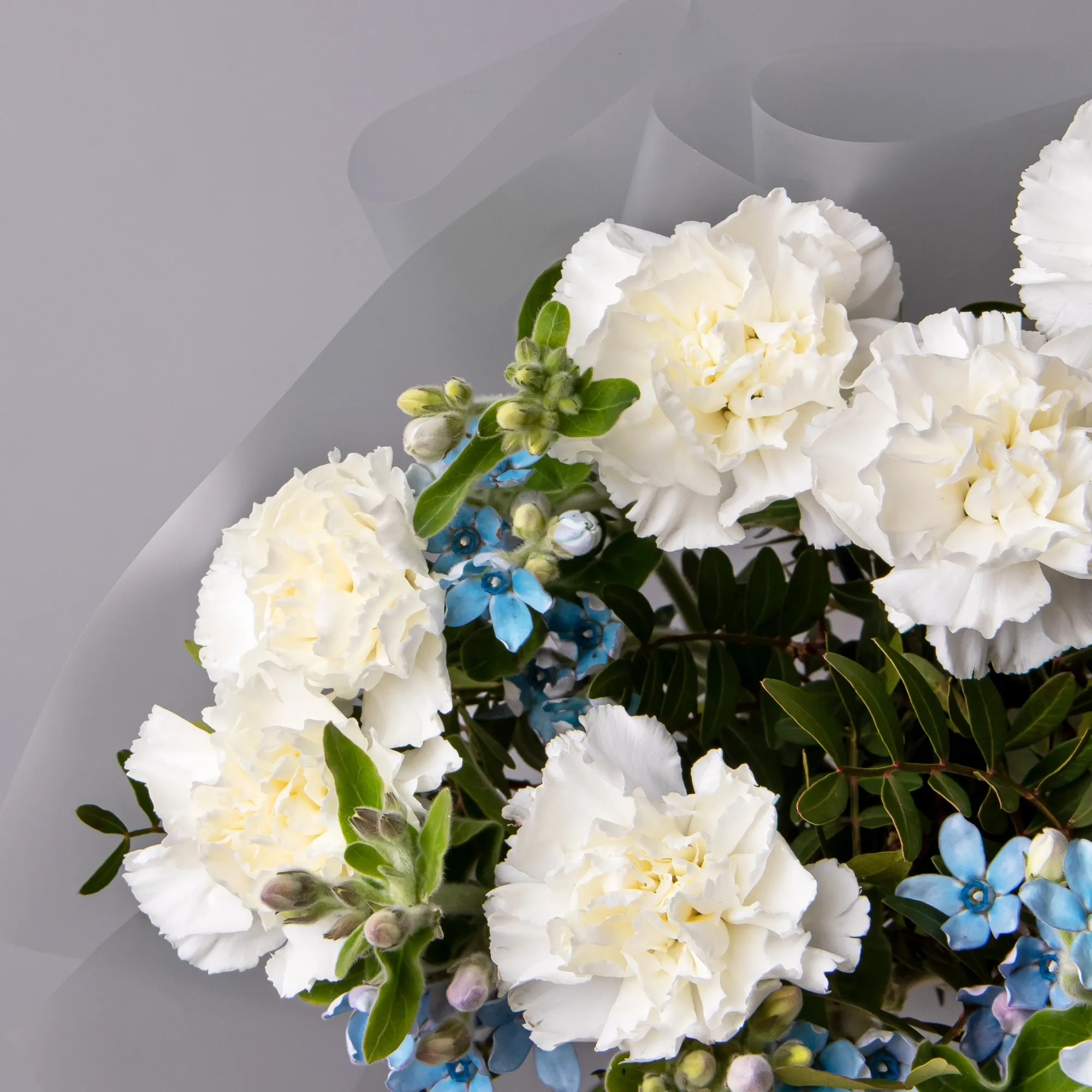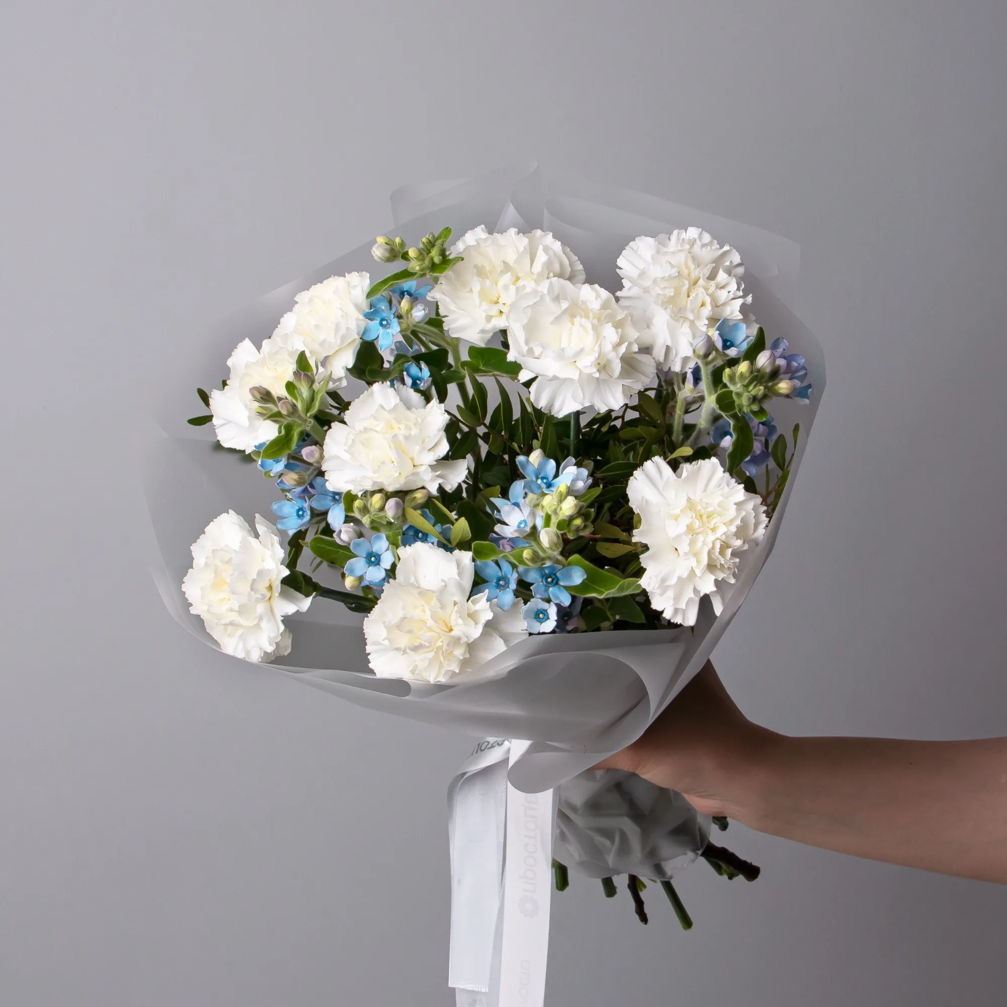Дуобукет из белой гвоздики и незабудки