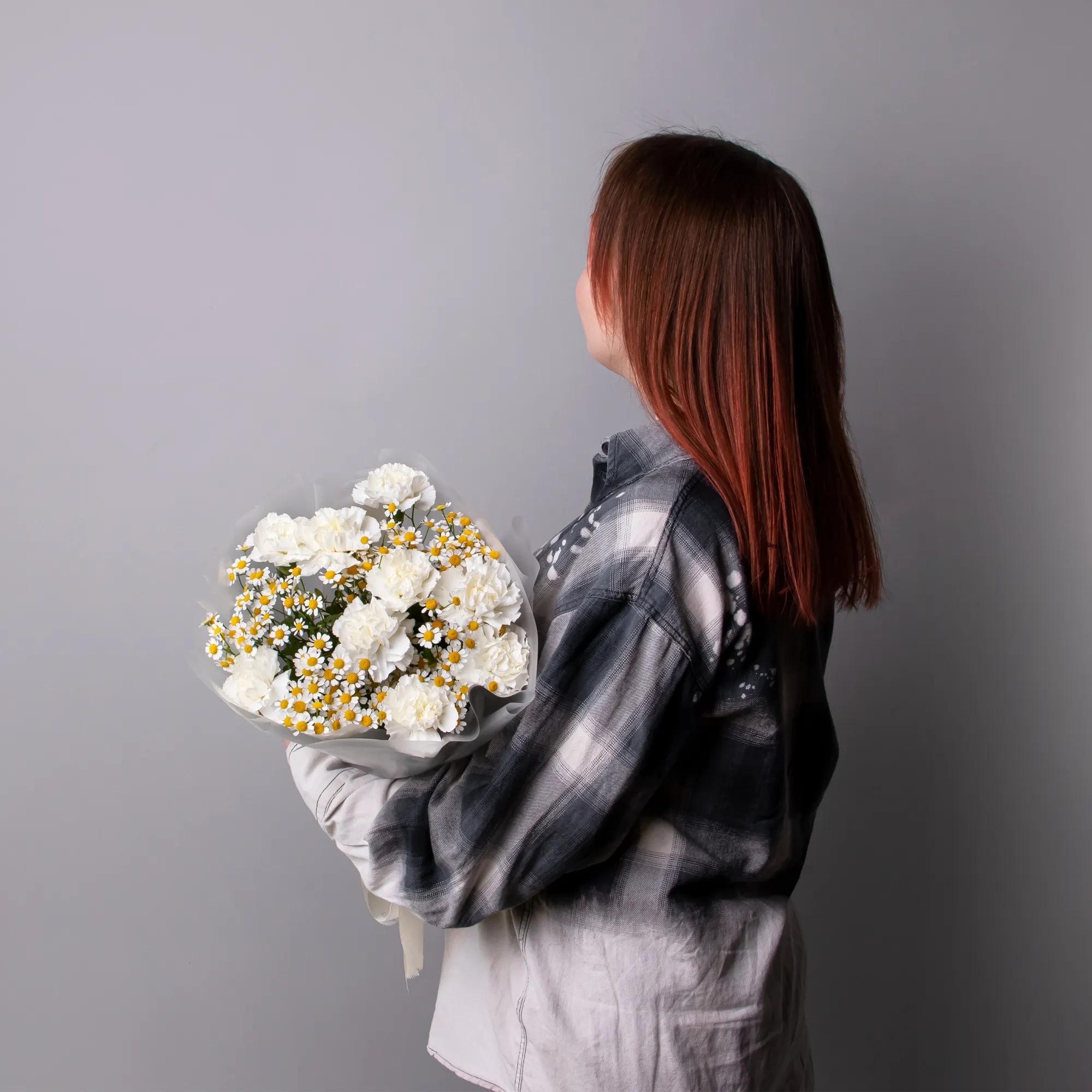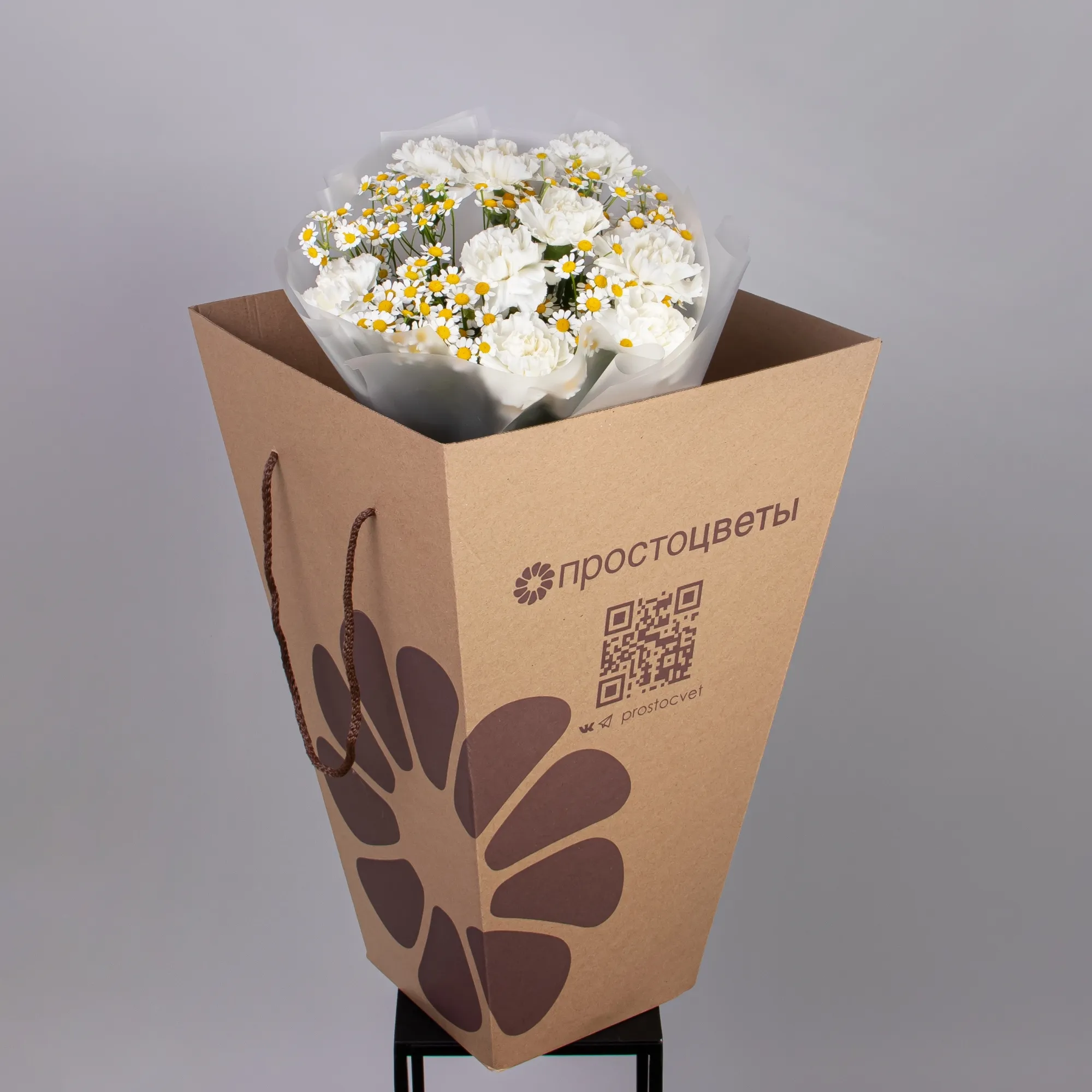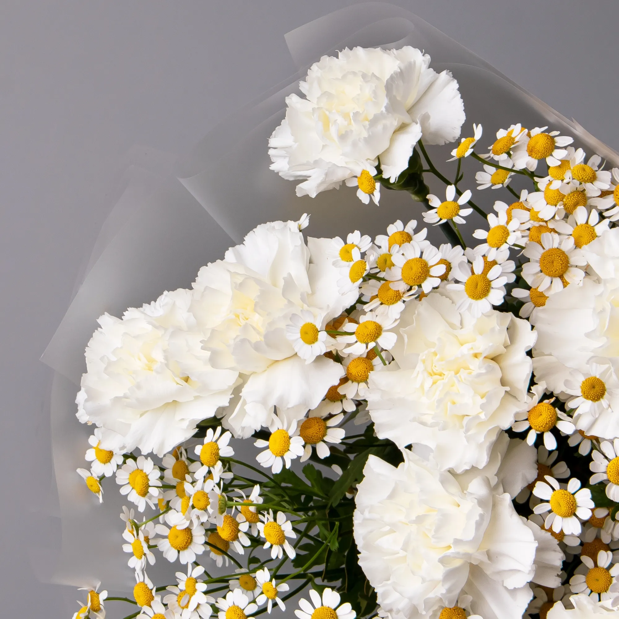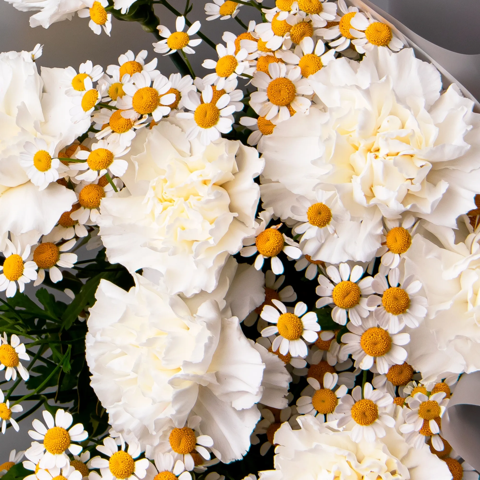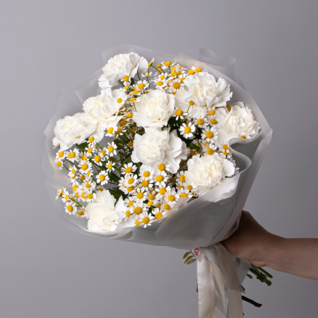 Дуобукет из белой гвоздики и ромашки