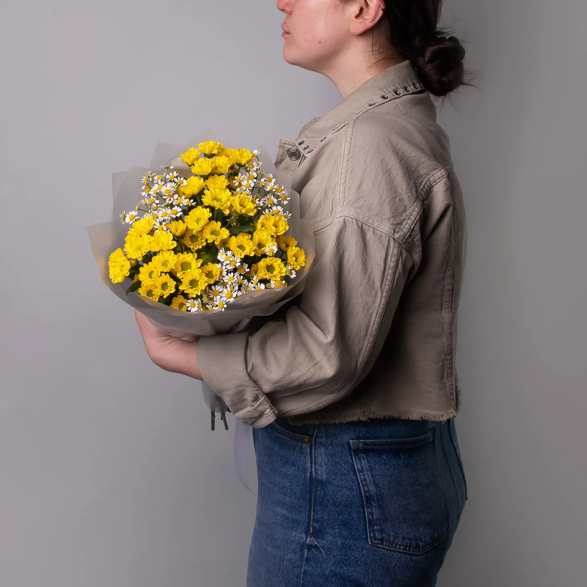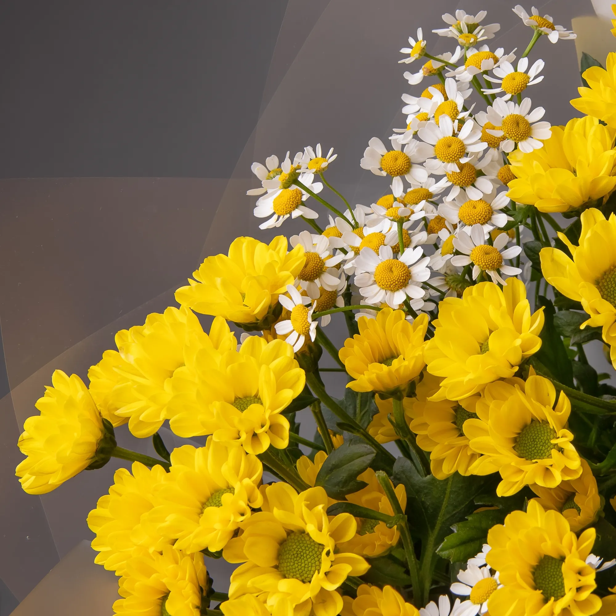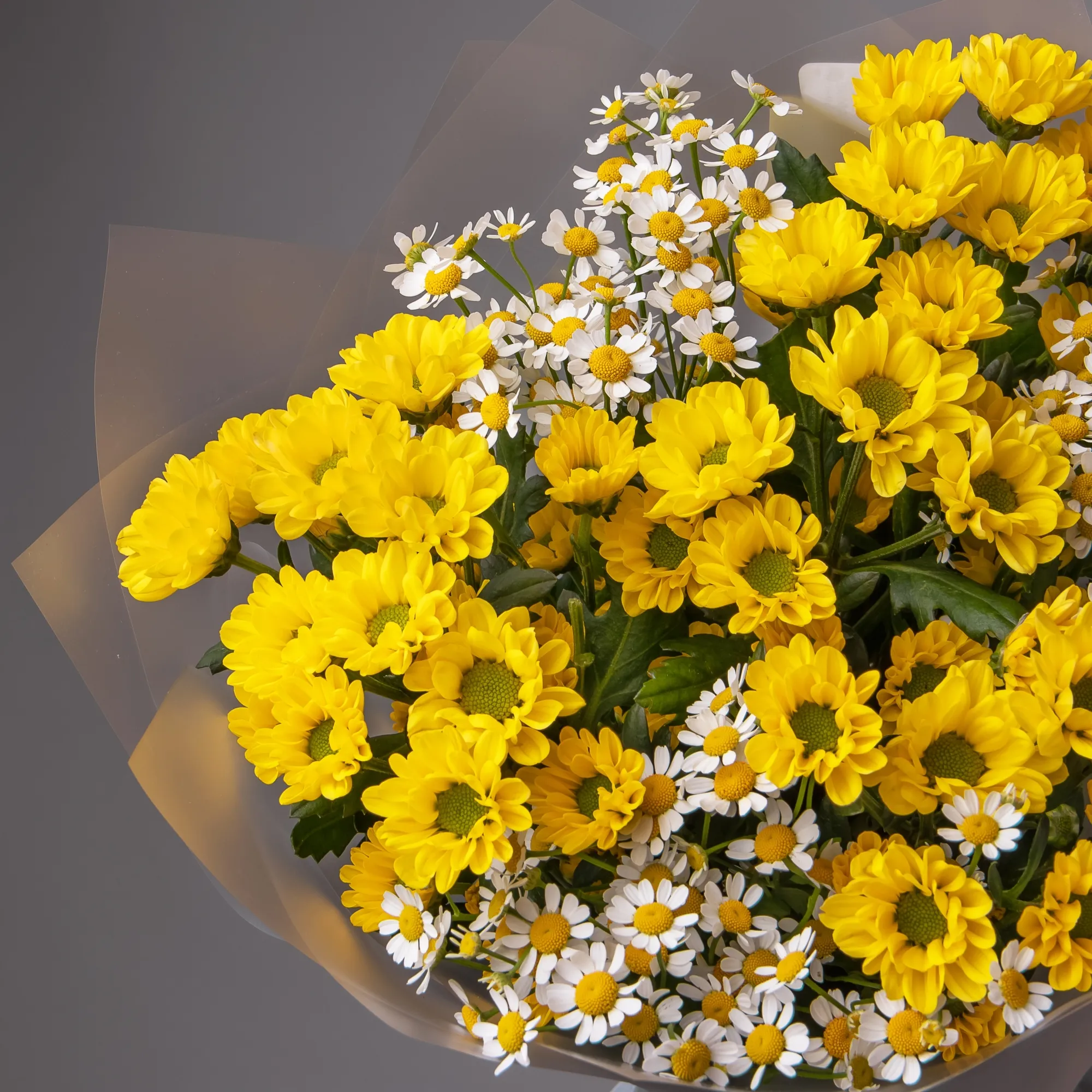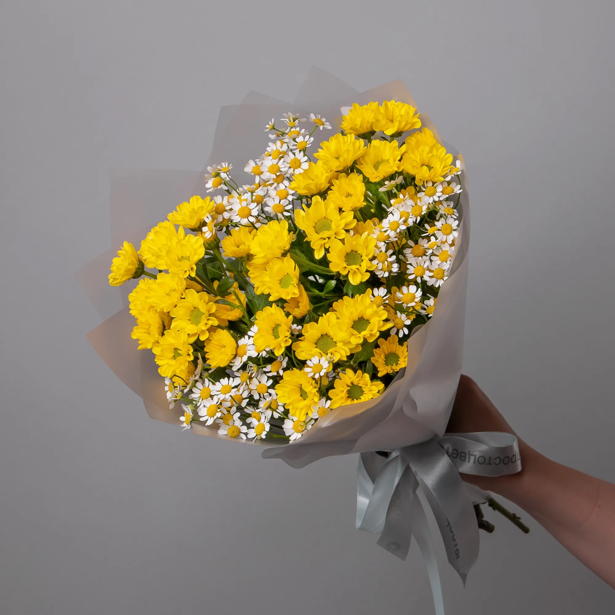 Дуобукет из желтой кустовой хризантемы и ромашки