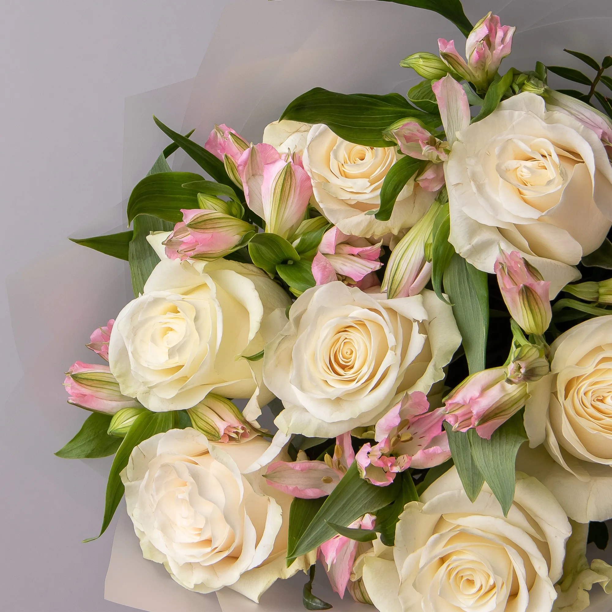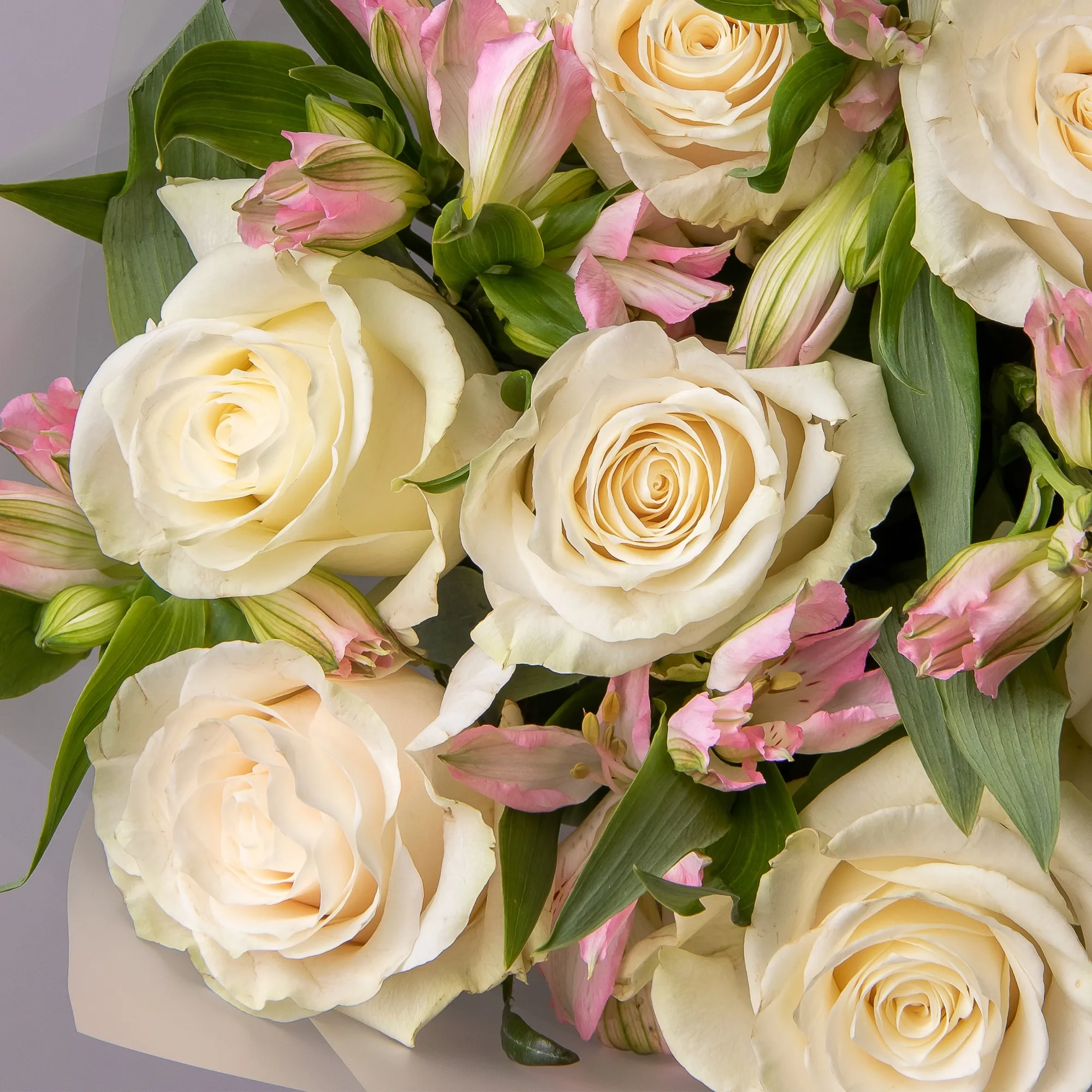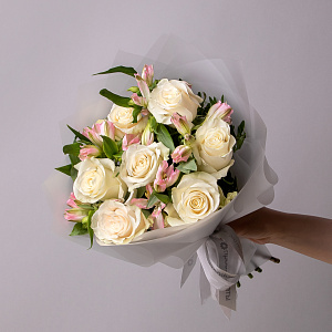 Дуобукет из белой розы и розовой альстромерии