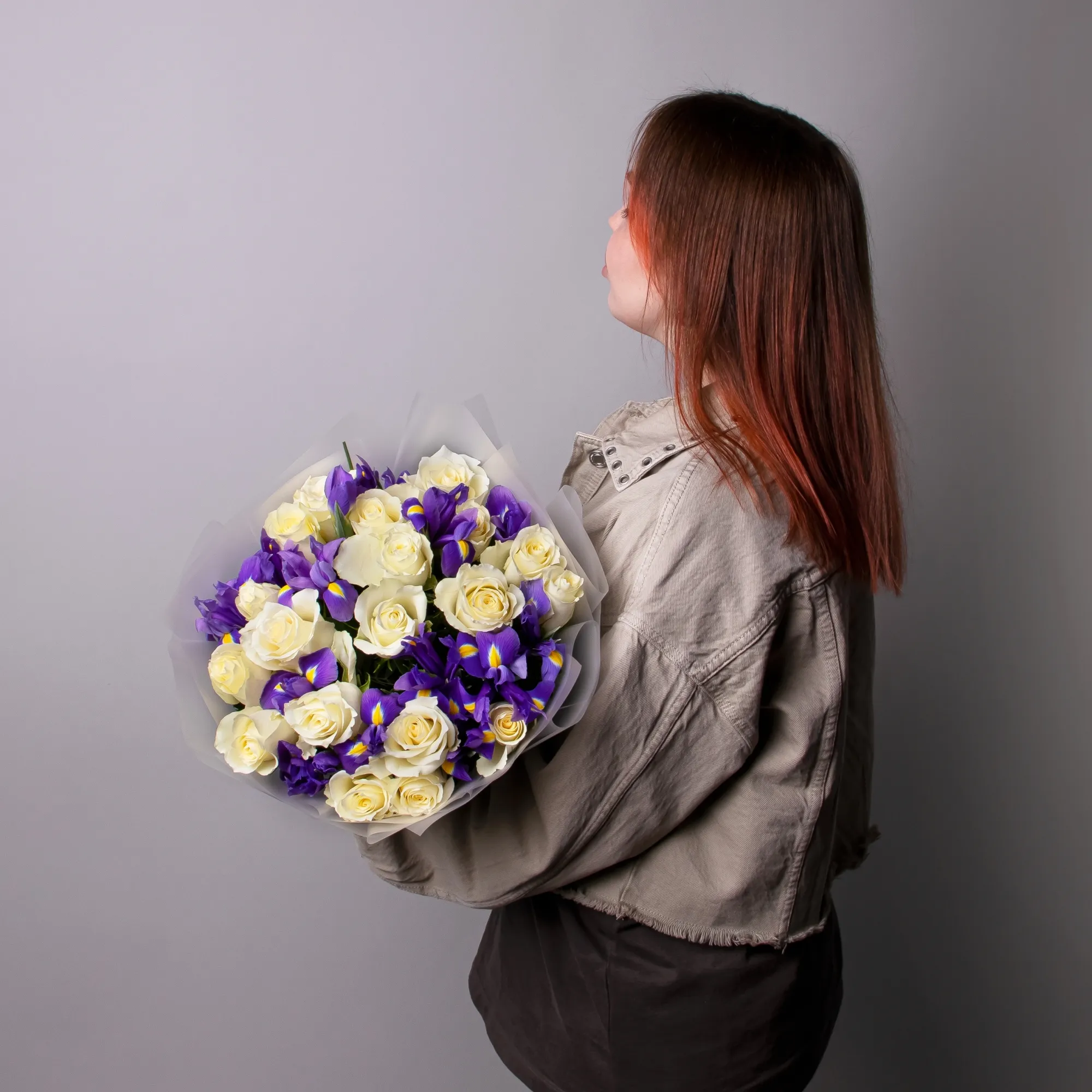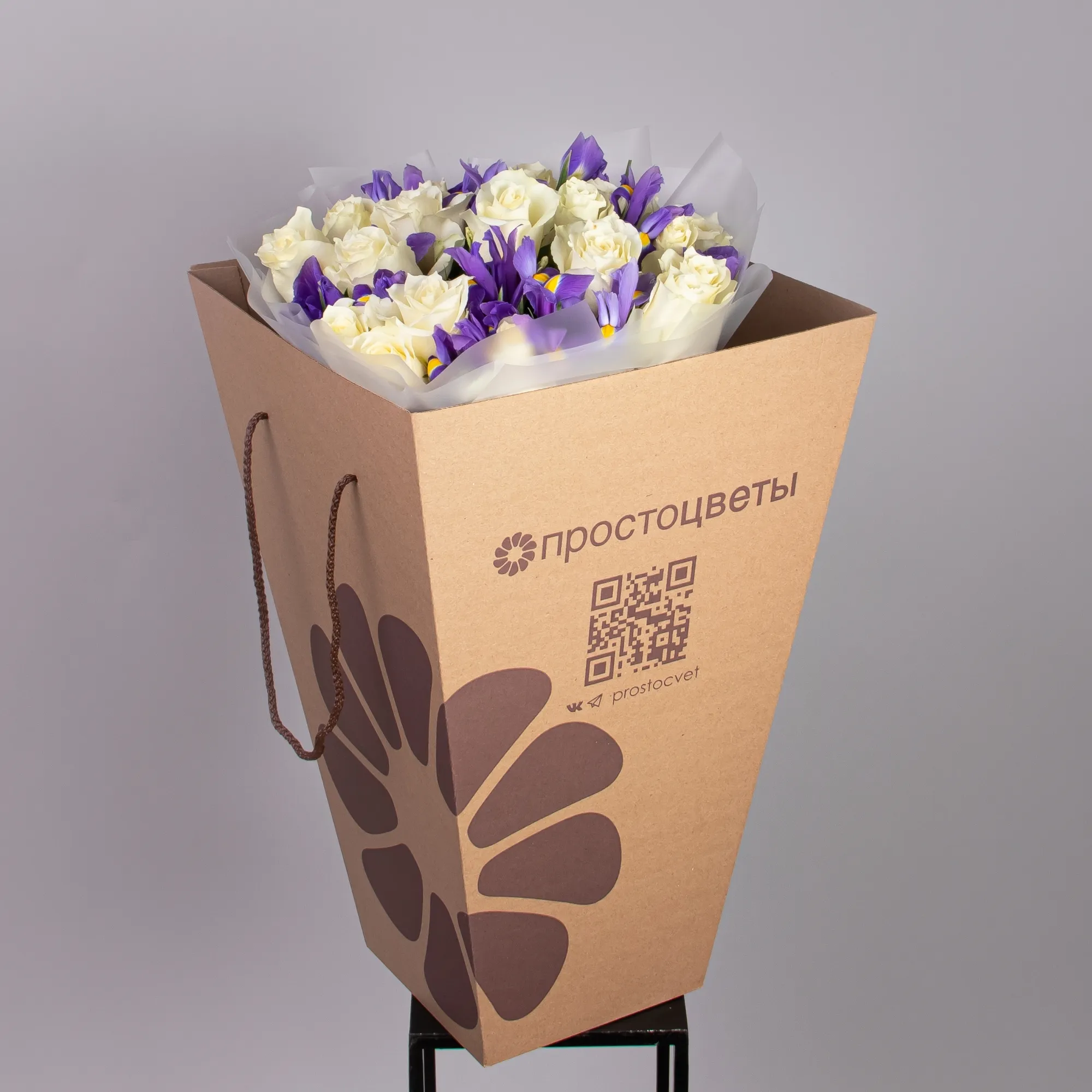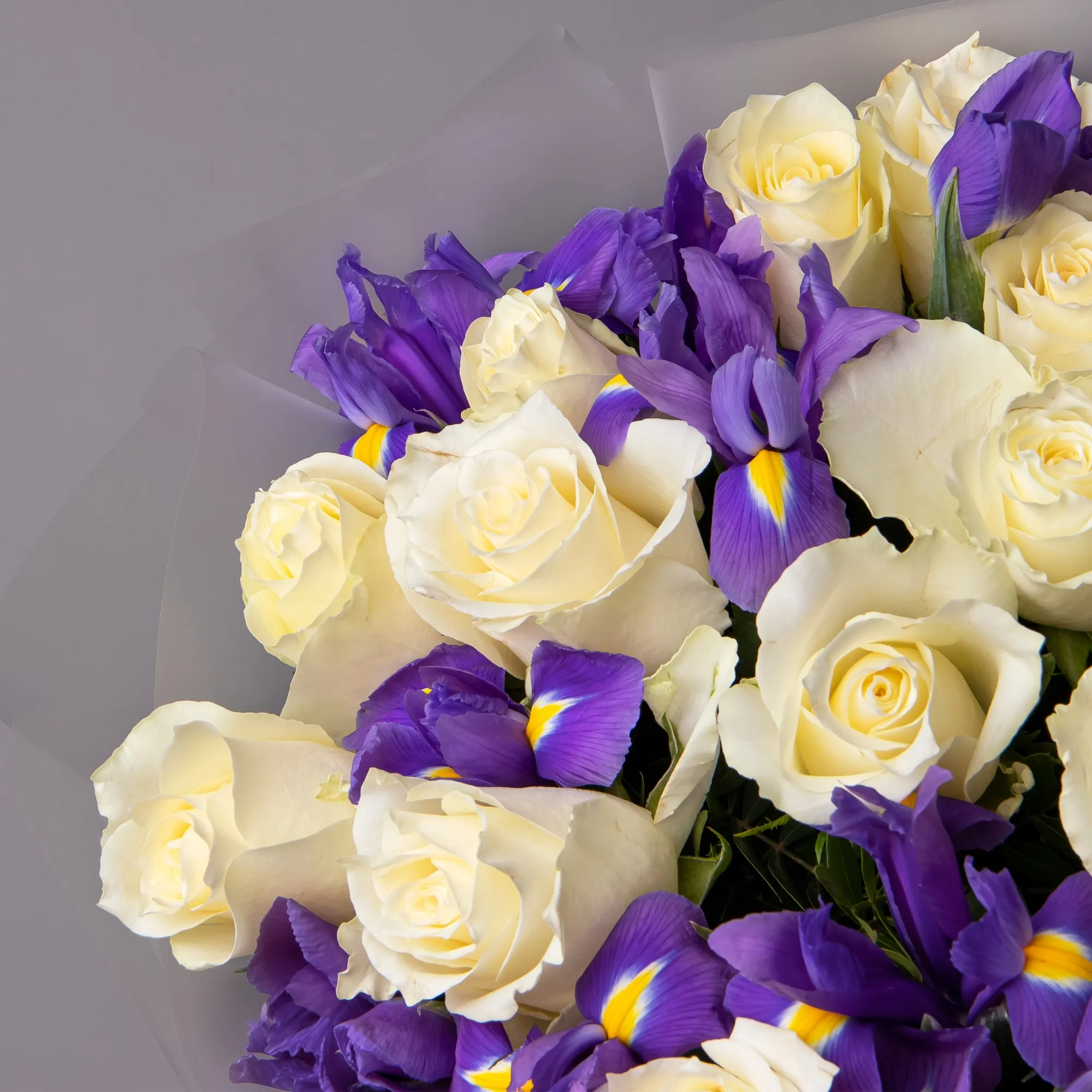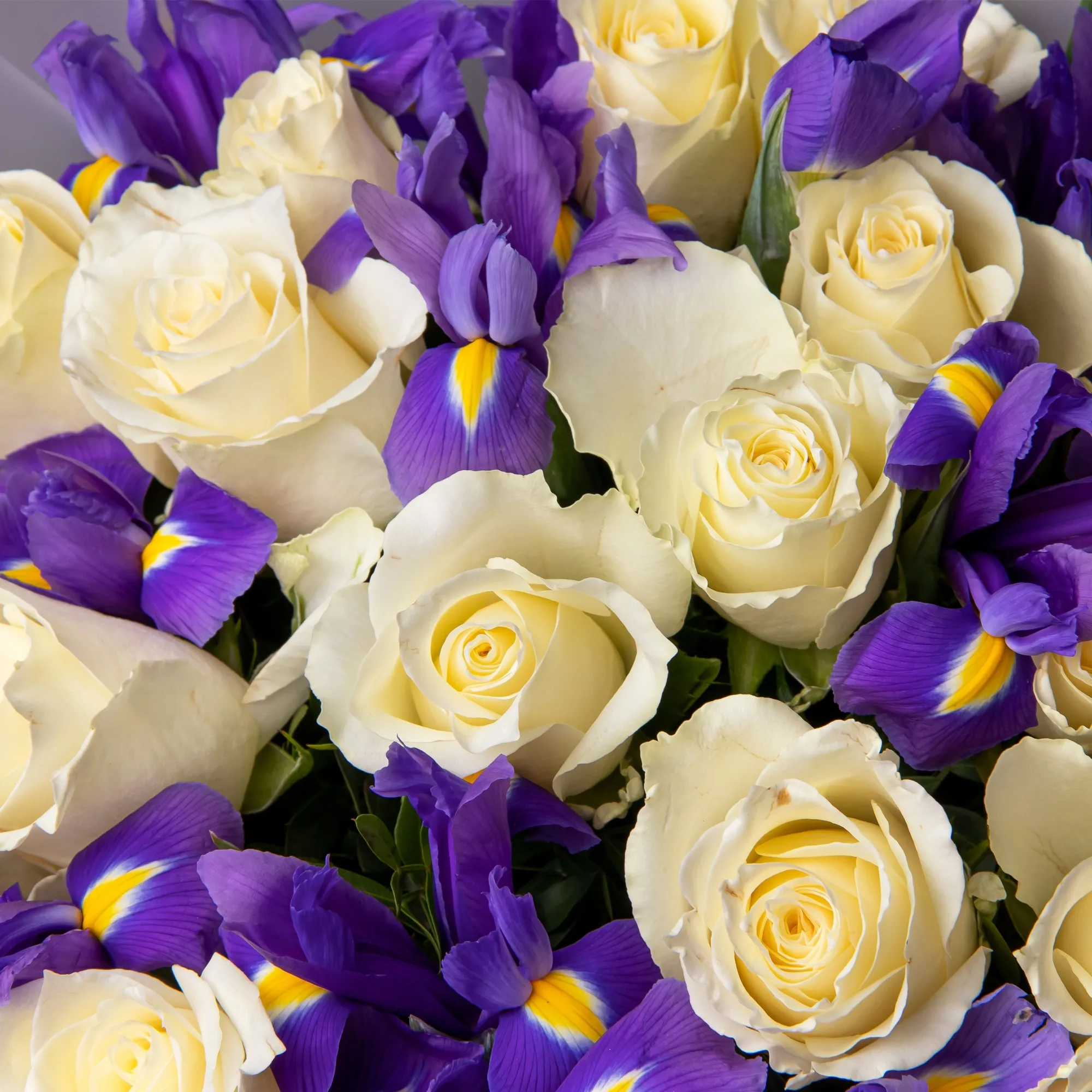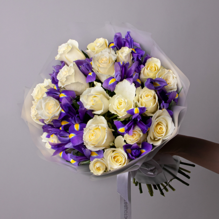 Дуобукет из белой розы и синего ириса