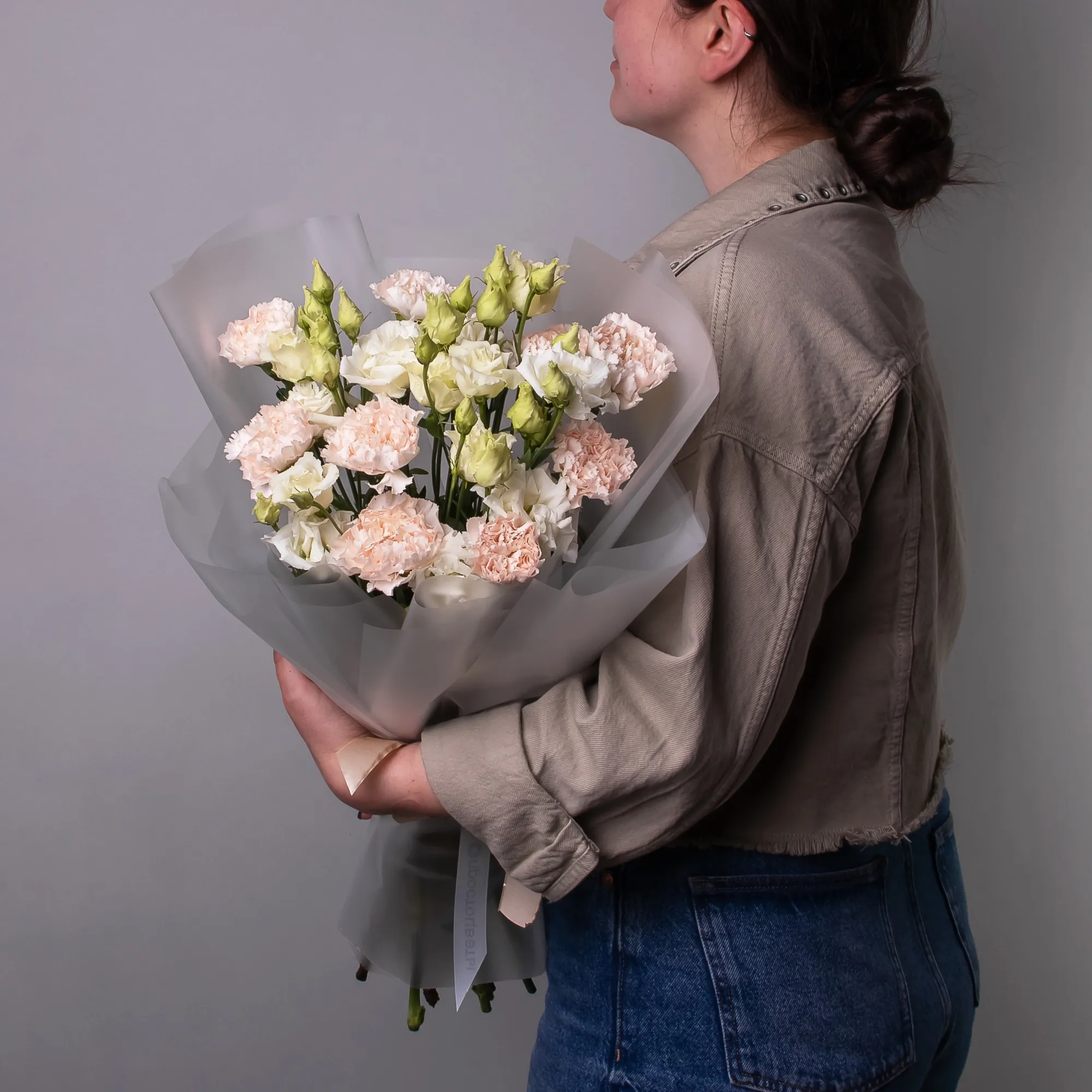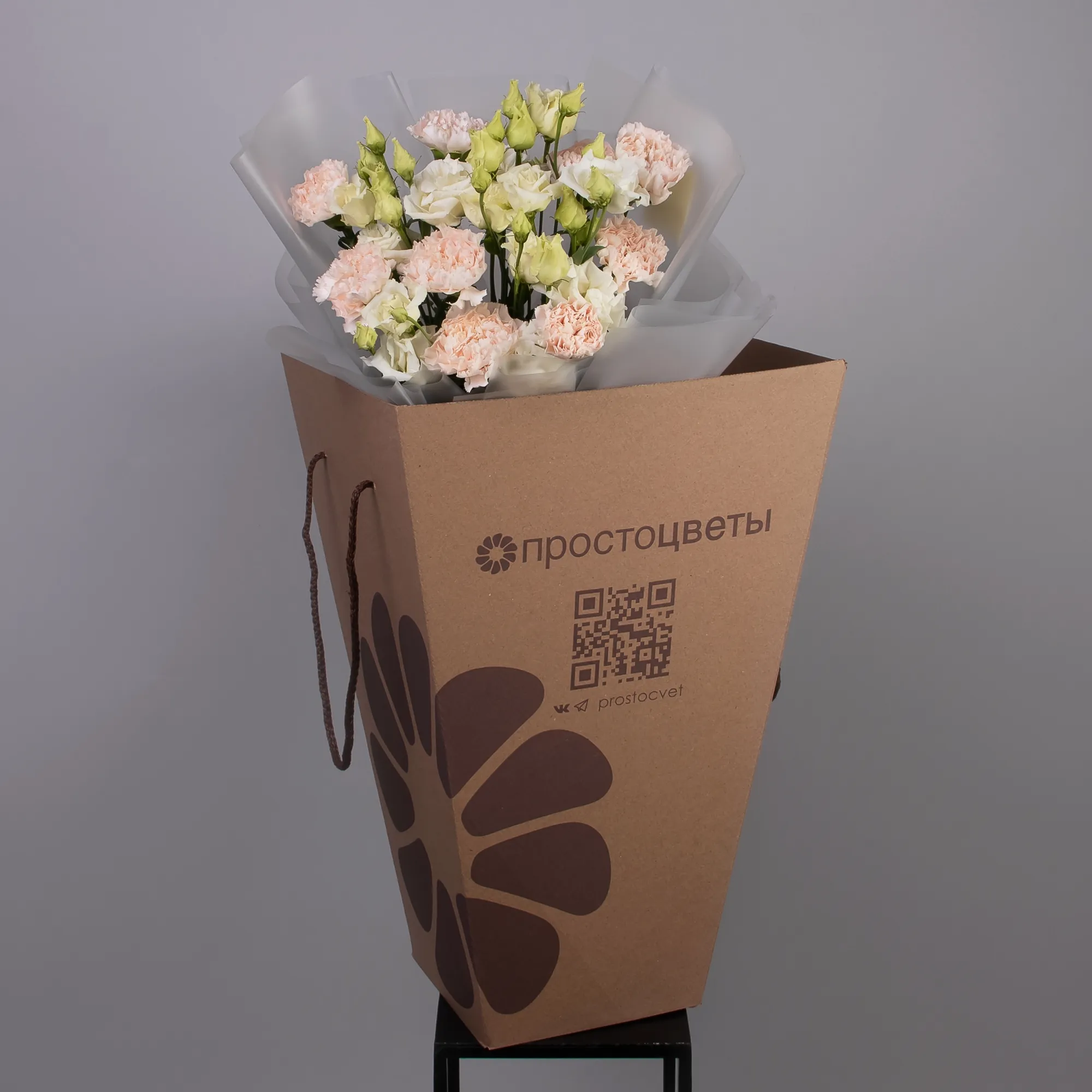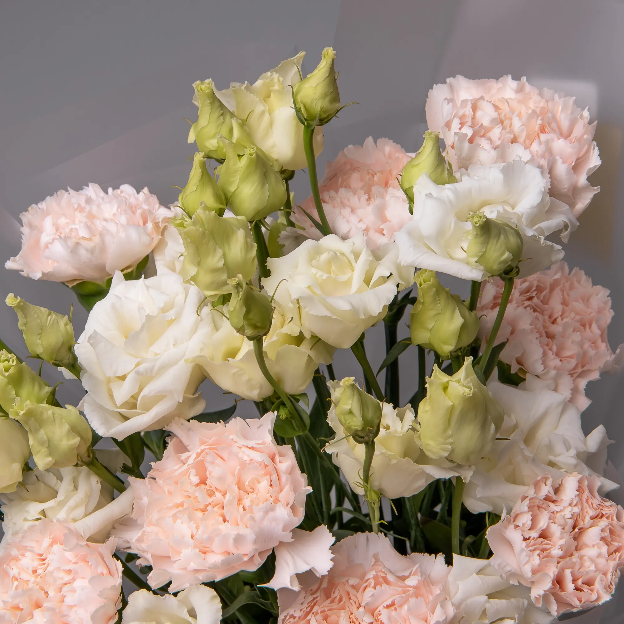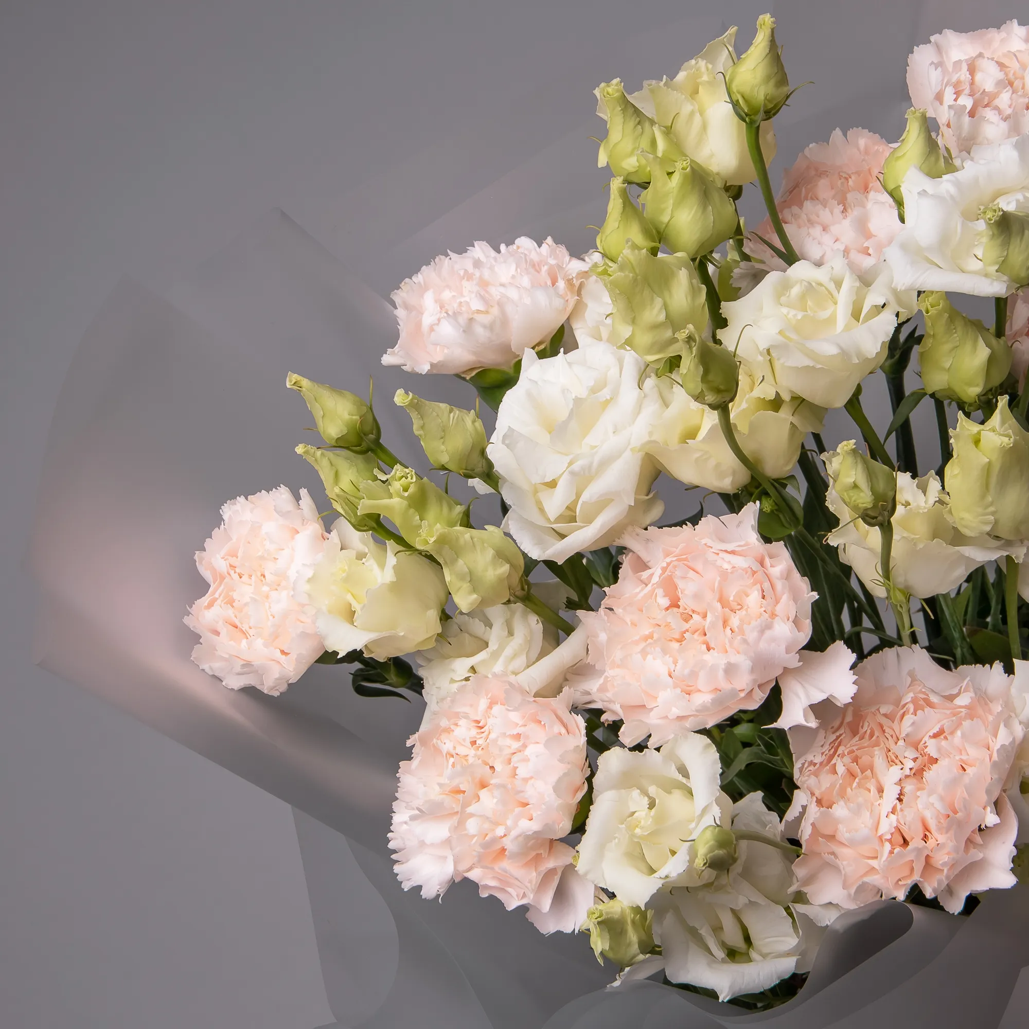 Дуобукет из эустомы и кремовой гвоздики