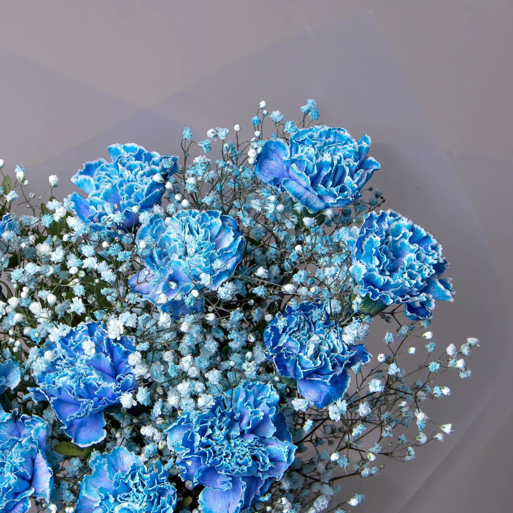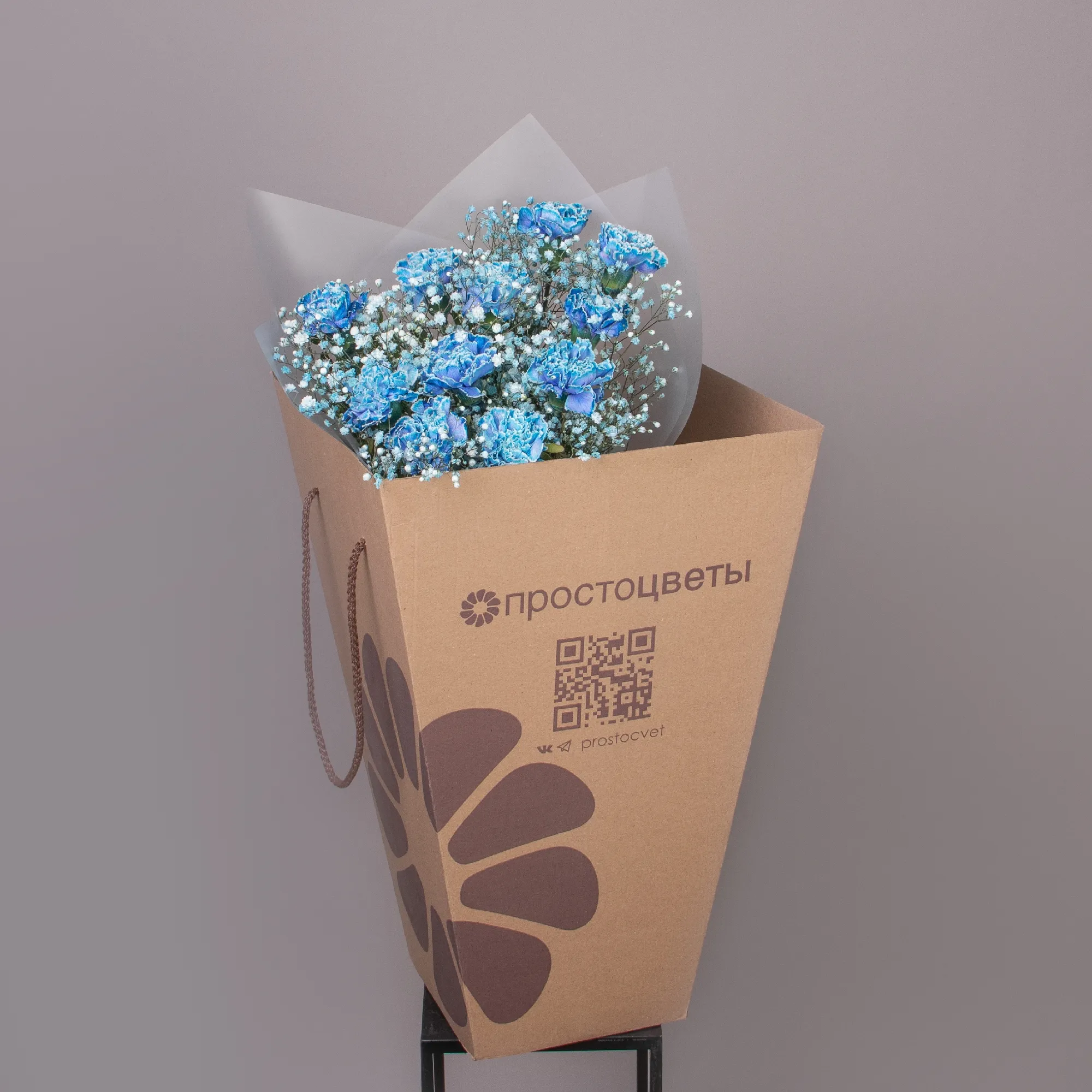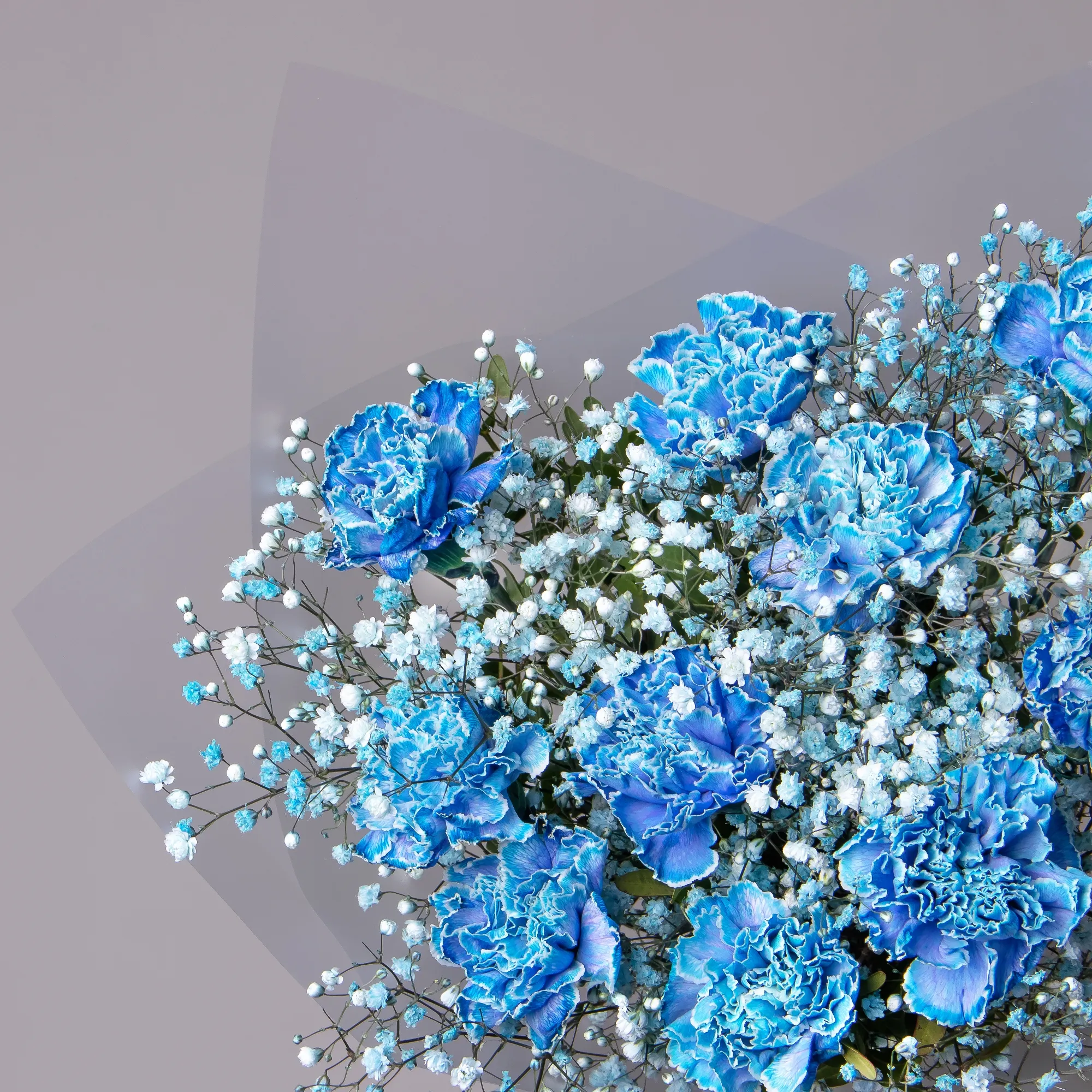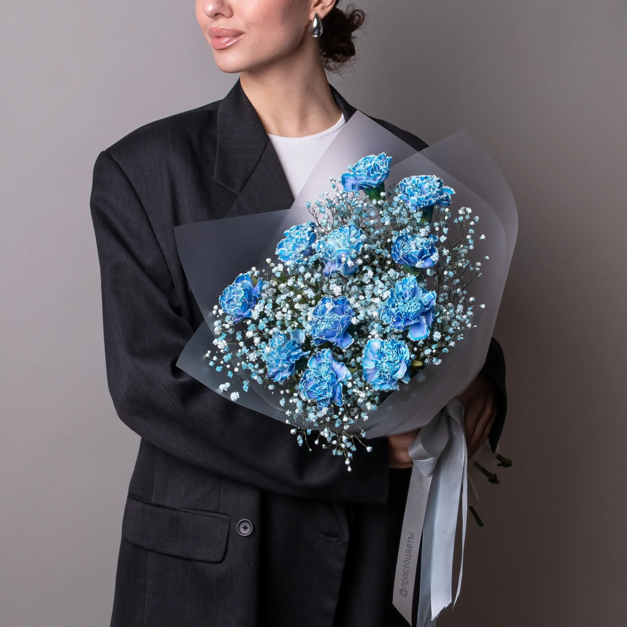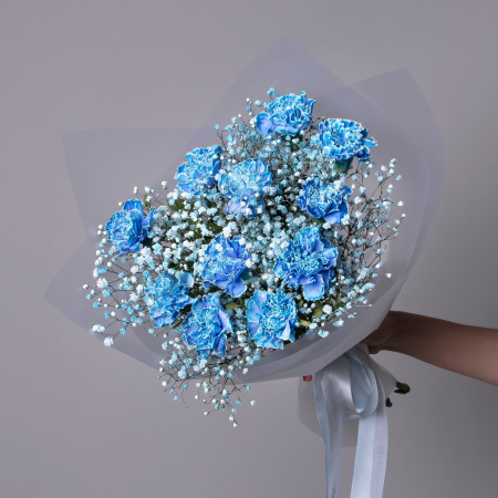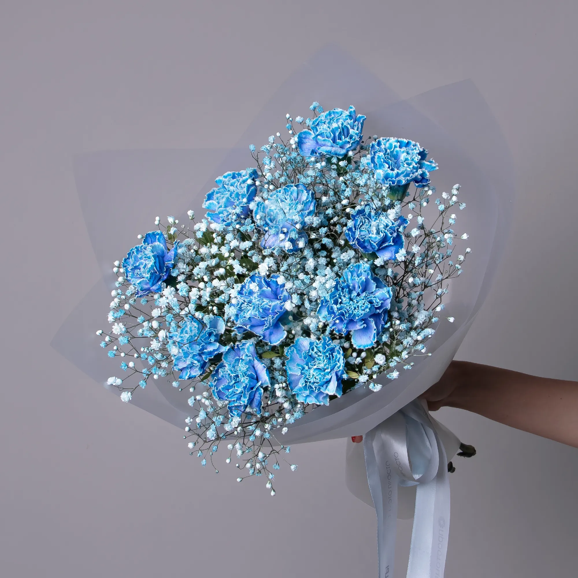 Букет Дуобукет из голубой гвоздики и гипсофилы