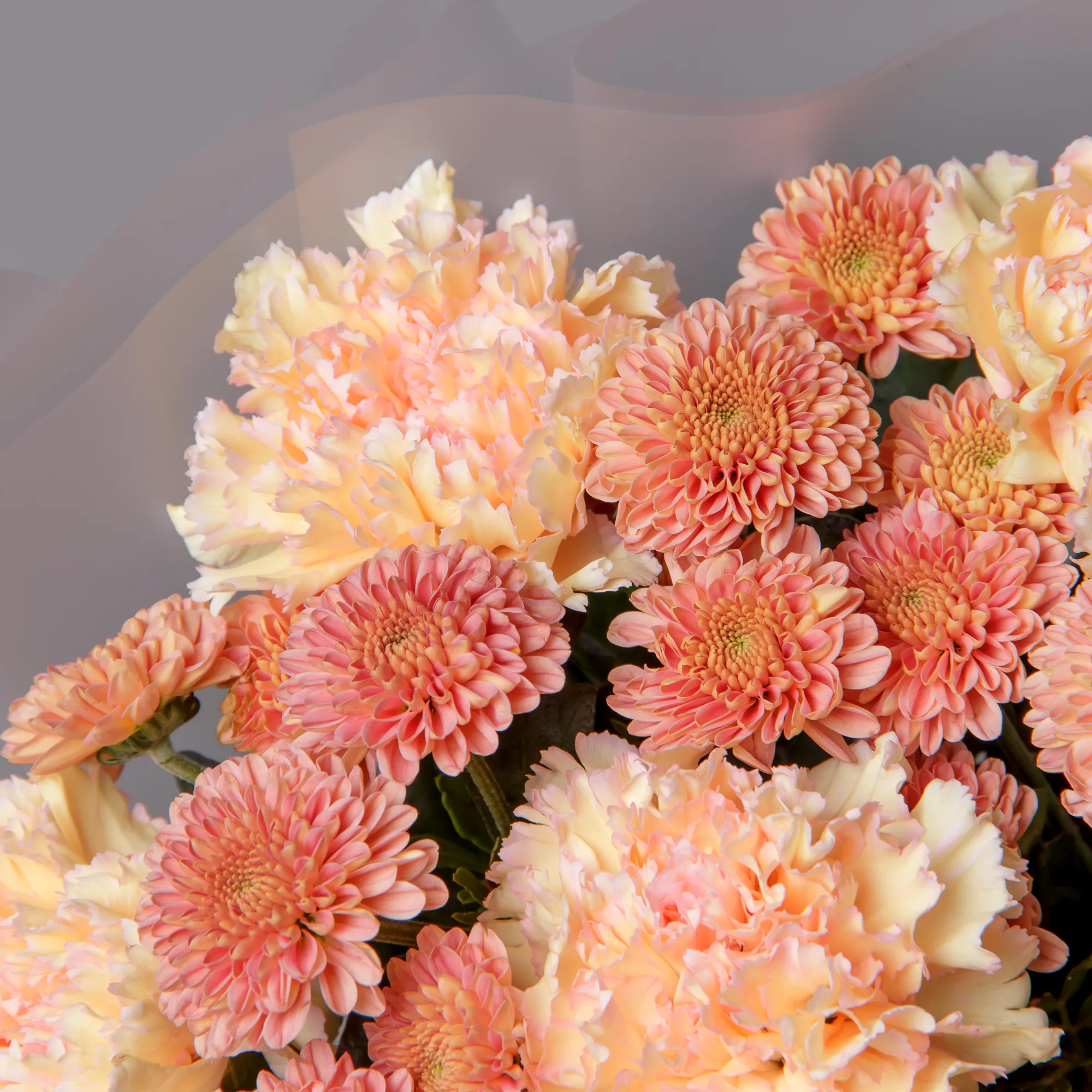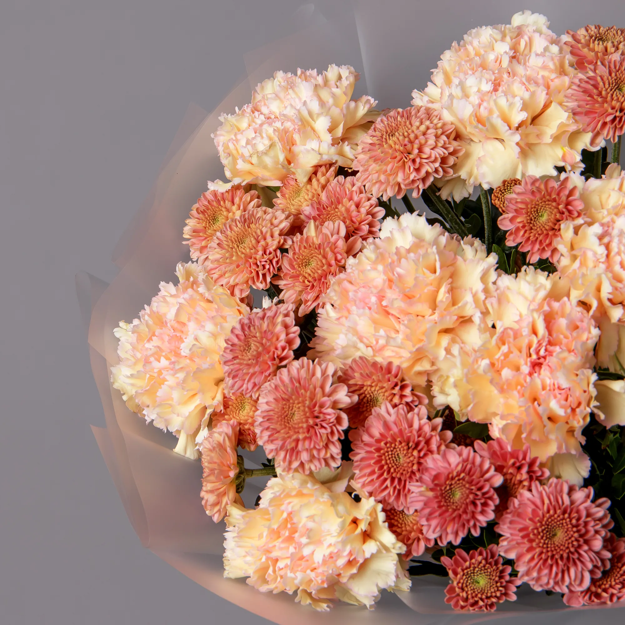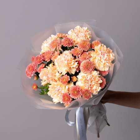 Букет Дуобукет из крашеной гвоздики и хризантемы сантини