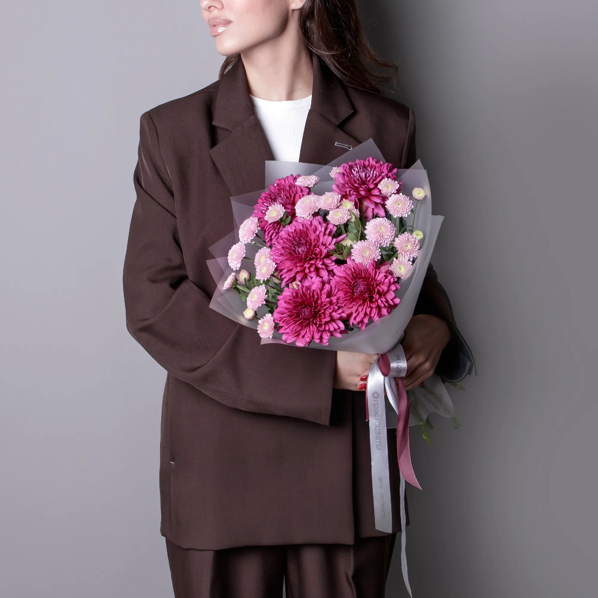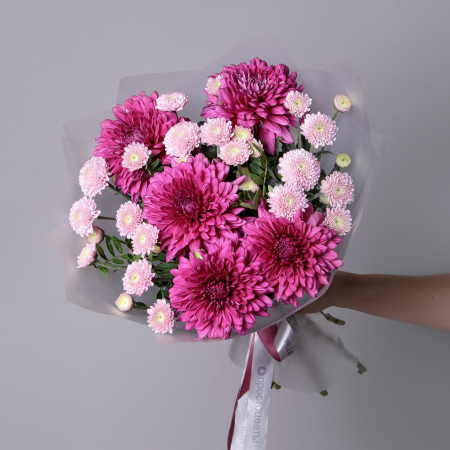 Букет "Дуобукет из одноголовой хризантемы Ламира и сантини"