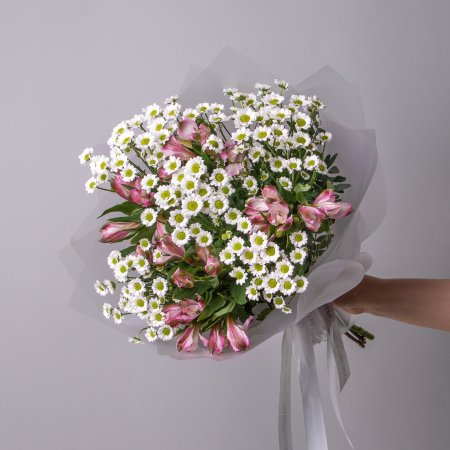 В свою очередь, мы гарантируем соблюдение стиля и основного состава букета, в этом можете быть уверенными.