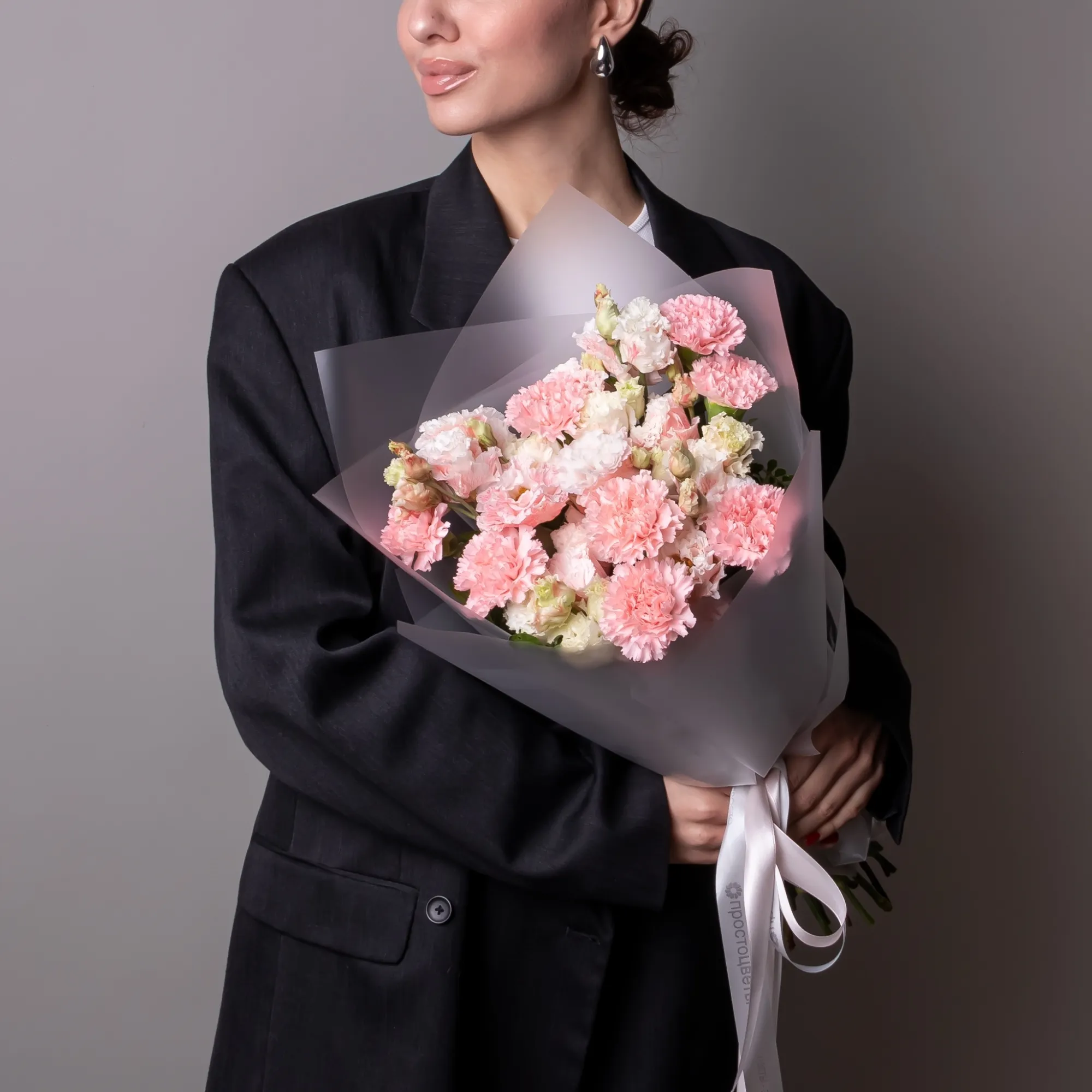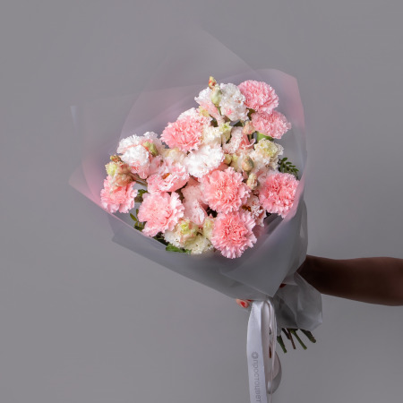 Букет Дуобукет из розовой гвоздики и крашенной эустомы