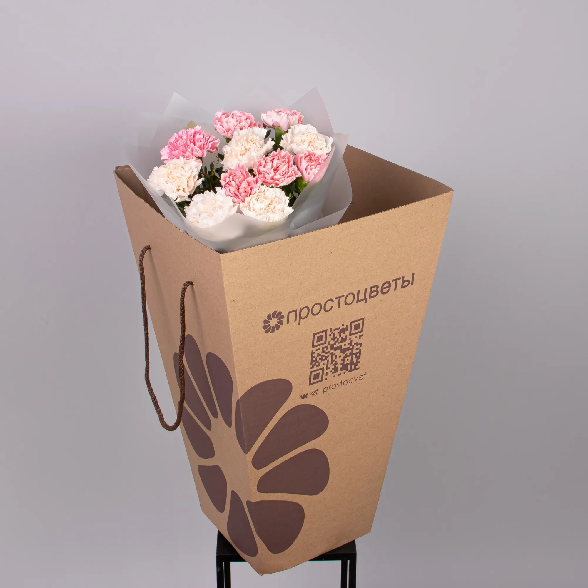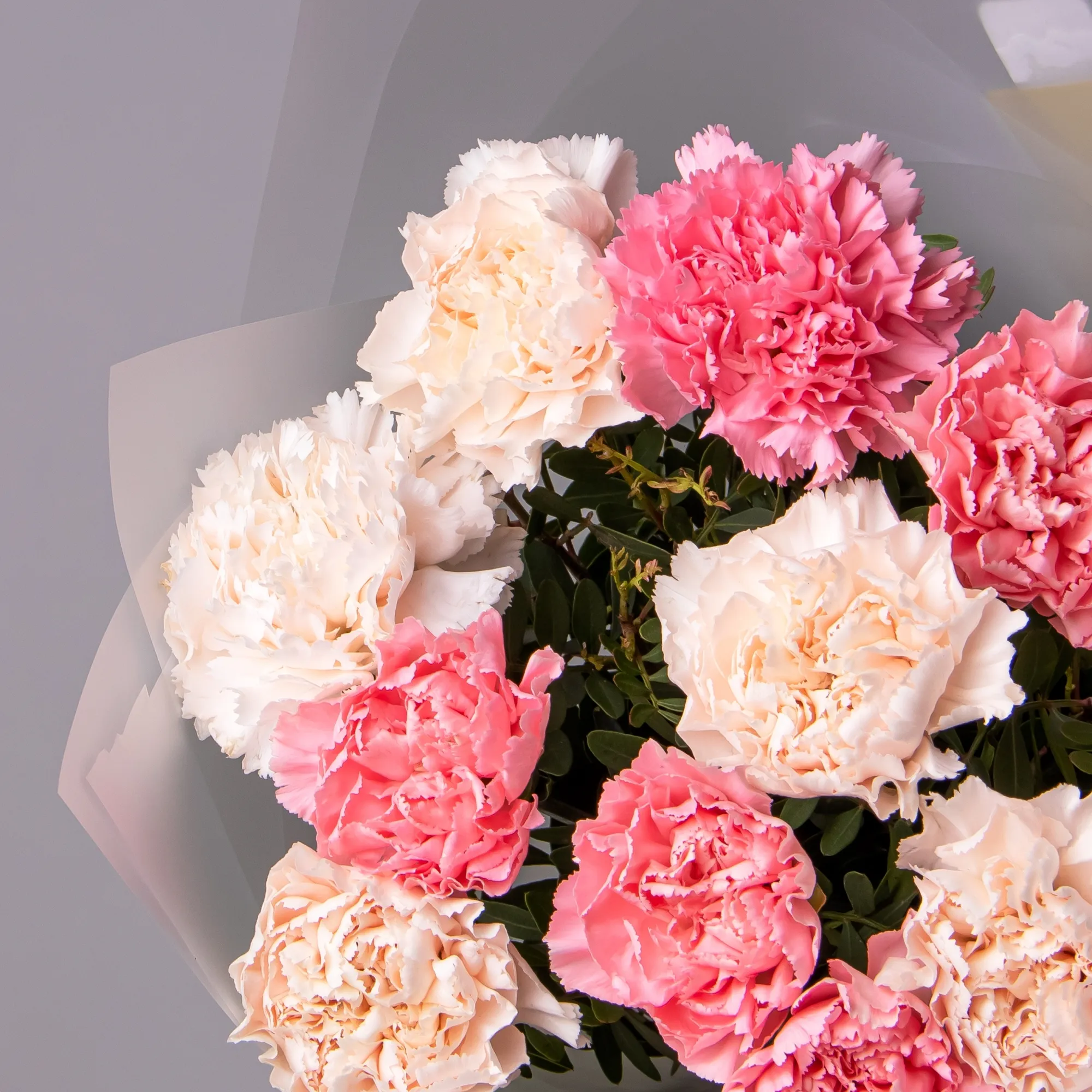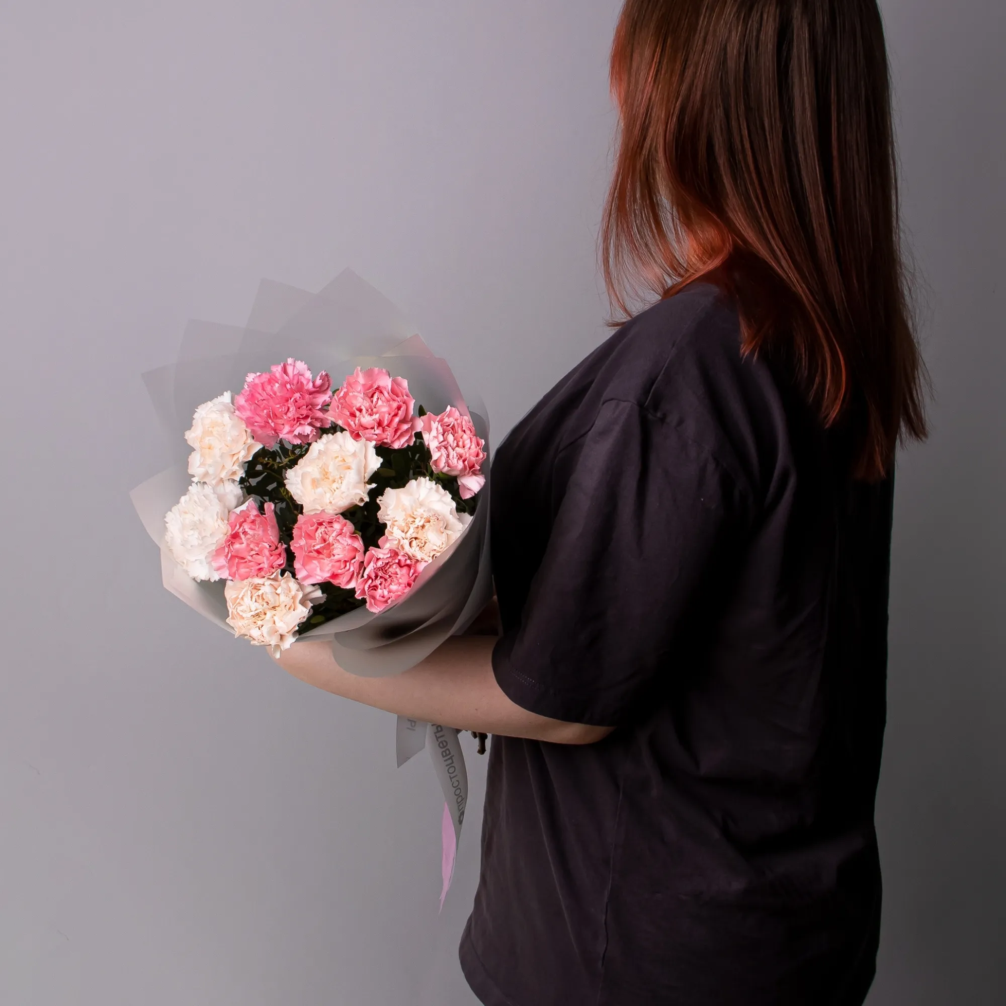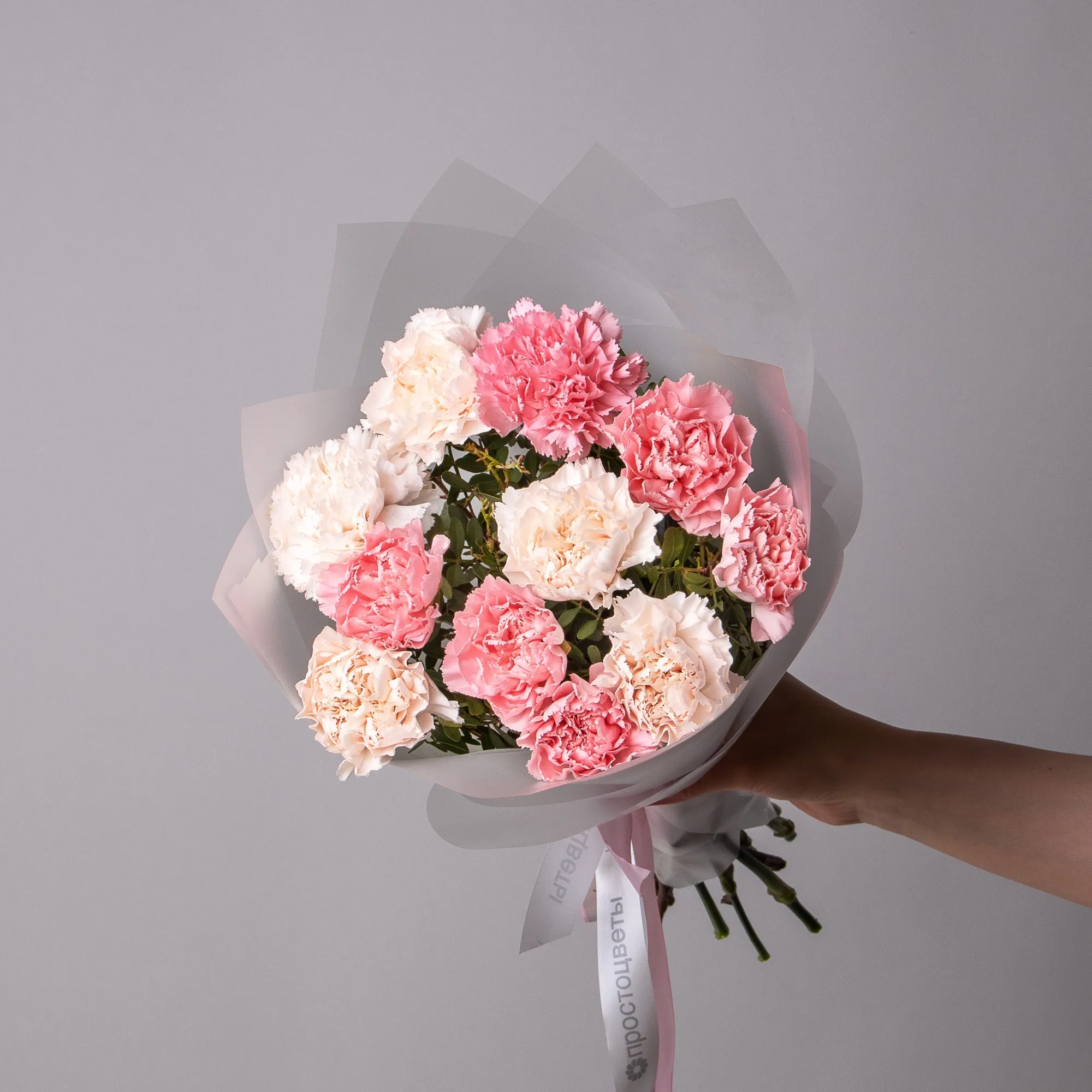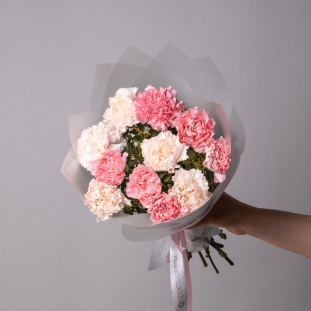 Дуобукет из розовых и кремовых гвоздик