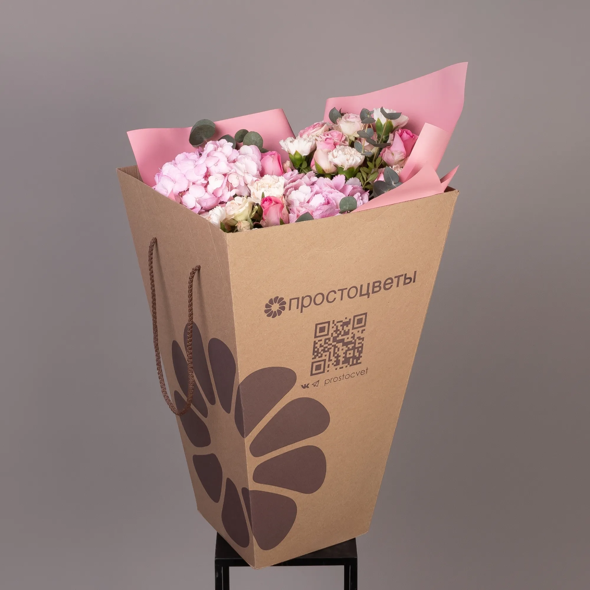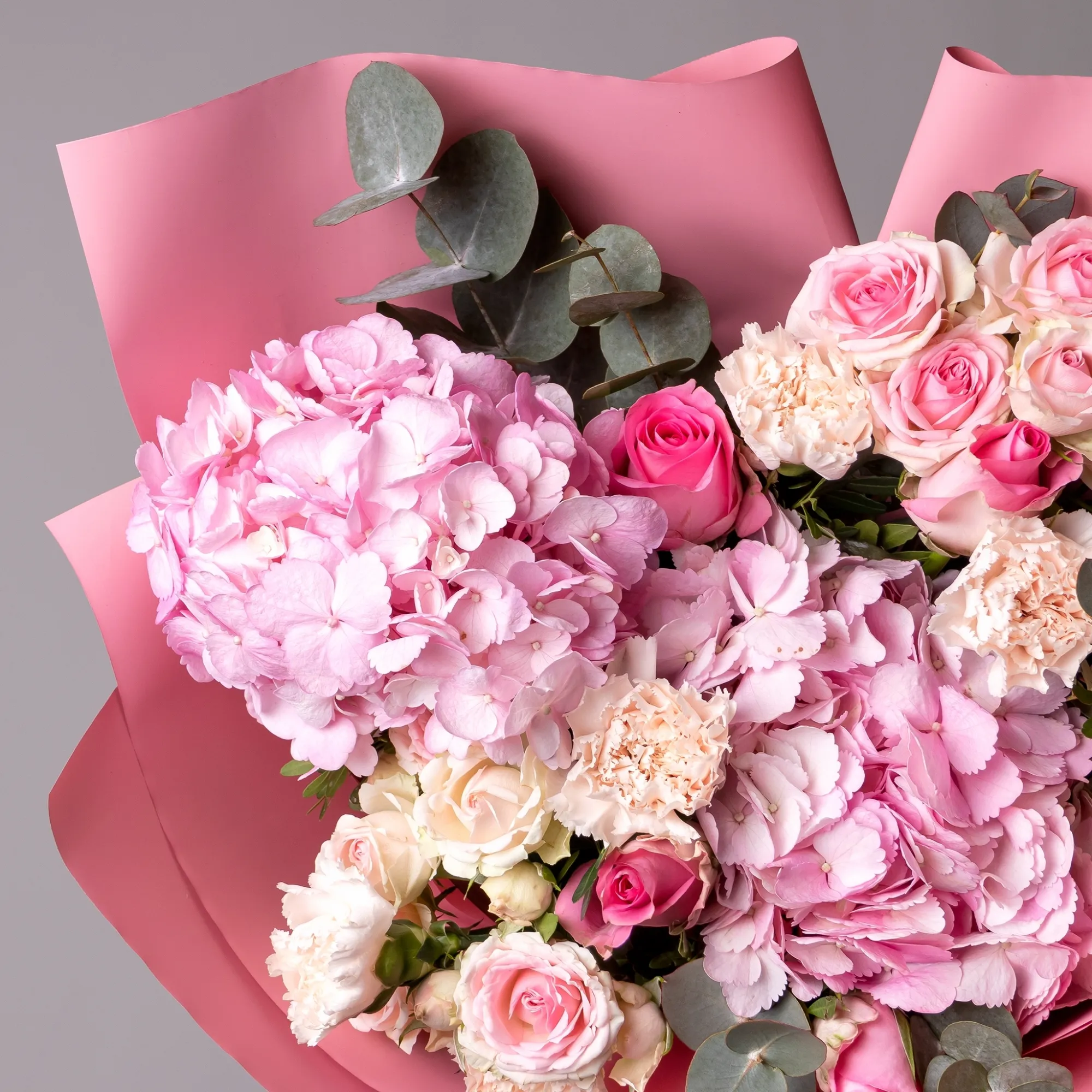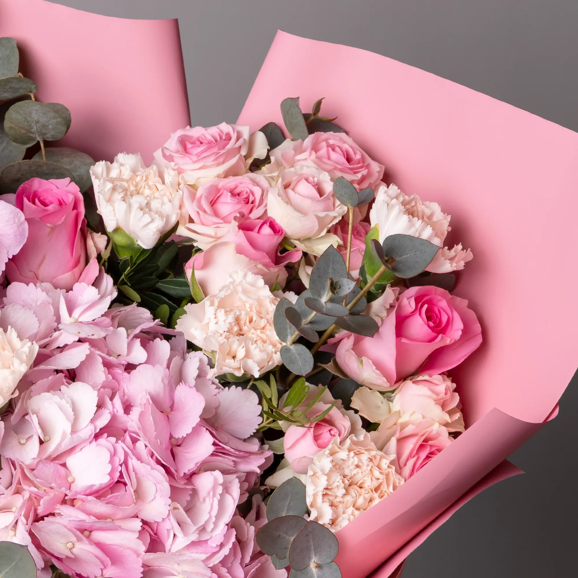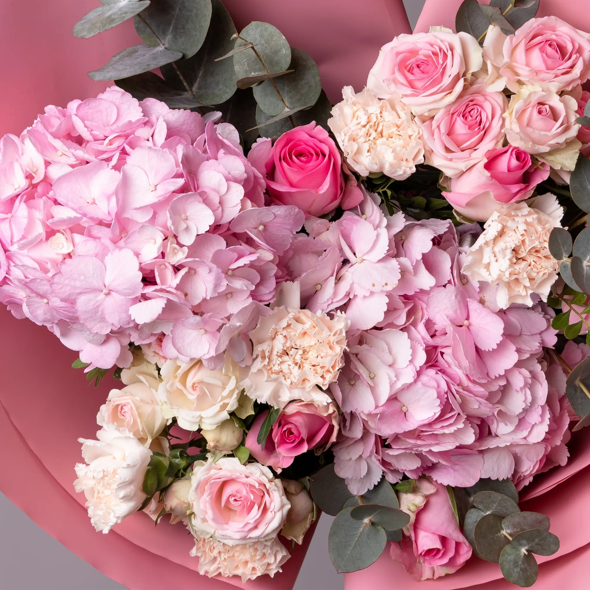 Гвоздика, Гортензия, Роза, Листья фисташки, Листья эвкалипта
