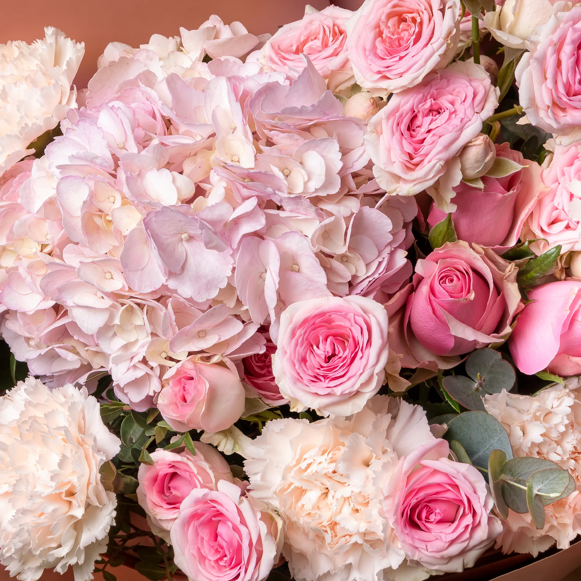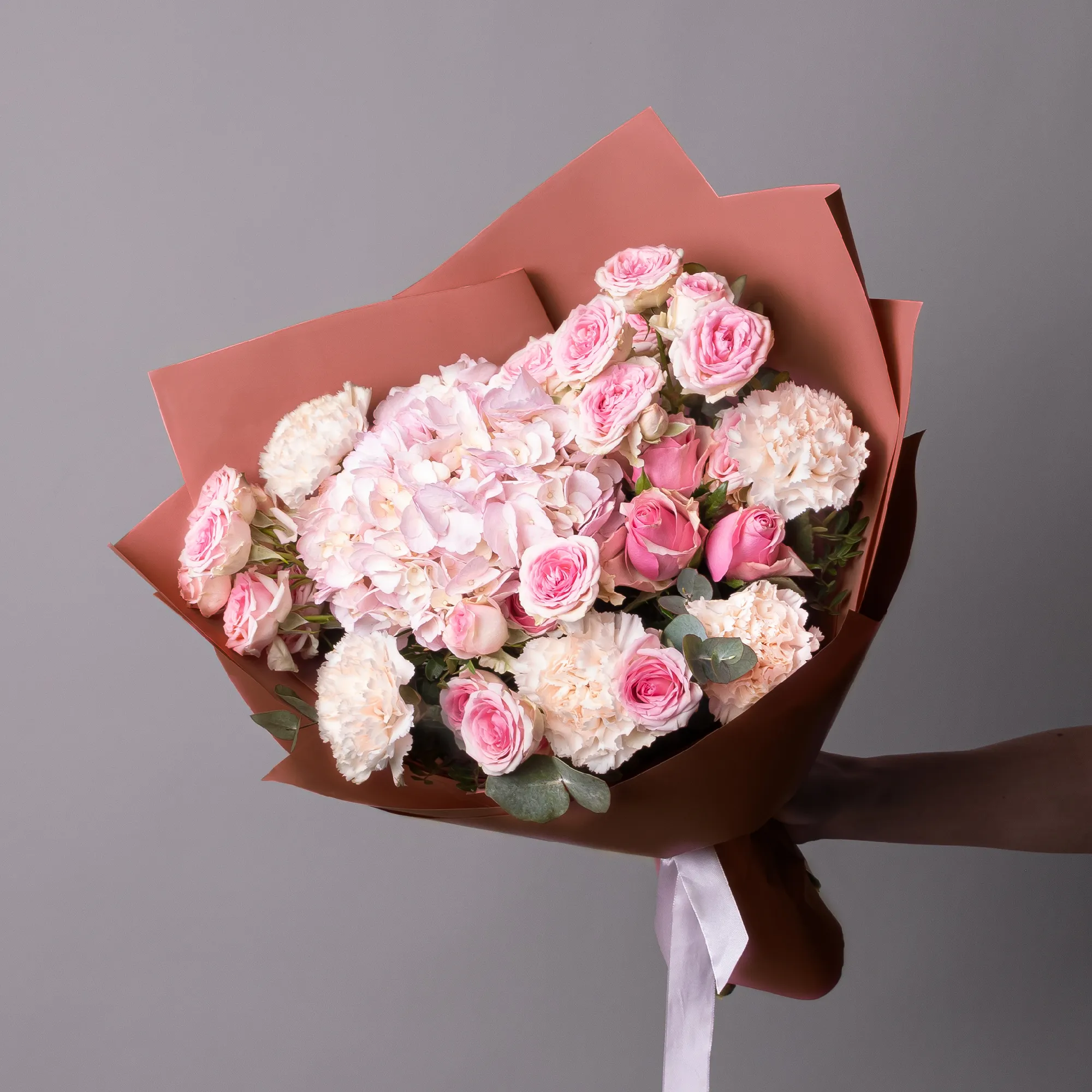 Гвоздика, Гортензия, Роза, Листья фисташки, Листья эвкалипта