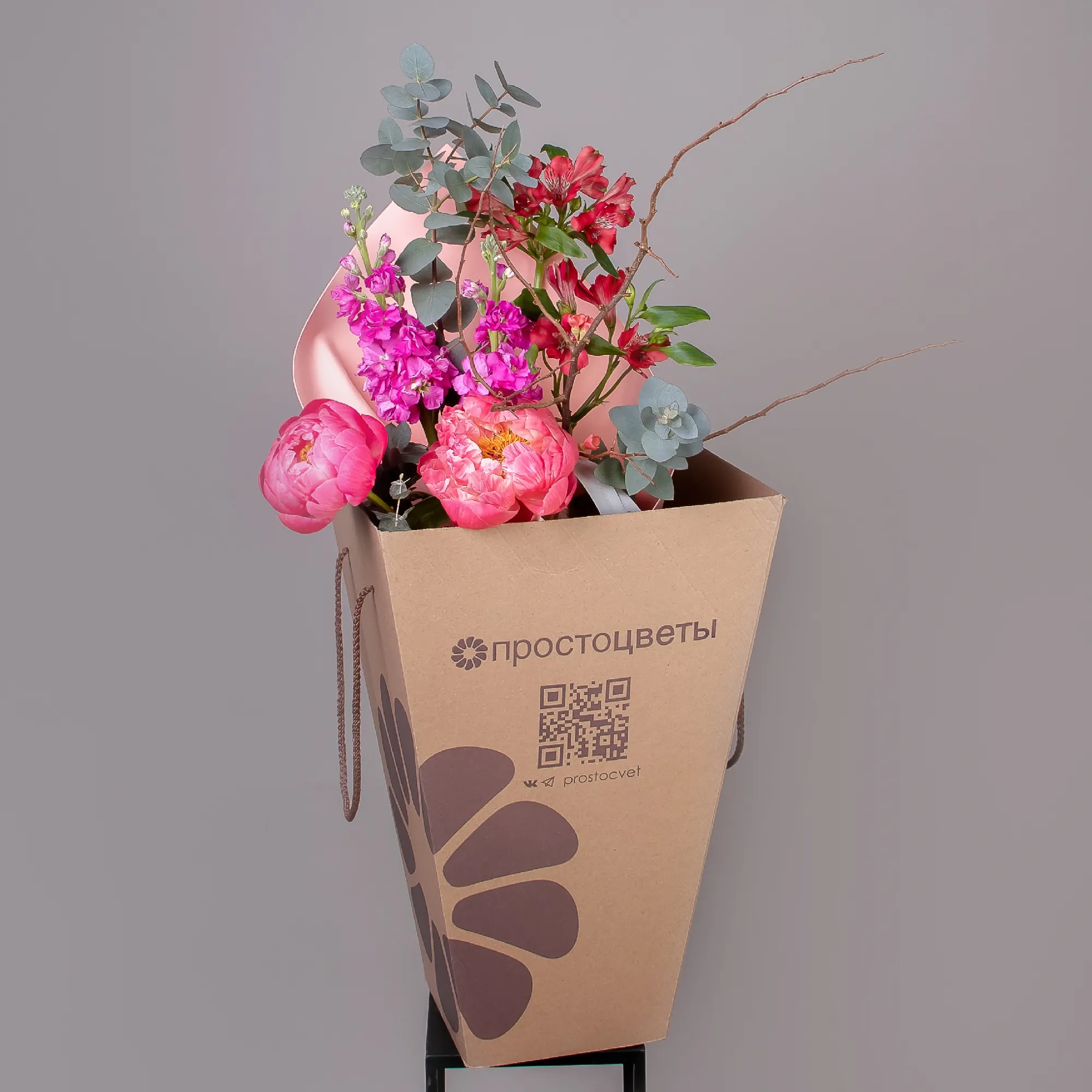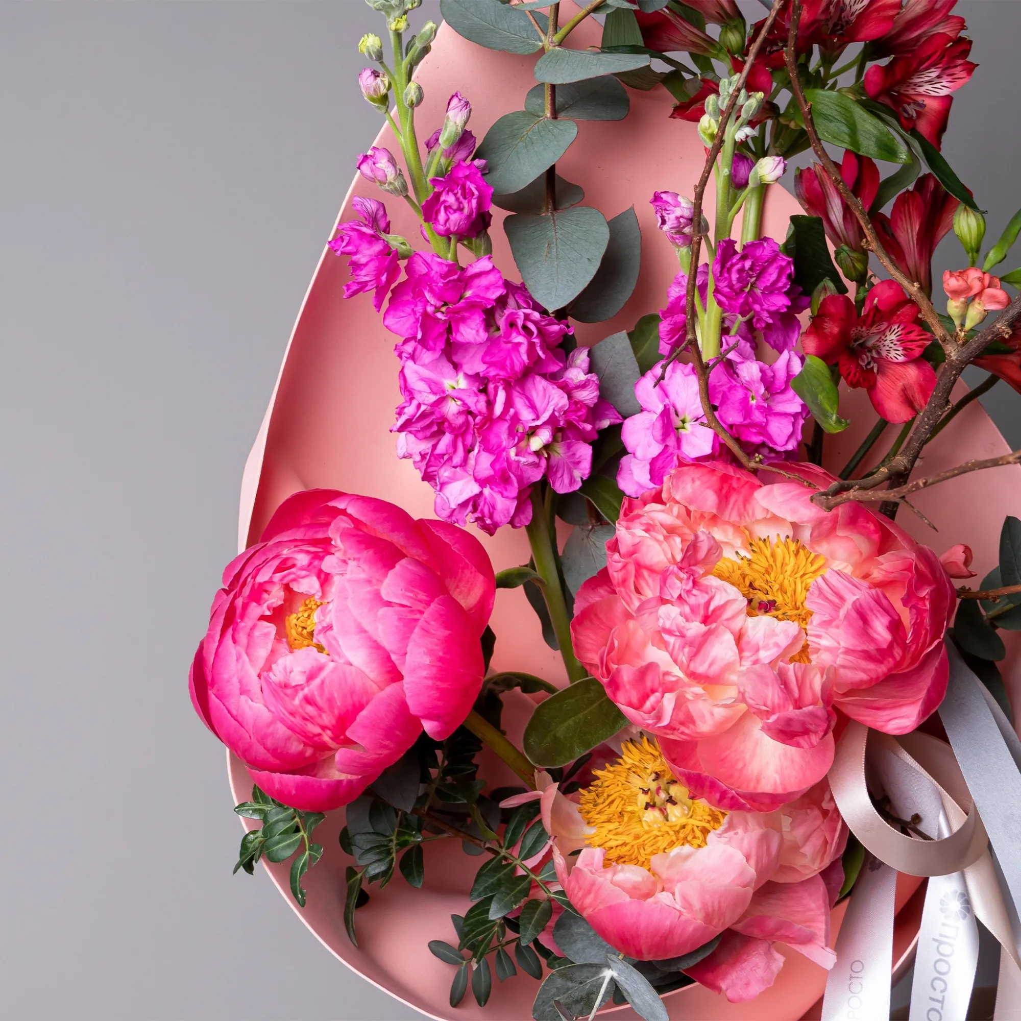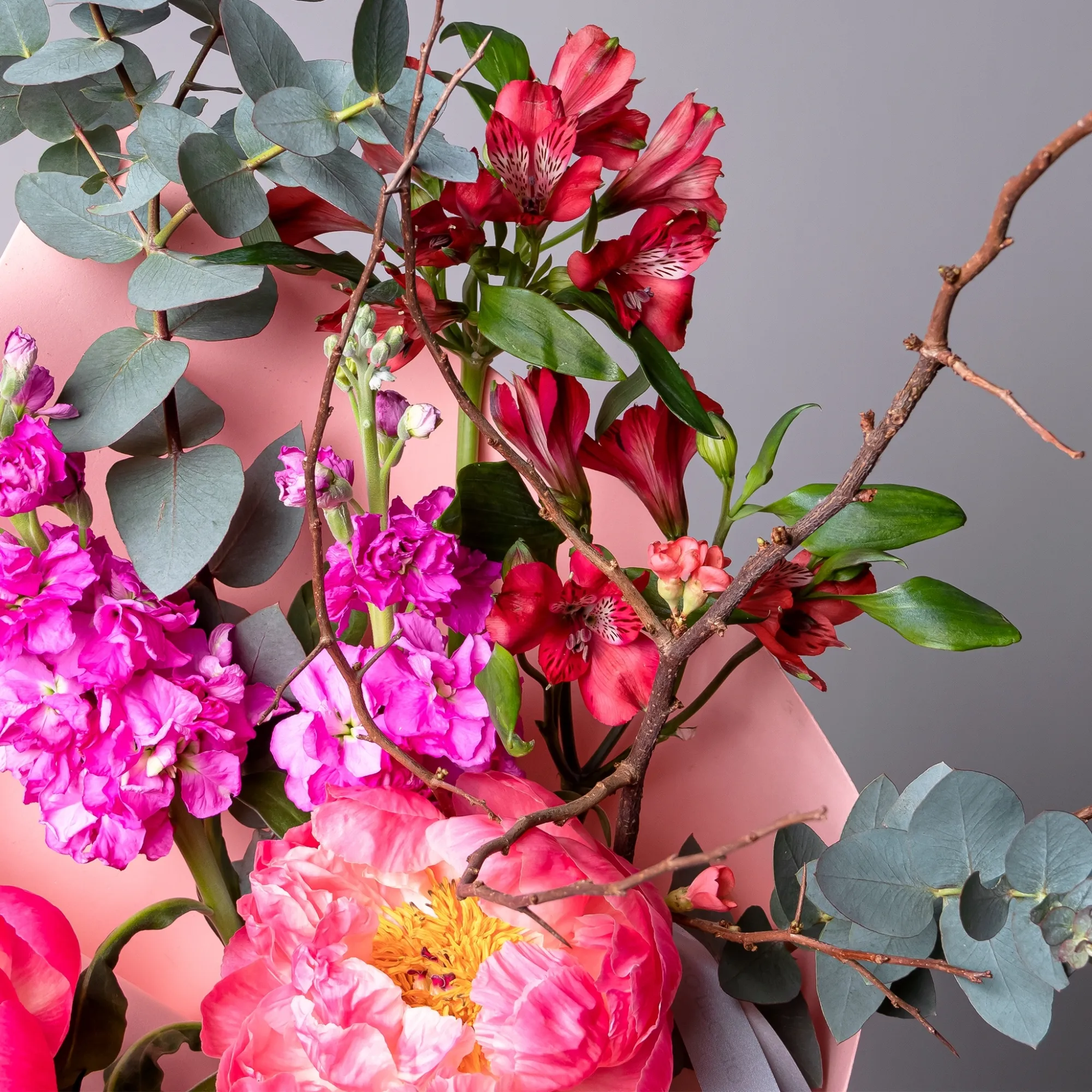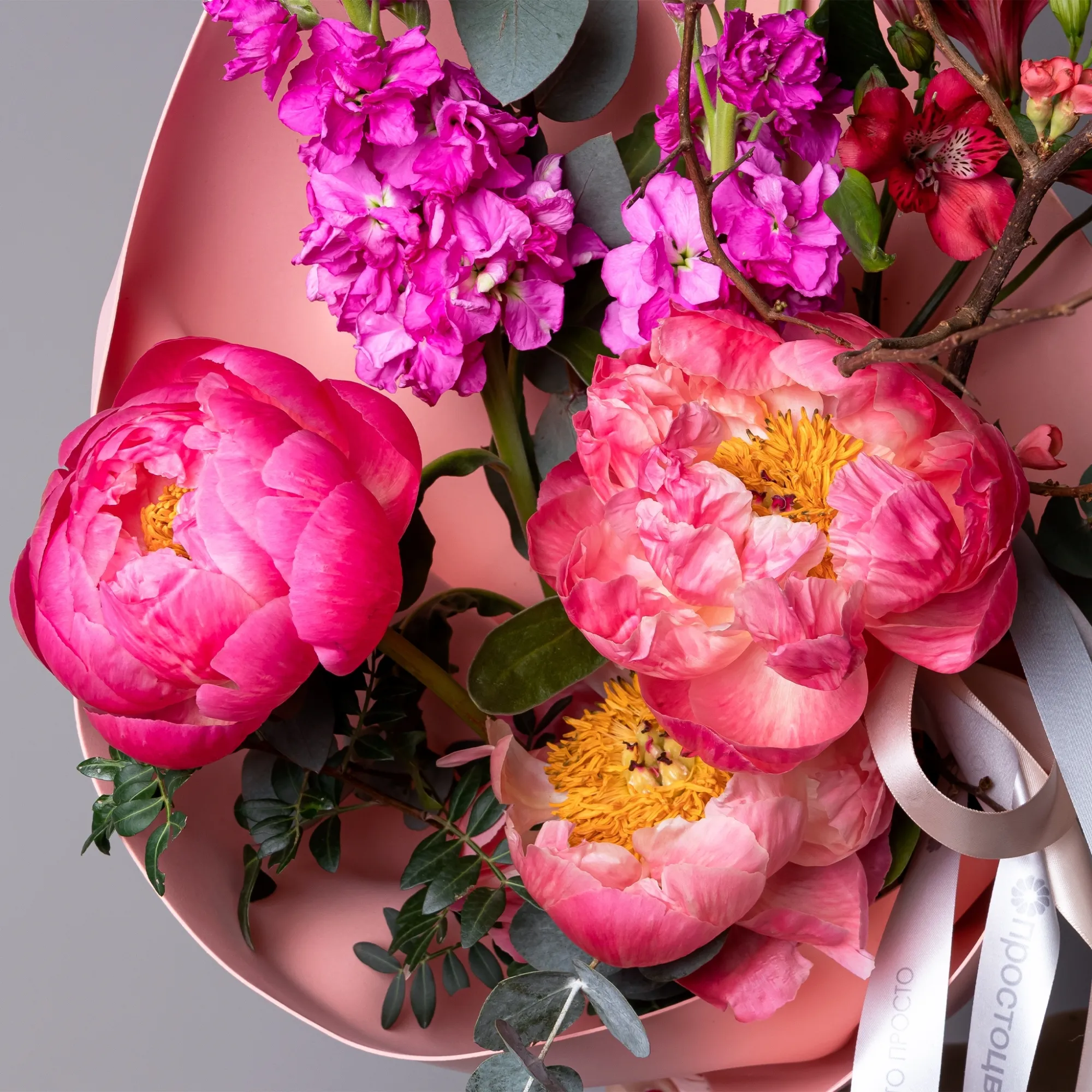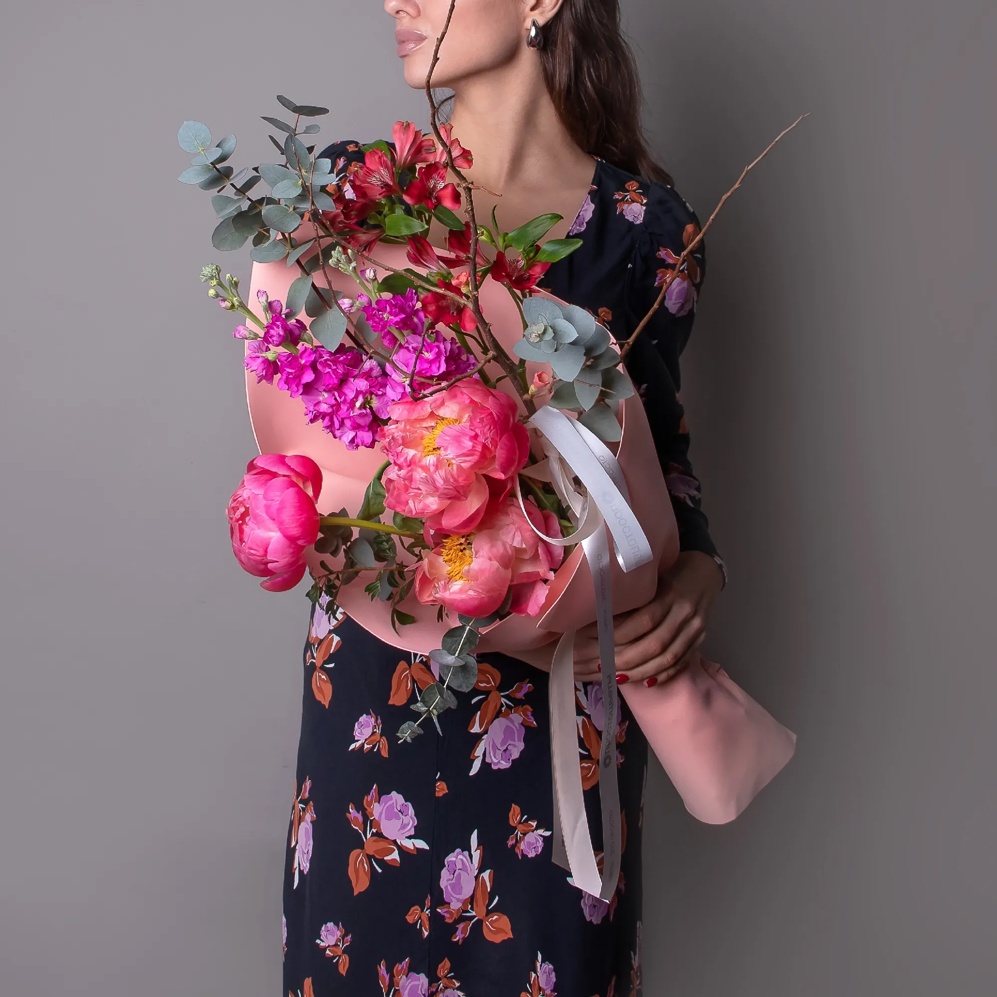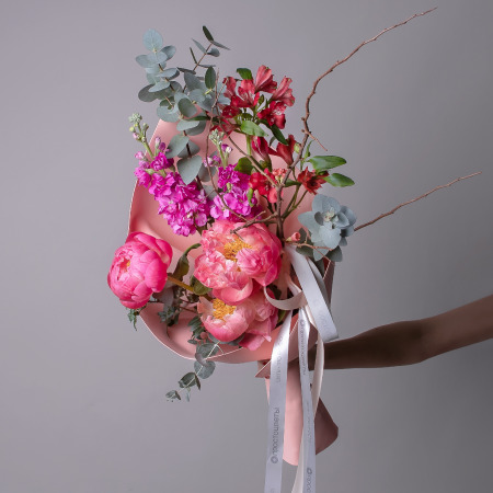 Пион-3, Альстромерия-3, Маттиола-2, Листья эвкалипта-4