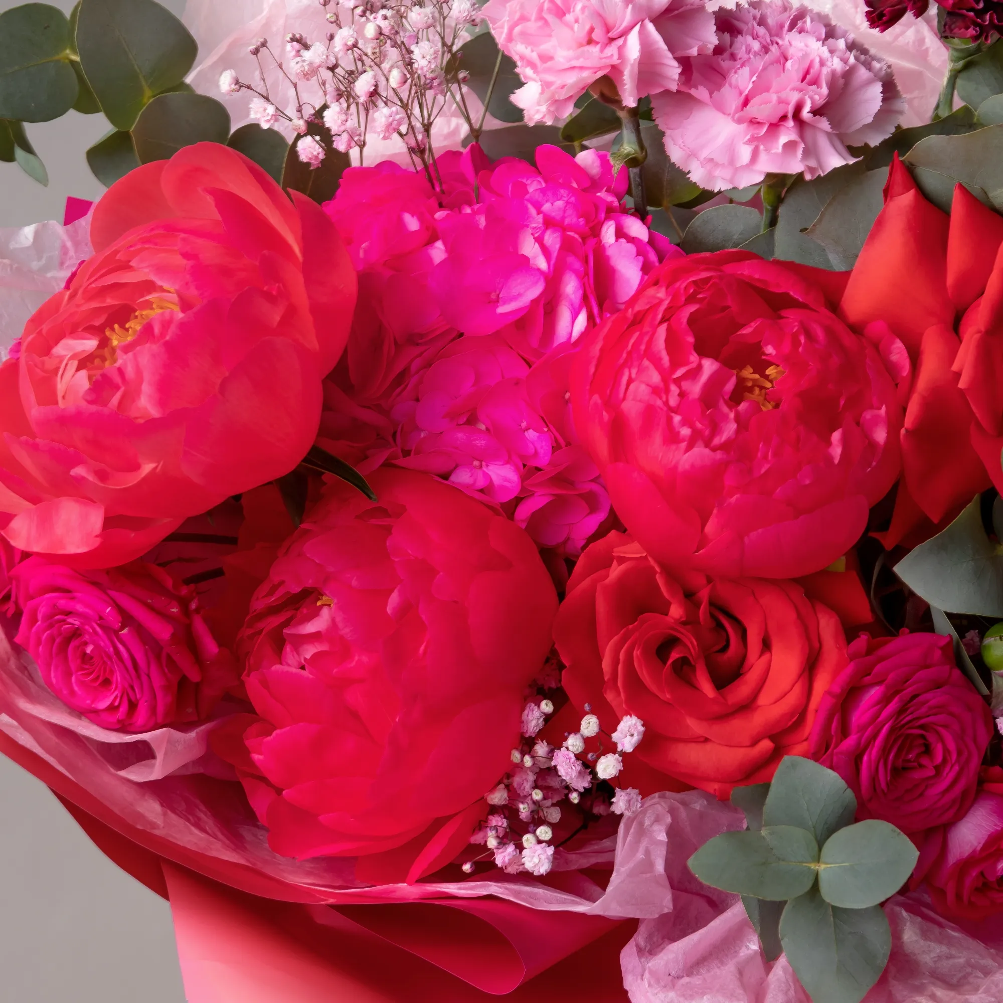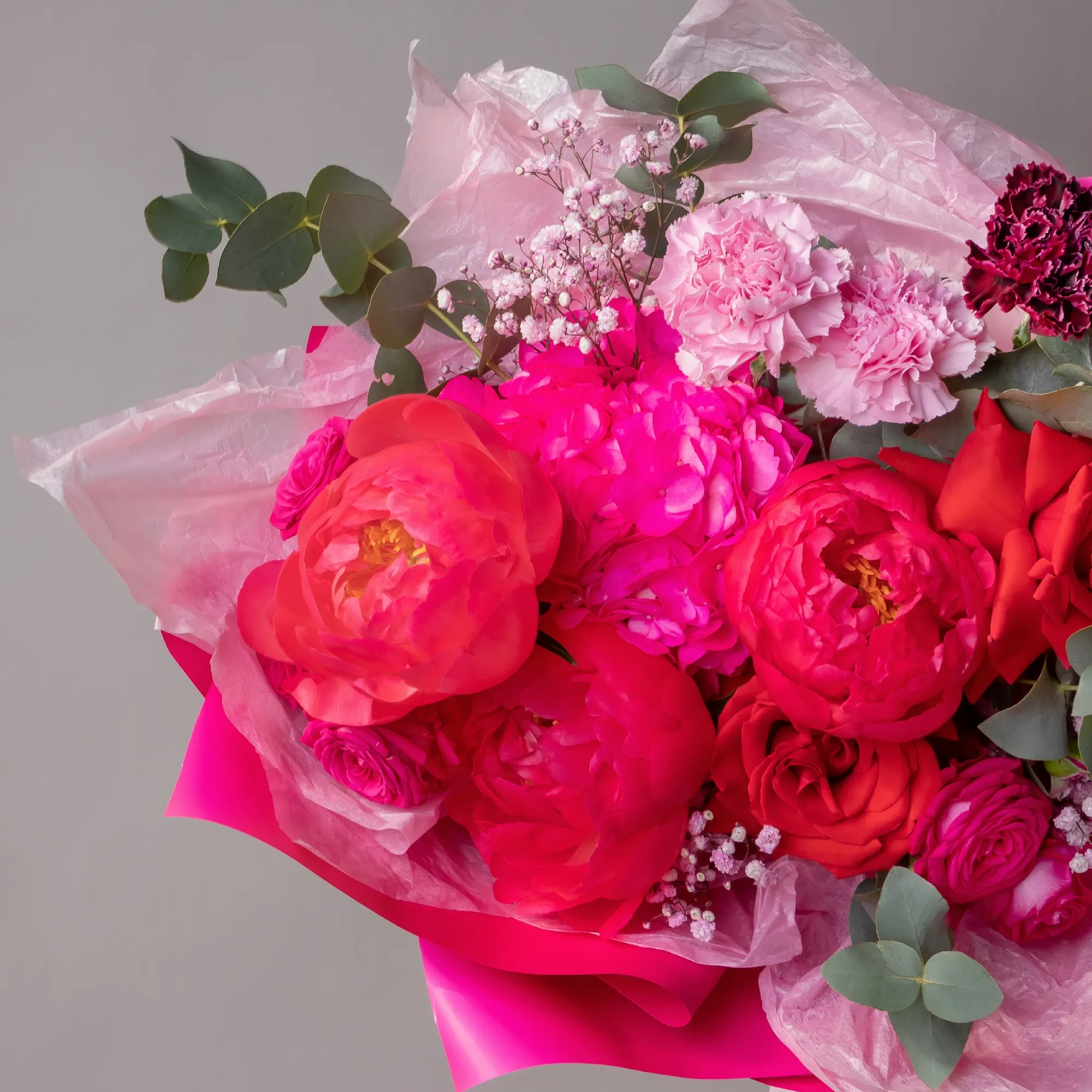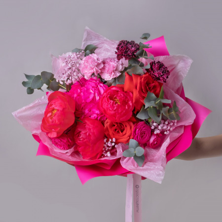 Пион-3, Гортензия-1, Роза-5, Маттиола-3, Листья эвкалипта-5