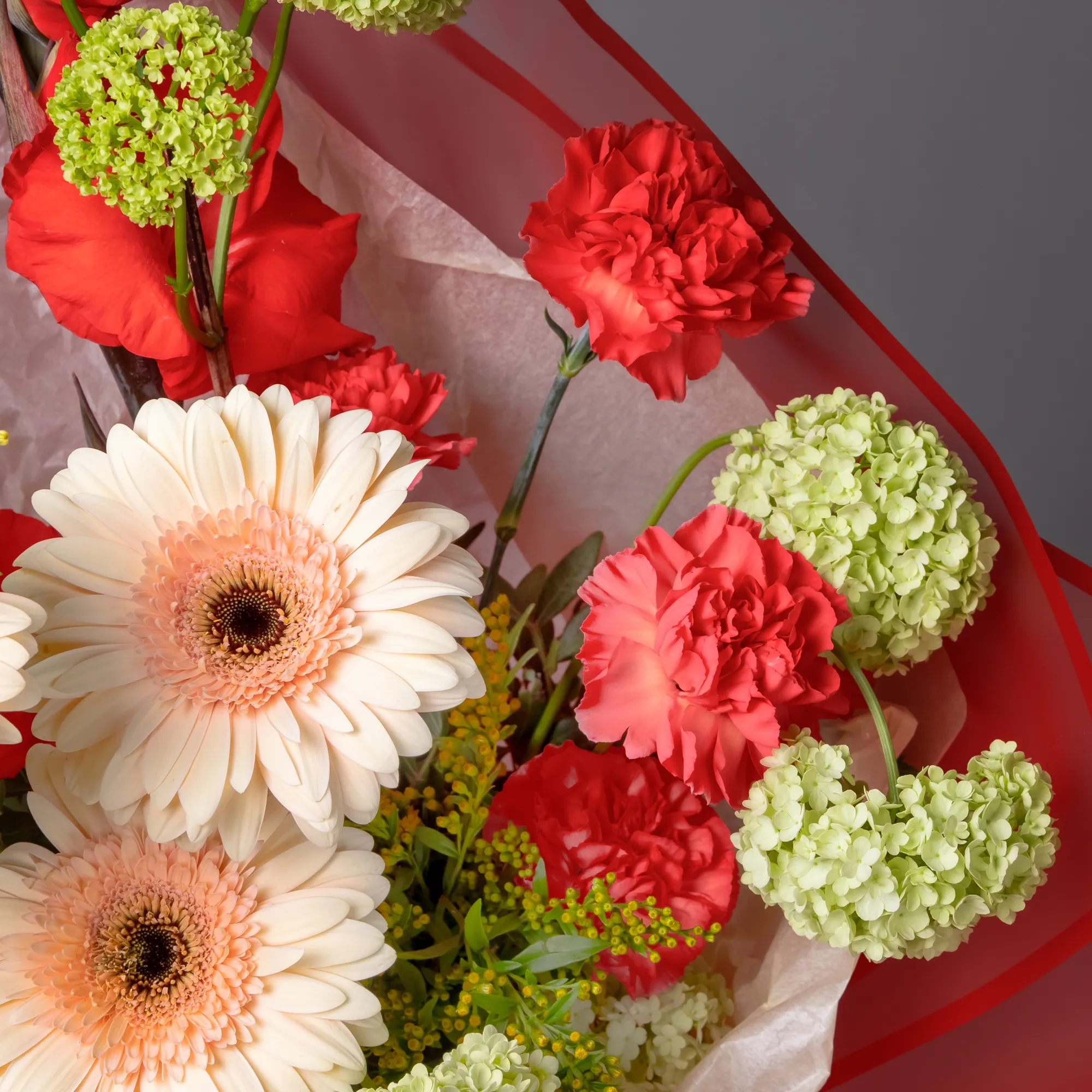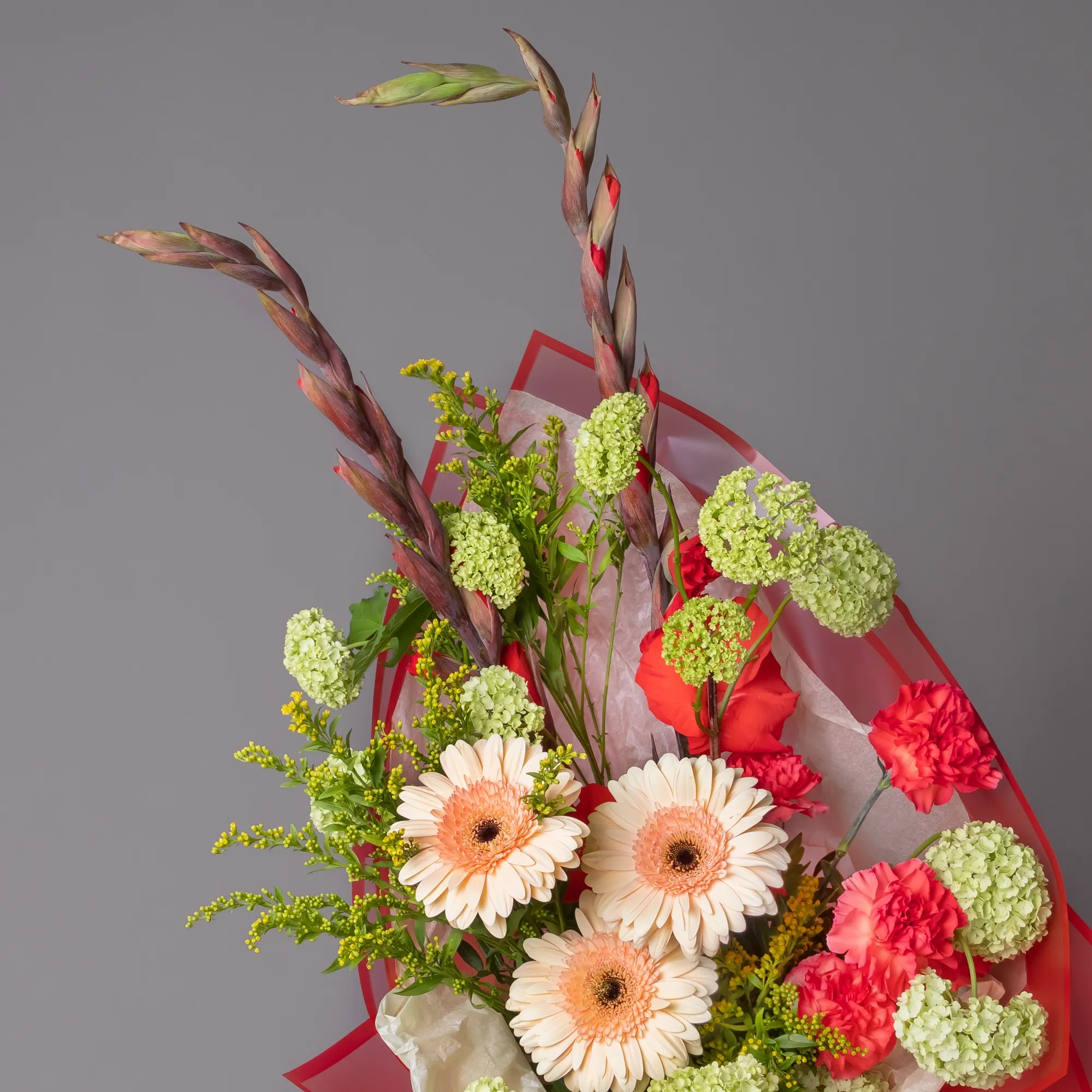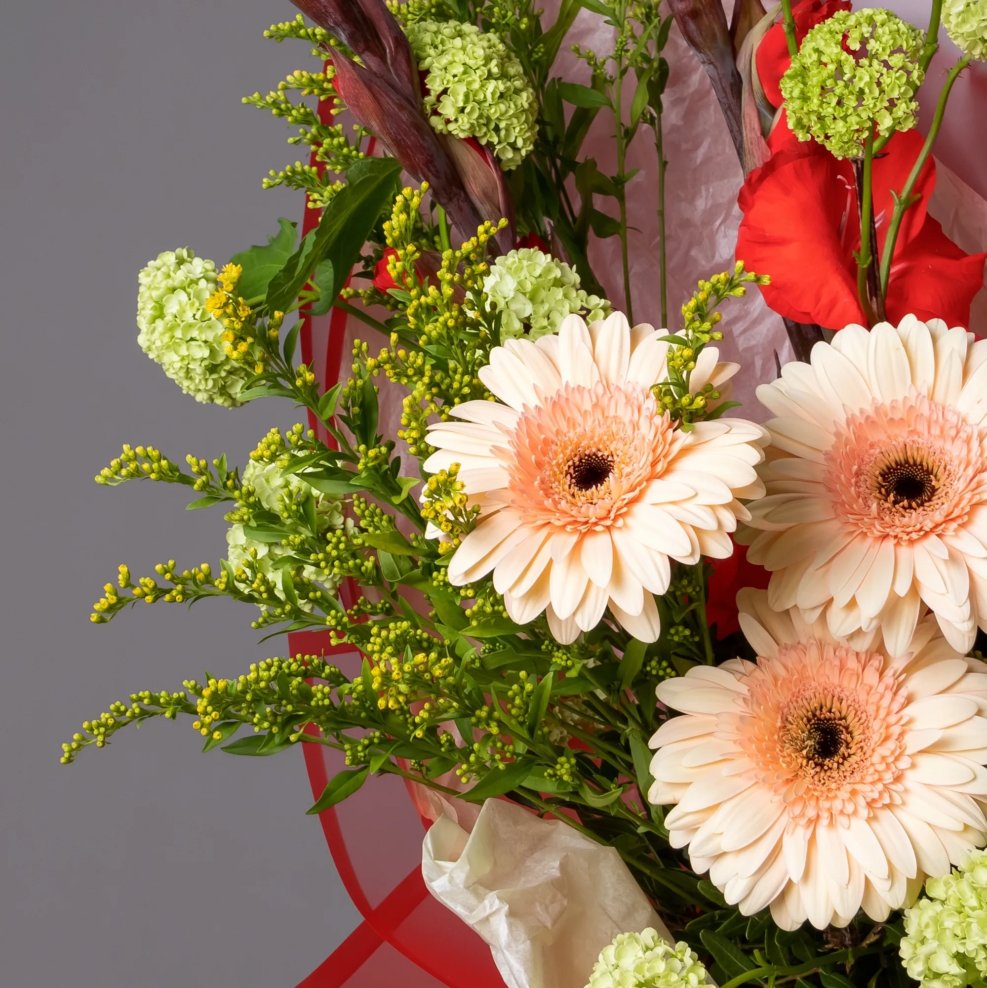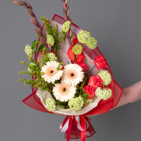 Гладиолус-2, Гвоздика-5, Гербера-3, Солидаго-3, Листья фисташки-5