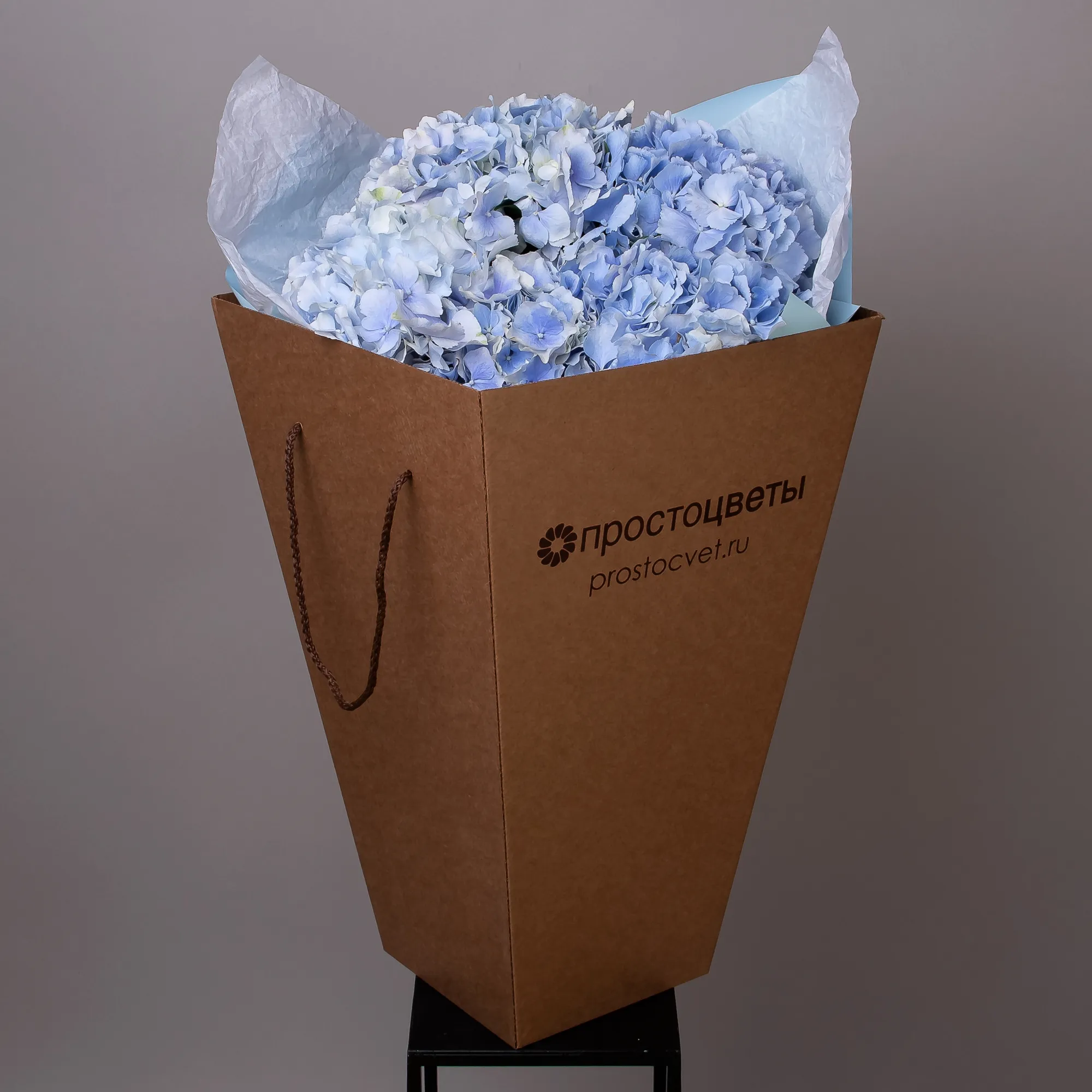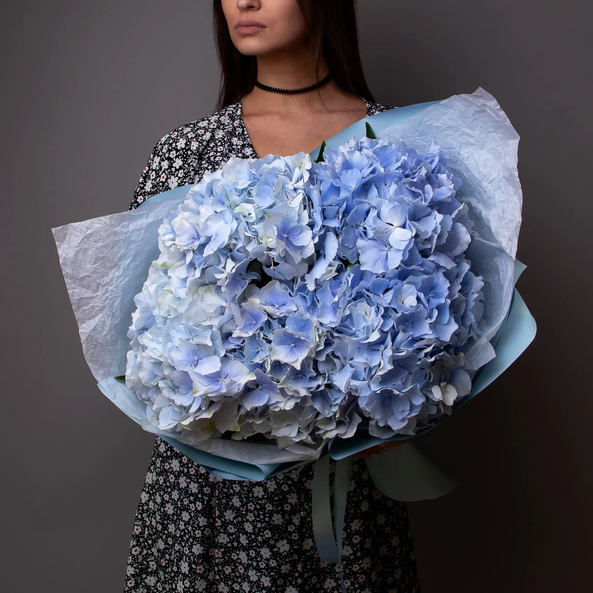 Монобукет из 5 синих Гортензий премиум.