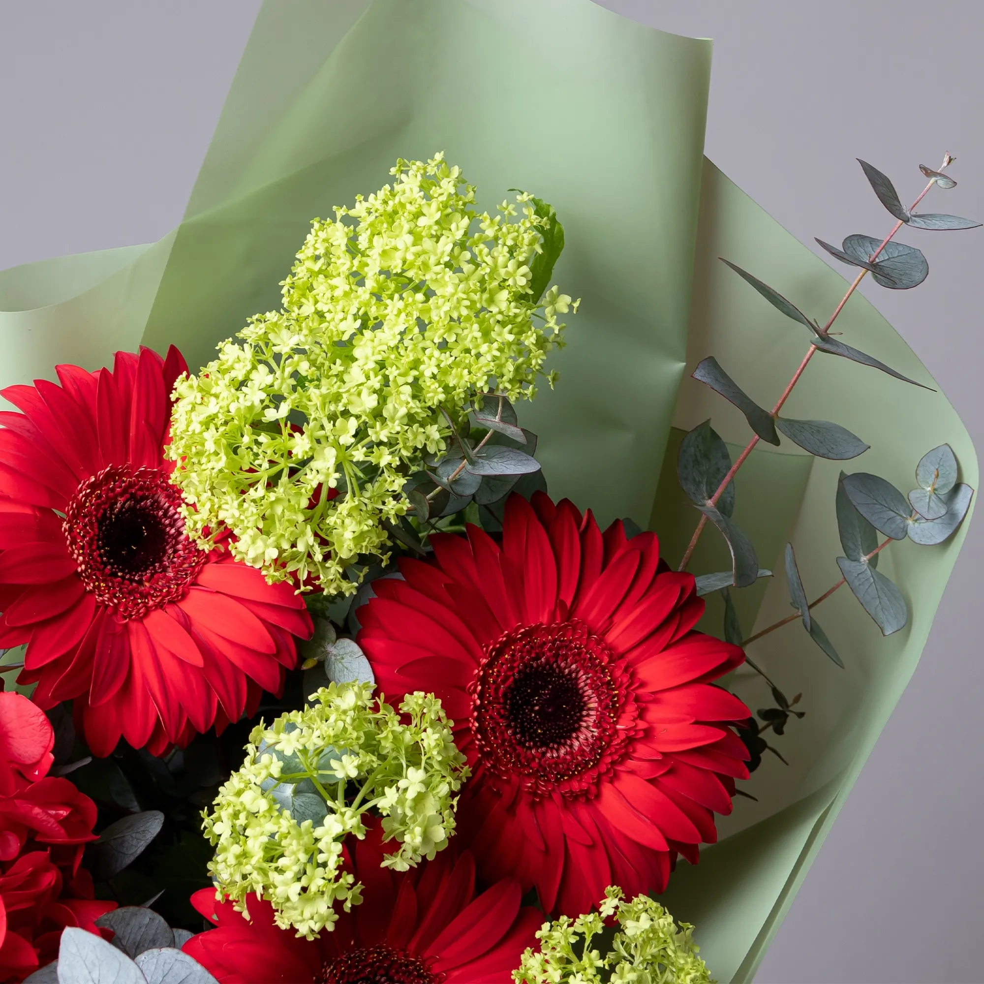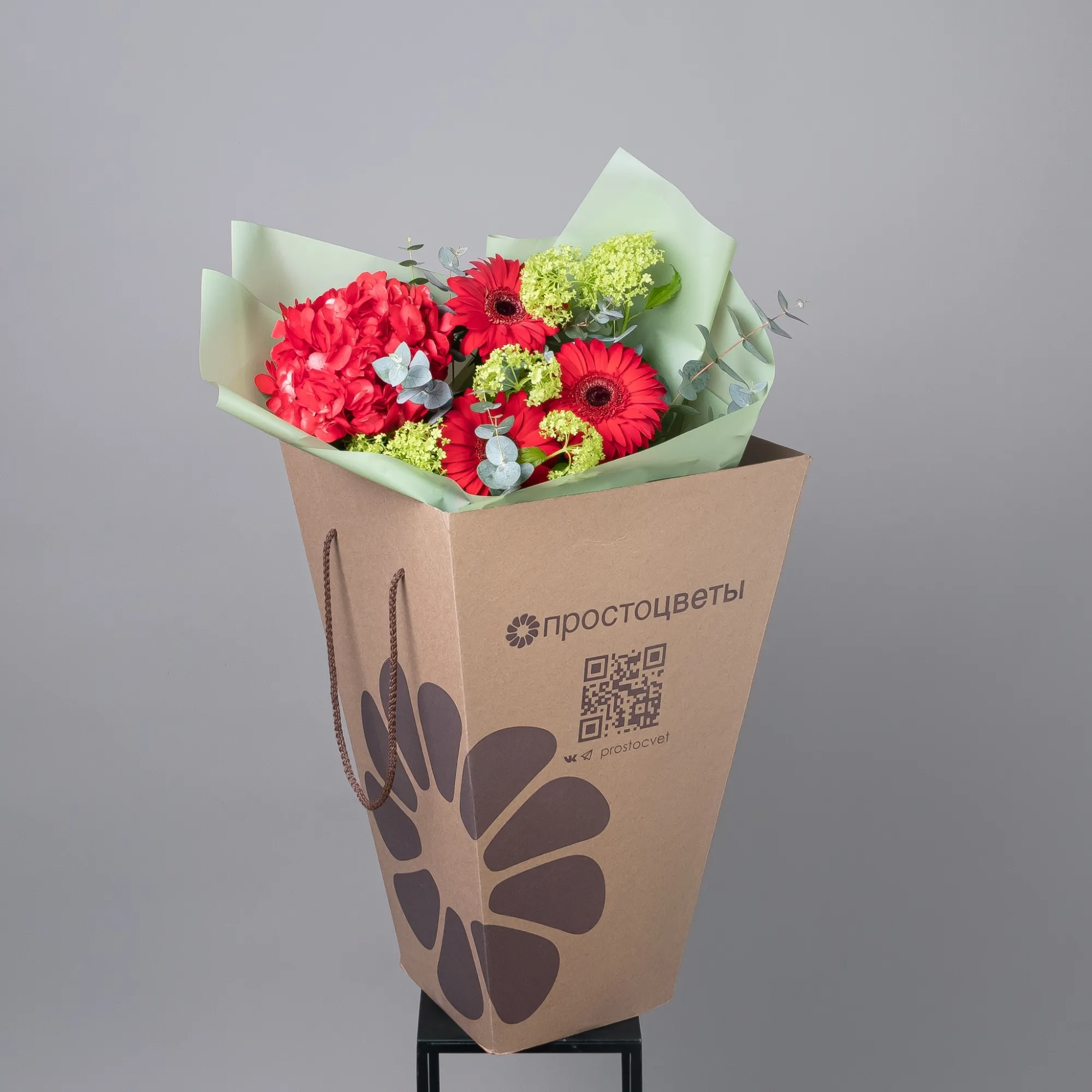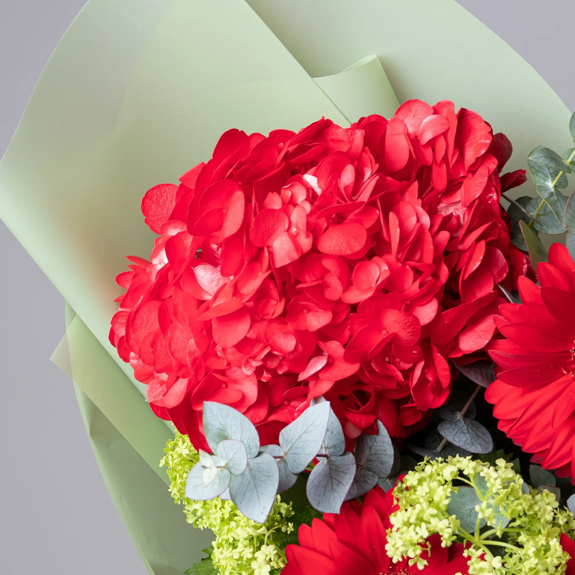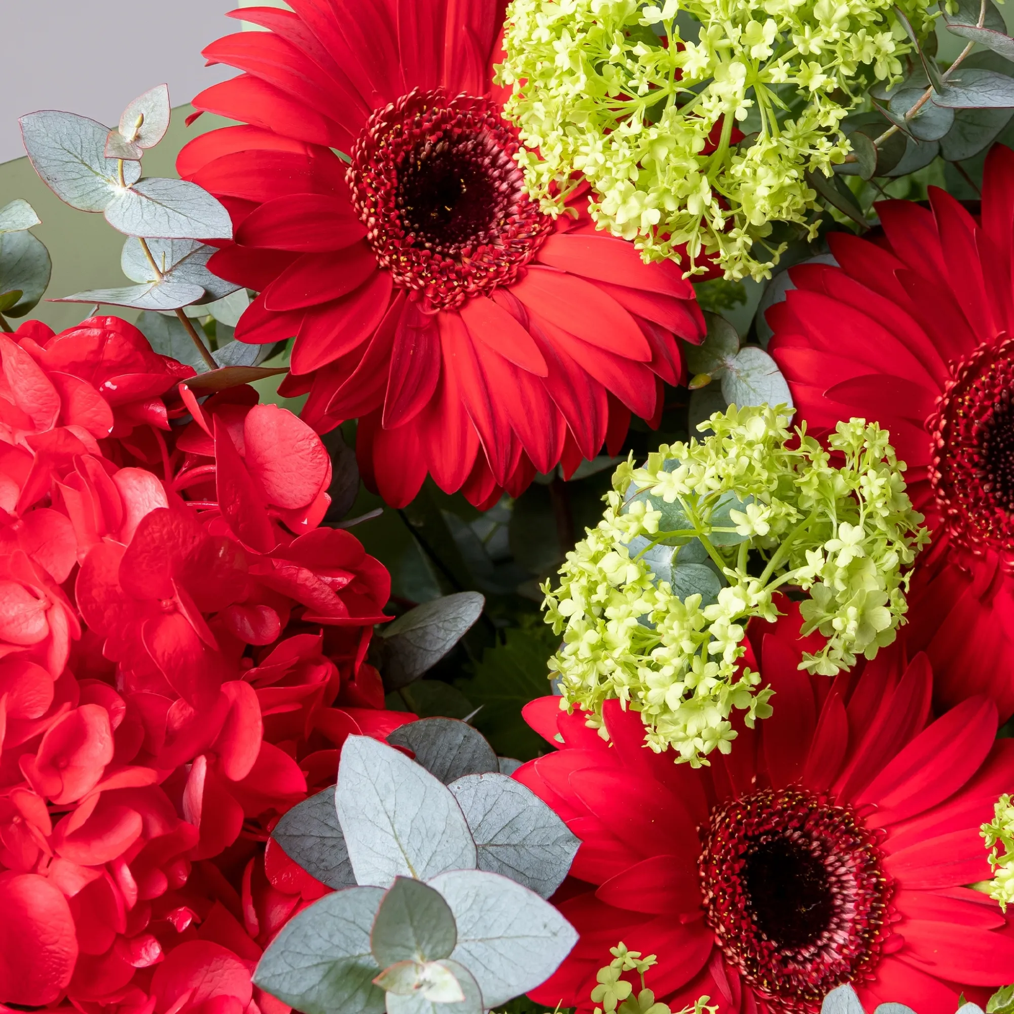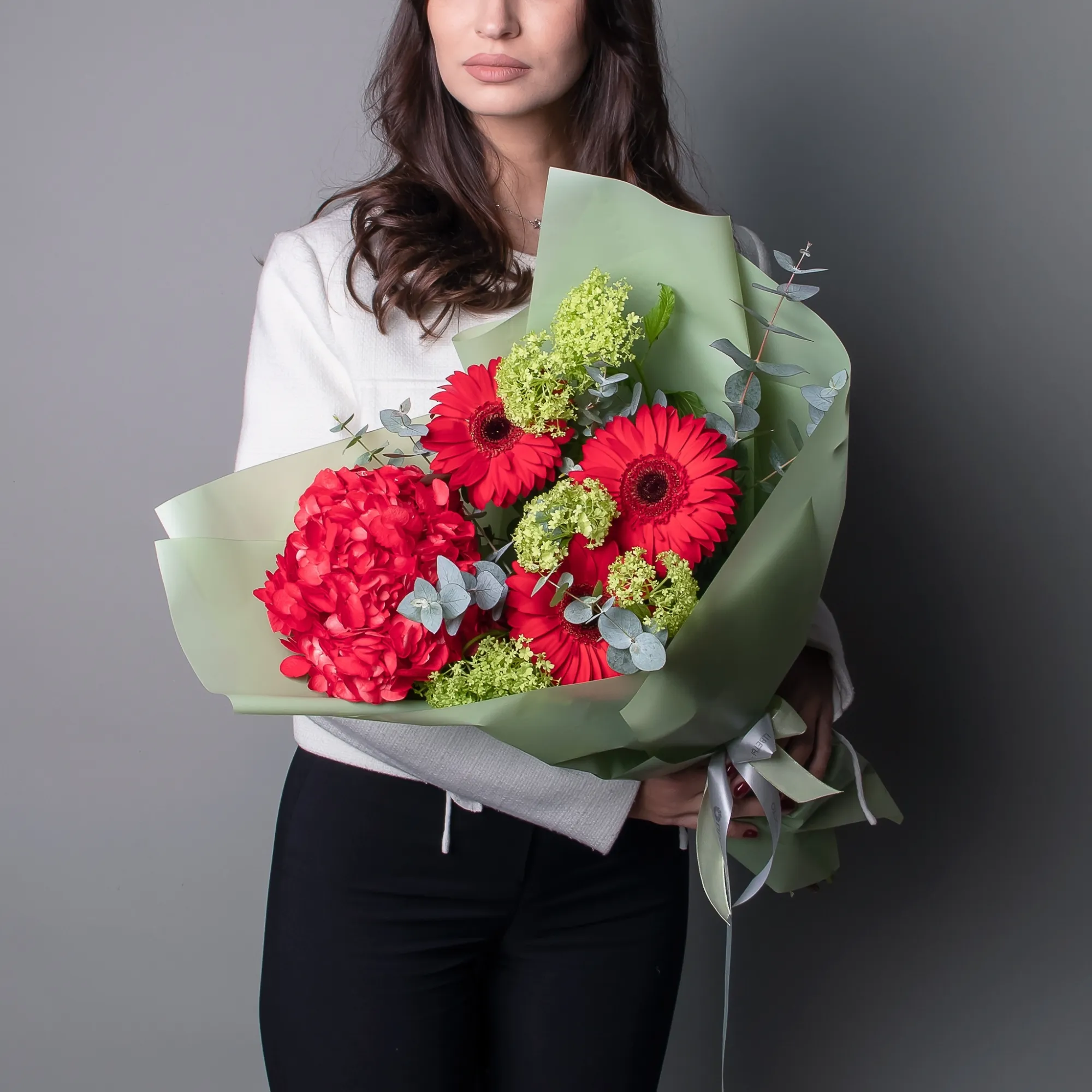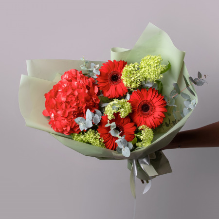 Гербера-3, Гортензия-1, Листья эвкалипта-3
