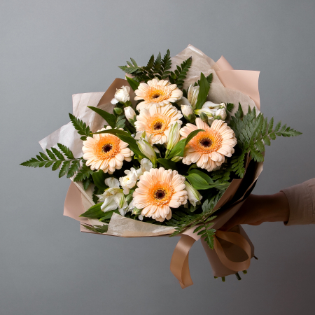 В свою очередь, мы гарантируем соблюдение стиля и основного состава букета, в этом можете быть уверенными.