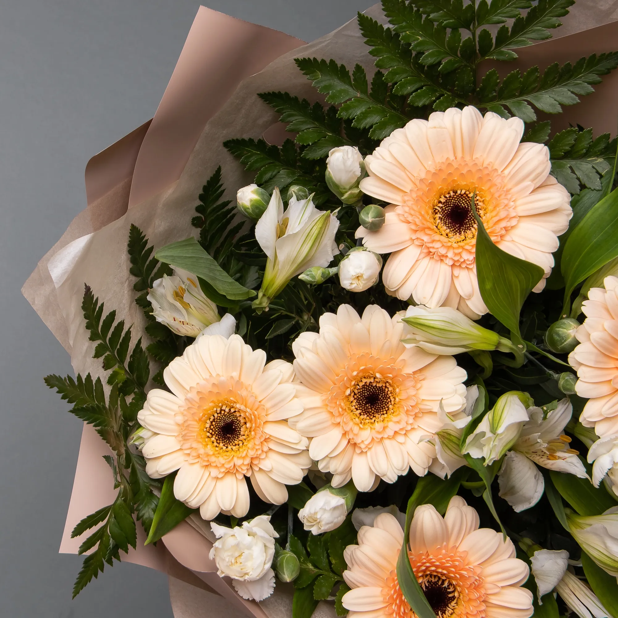 Гвоздика, Альстромерия, Листья папоротника, Листья фисташки