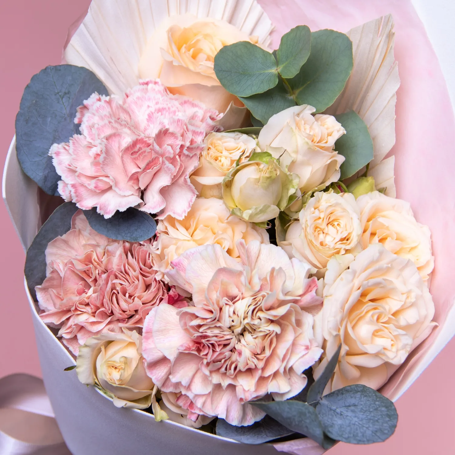 Гвоздика, Роза, Листья пальм, Листья эвкалипта