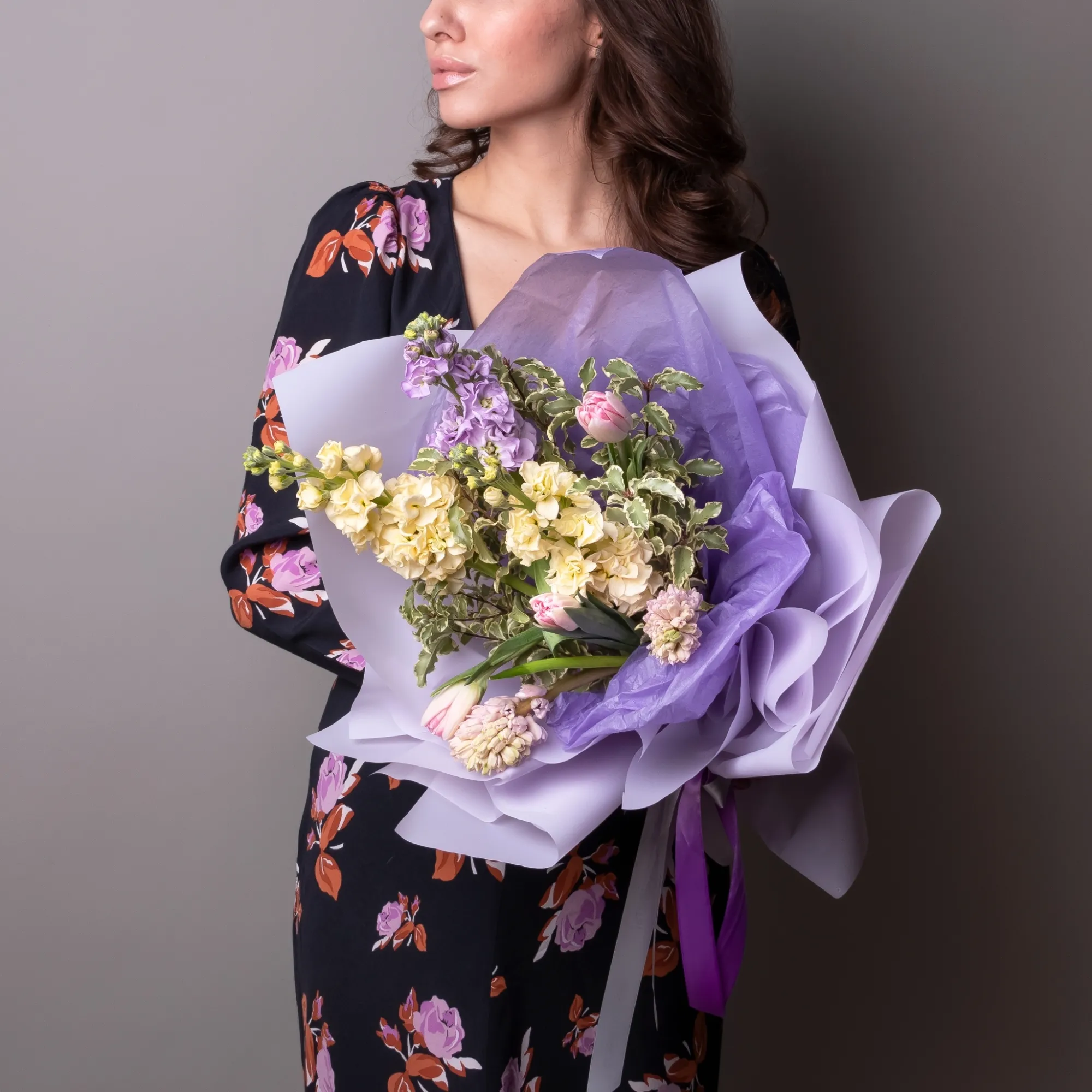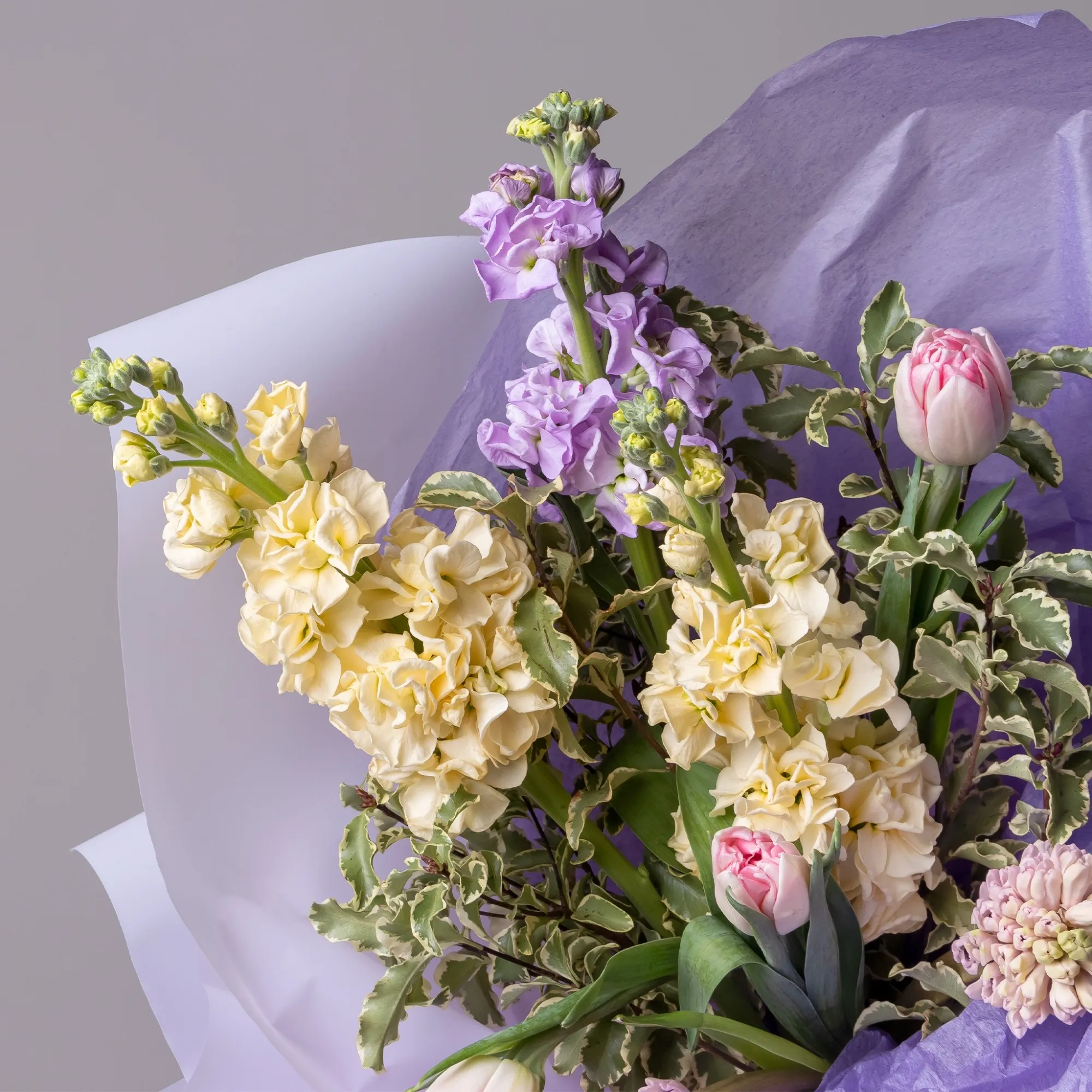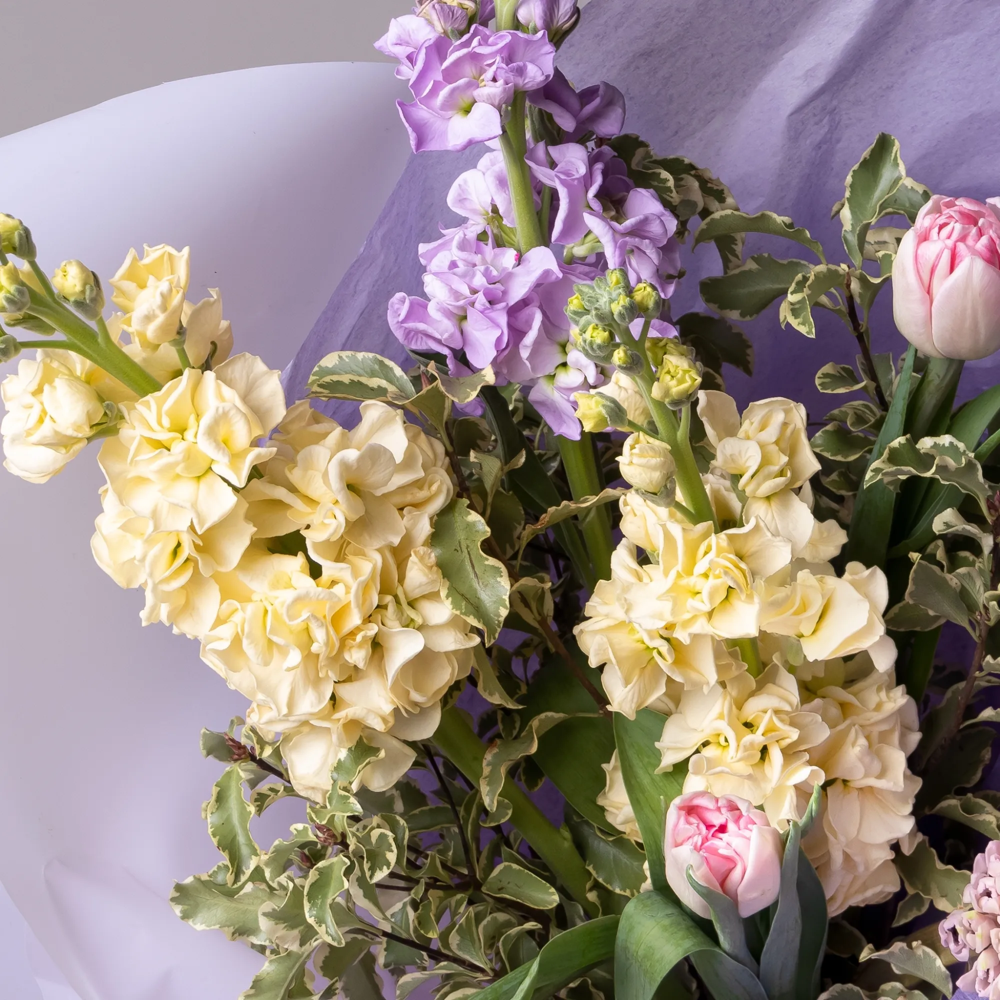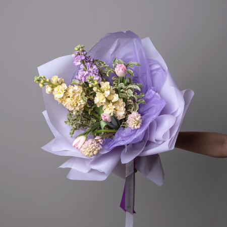 Гиацинт-2, Тюльпан-3, Маттиола-3, Листья питтоспорум-1