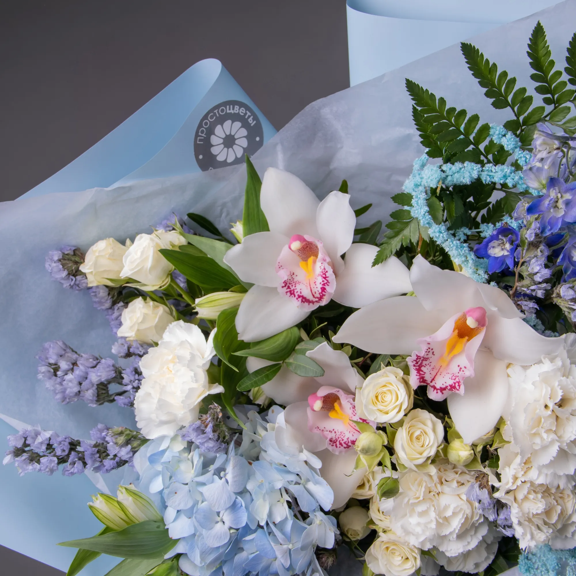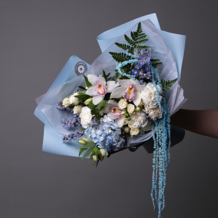 Рецепт нашего флористического букета «Лазурное небо L»: