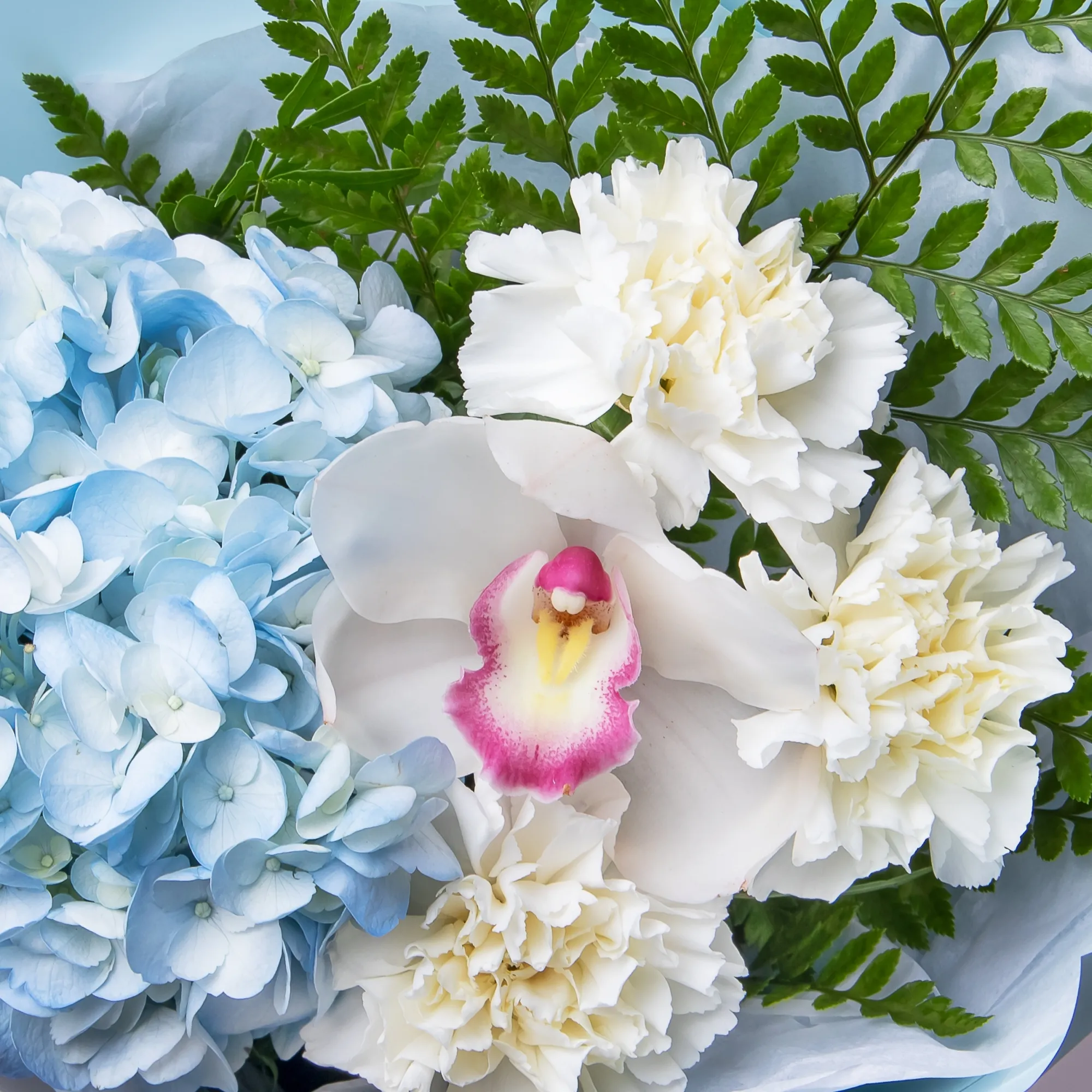 Орхидея, Гвоздика, Гортензия, Листья папоротника, Листья фисташки