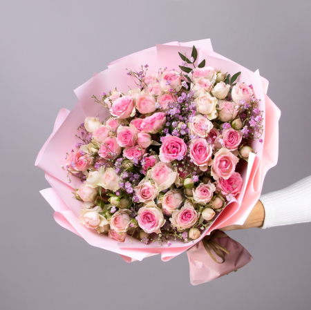 В составе букета "Леди L" роза кустовая "Динара", светло-розовая гипсофила, дополнен листьями фисташки. Букет "Леди" - это утонченное сочетание, которое идеально подойдет для следующих случаев: *Романтические события - день святого Валентина, годовщина отношений, предложение руки и сердца, романтический сюрприз. Особенность букета в том, что он передает нежность, элегантность и утонченность чувств. Кустовая роза символизирует искренность и благородство, а светло-розовая гипсофила добавляет композиции воздушность и романтичность. Закажите букет с доставкой или заберите самовывозом. И помните, что цветы - это просто.