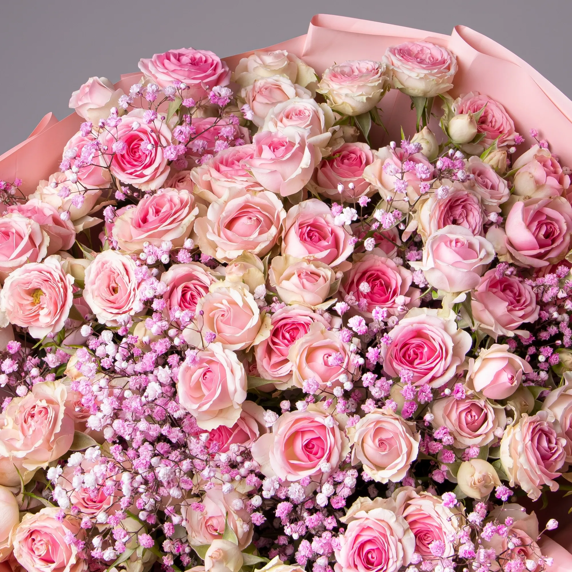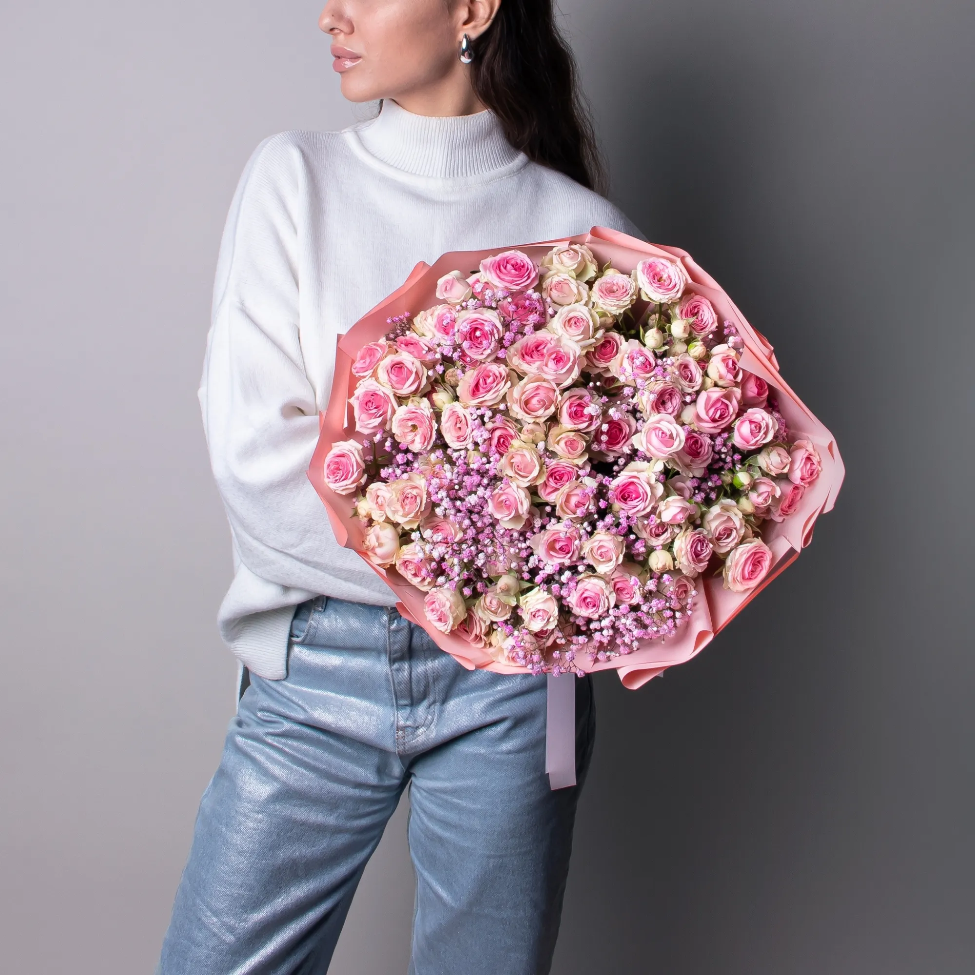 К сожалению, мы не можем гарантировать точную копию букета. Наши цветы могут отличаться от указанных на фотографии, ведь они приезжают к нам из разных уголков мира.