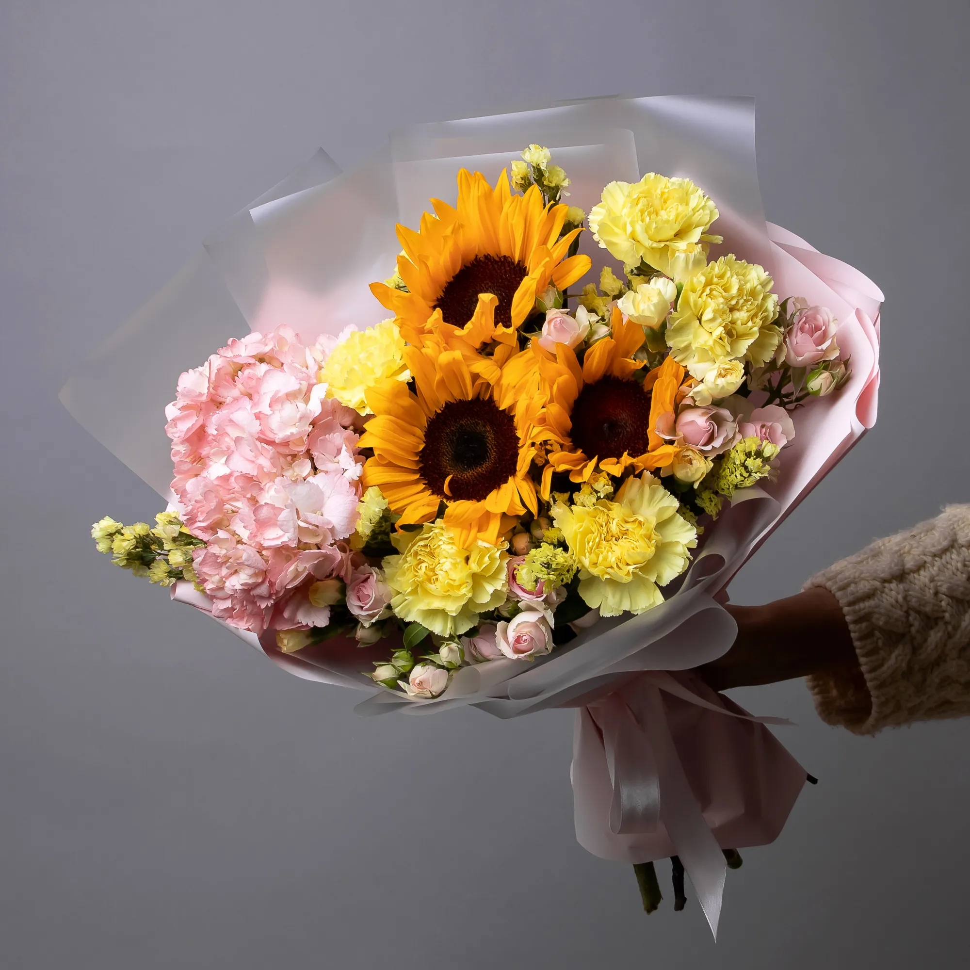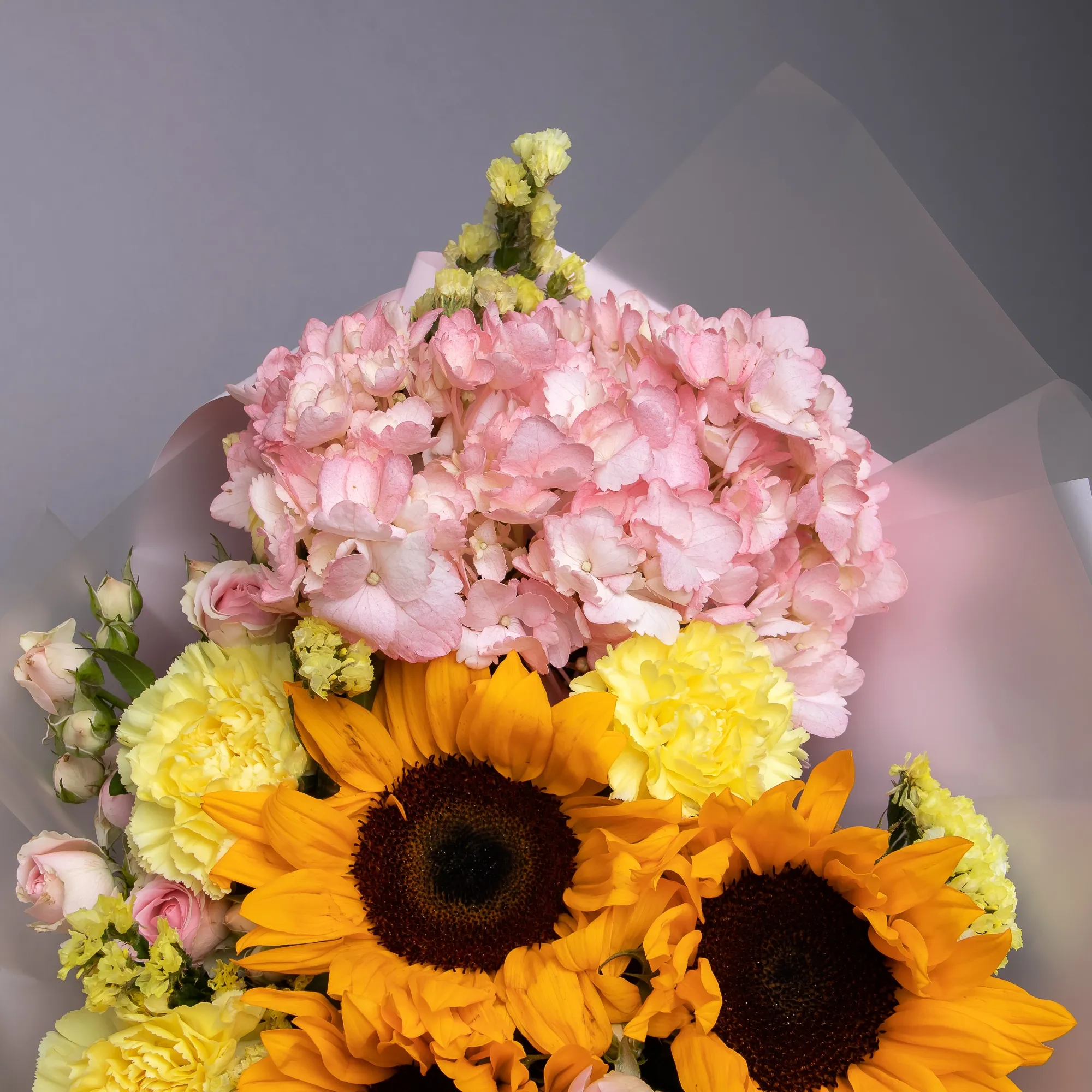 Гвоздика, Гортензия, Подсолнух, Роза, Листья фисташки