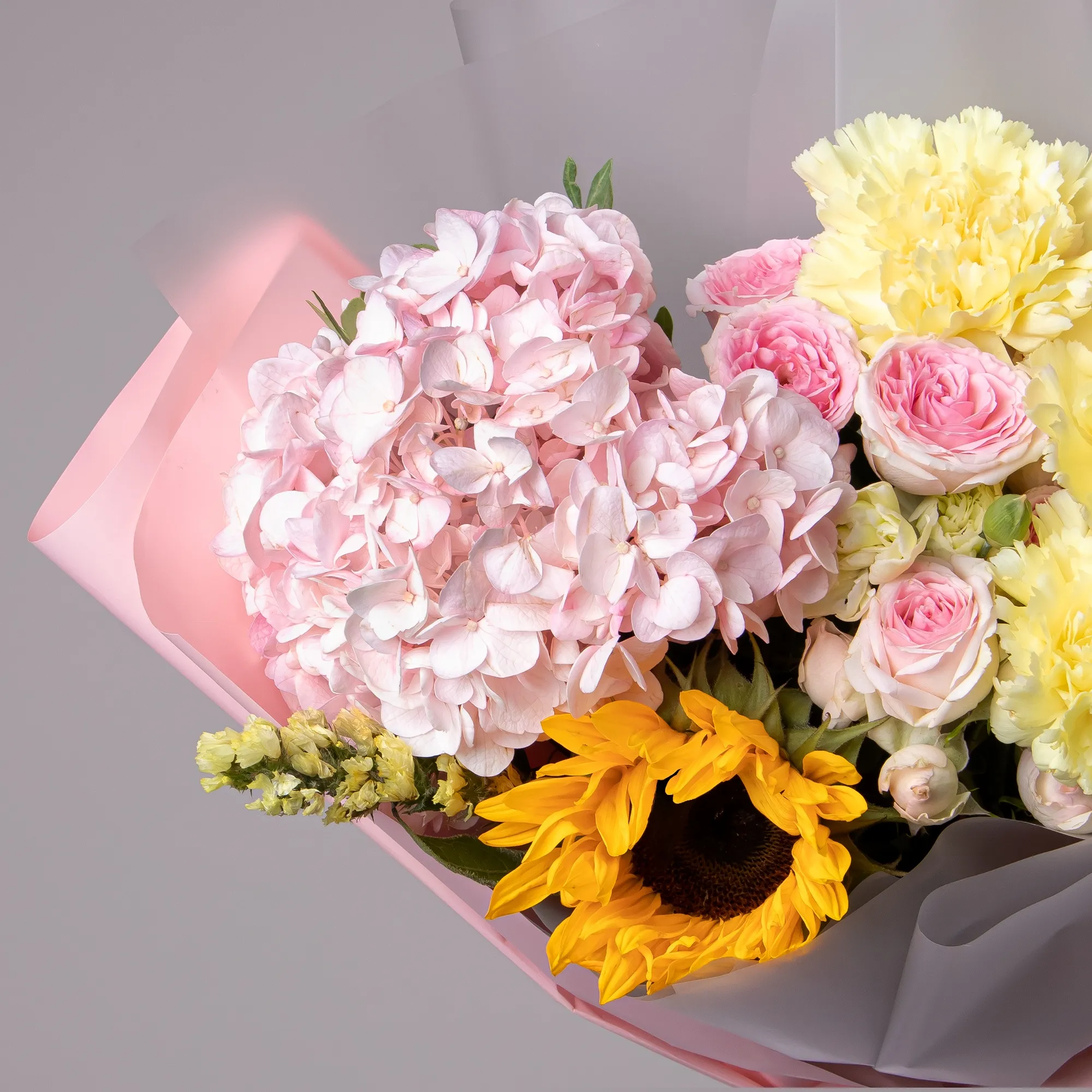 Гвоздика, Гортензия, Подсолнух, Роза, Листья фисташки
